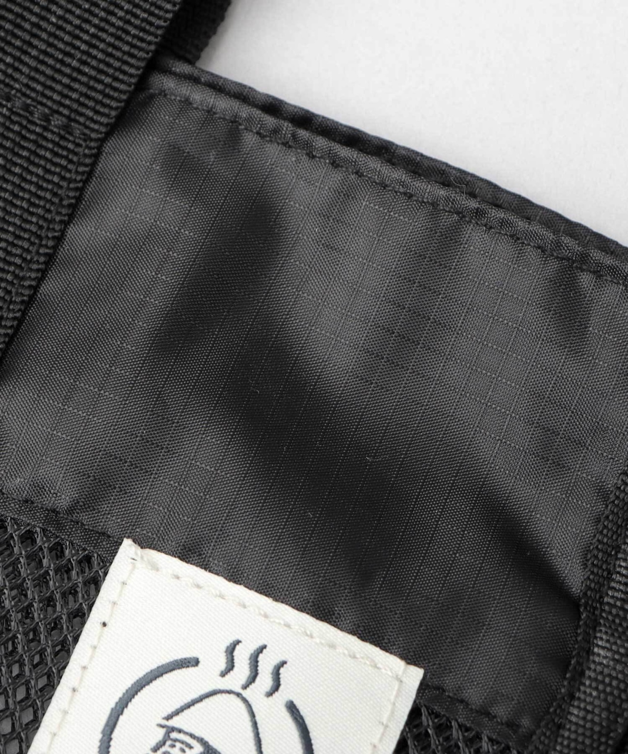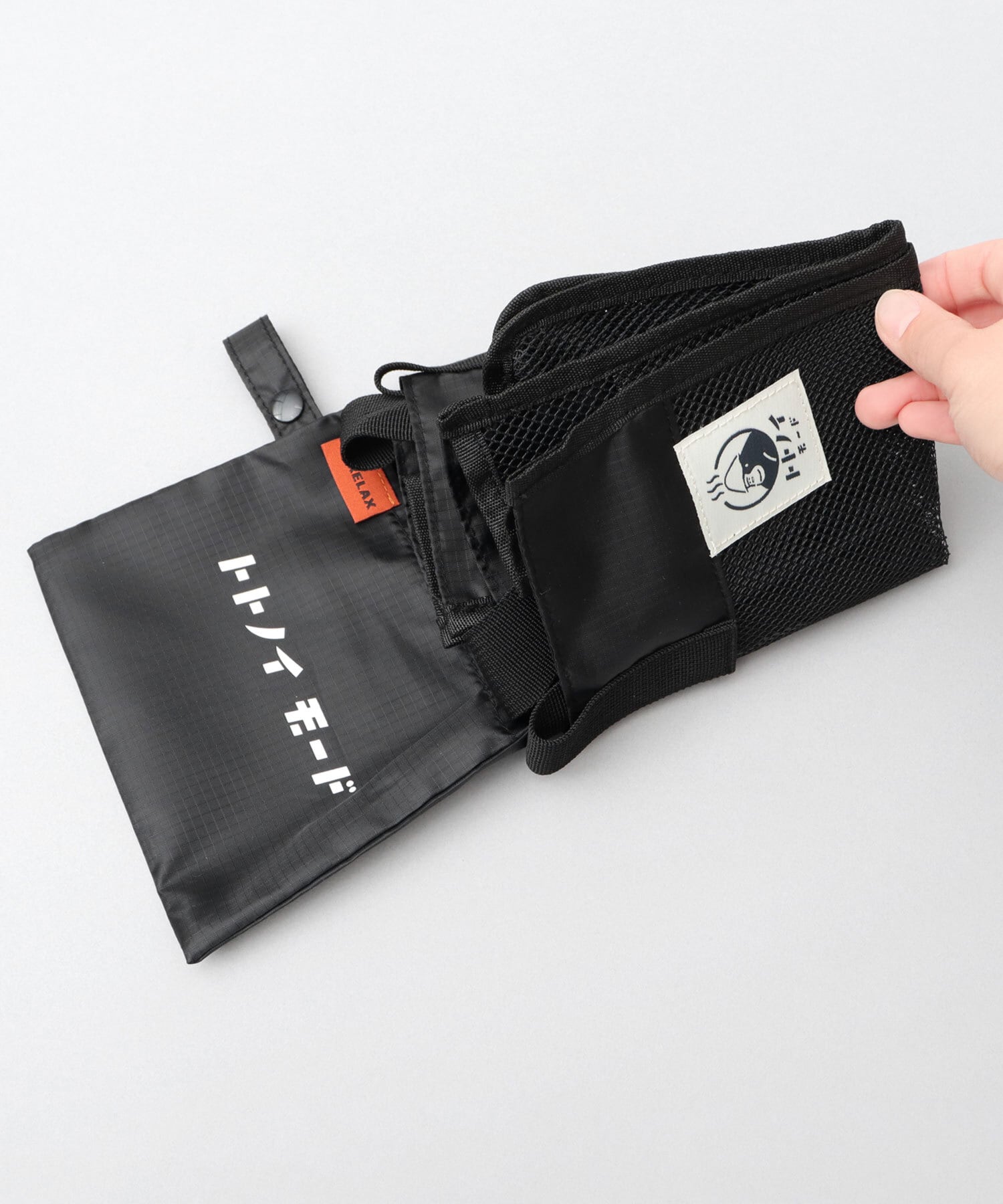 バッグ内側の吊るし式オープンポケットには、本体の収納が可能。サイドのスナップボタン付きループで、いつものバッグに取り付けられるので、サブバッグとしても◎“GORELAX”ピスタグがアクセントに。