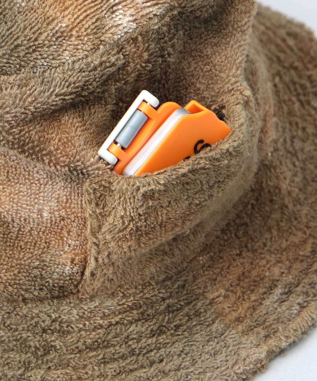 『Healthy life style(内面から健康的に)』、『Hug earth(環境にもととのいを)』、『High quality(信念と情熱をもって作り上げる)』。3つのHをコンセプトに掲げるH Tokyoのサウナハット。サウナキャップとも呼ばれ、サウナ室(サ室)で被ることで、熱い蒸気から頭部を保護し、のぼせ、髪へのダメージを軽減してくれるアイテム。ボディには、吸水性に優れた、ふっくら柔らかなパイル生地(タオル生地)を使用。しっかり深く被れるサイズ感のバケハ型のサウナハットは、顔まですっぽり隠れて視界を遮断してくれるので、周りを気にせず、より自分の世界に入り込めます。ストレッチの効いたスベリや、ロッカーキーの収納に便利なミニポケットなど、細部まで拘りの詰まった逸品。