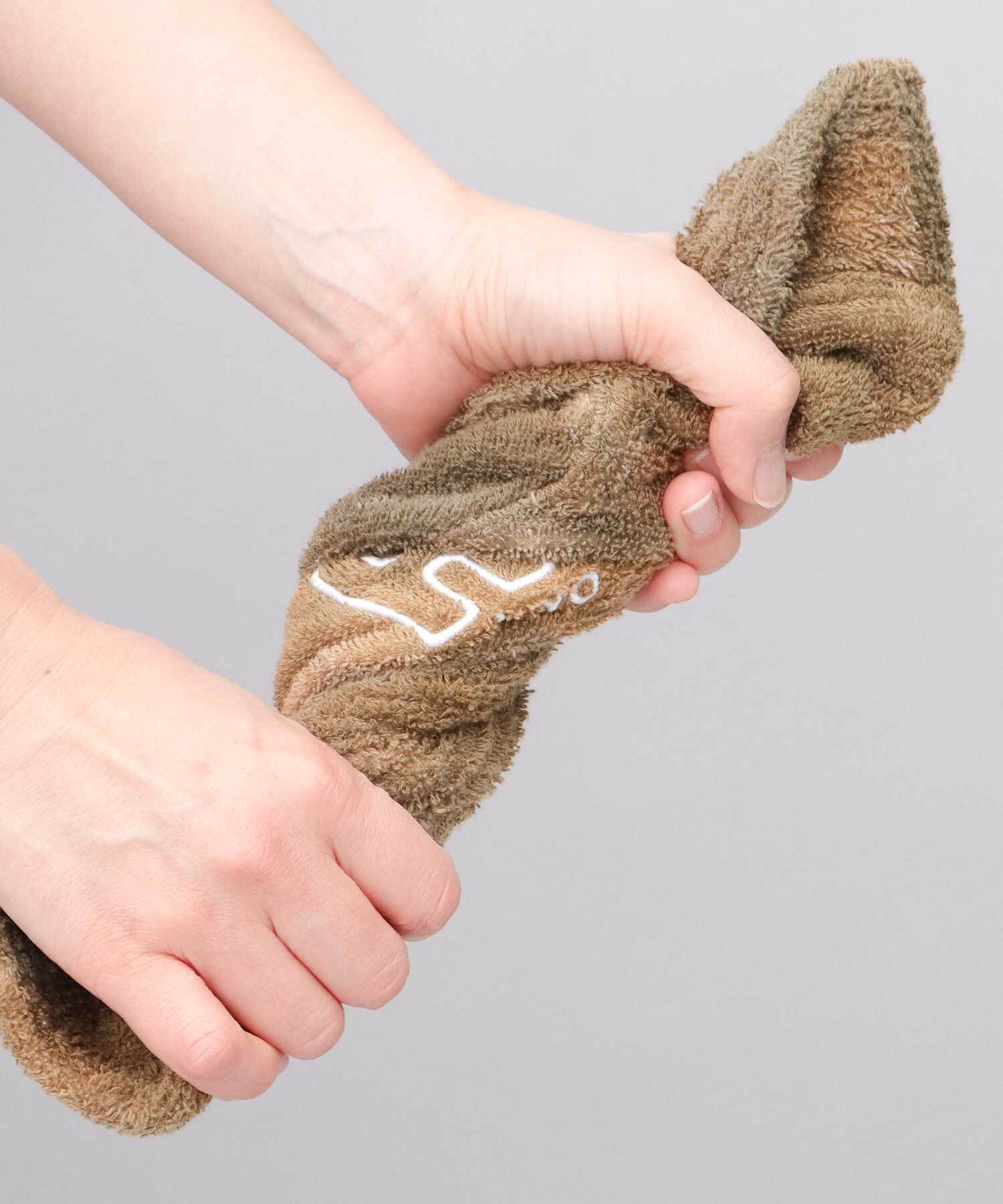 本体には、吸水性に優れた拘りのコットン100%パイル生地を使用。ふんわり柔らかい肌触りで、被り心地も抜群!絞って水切りをすることも可能。