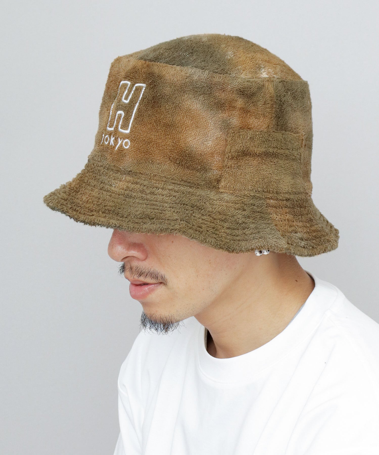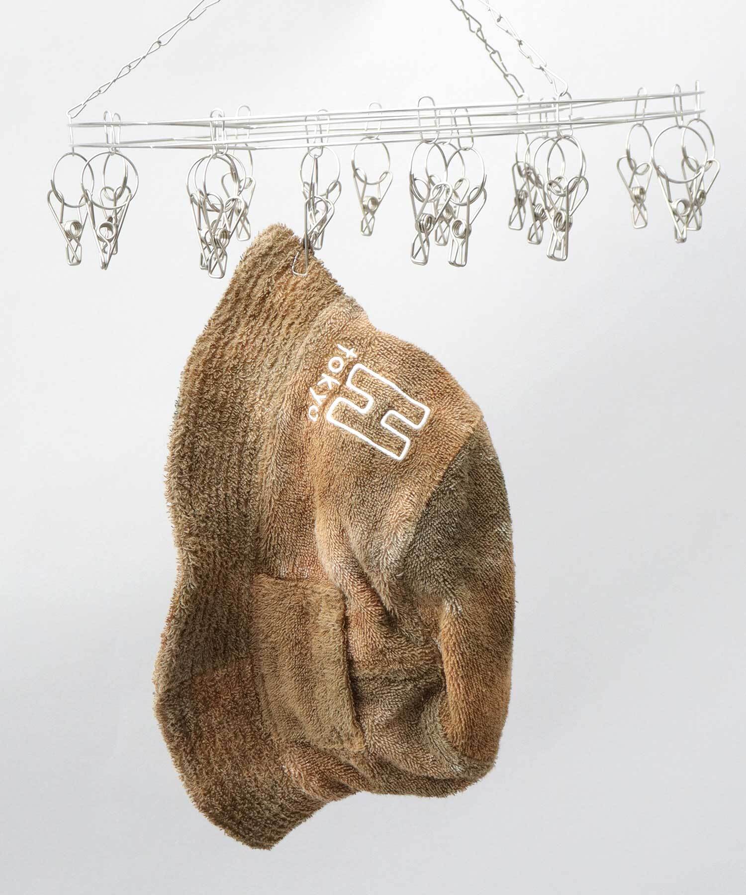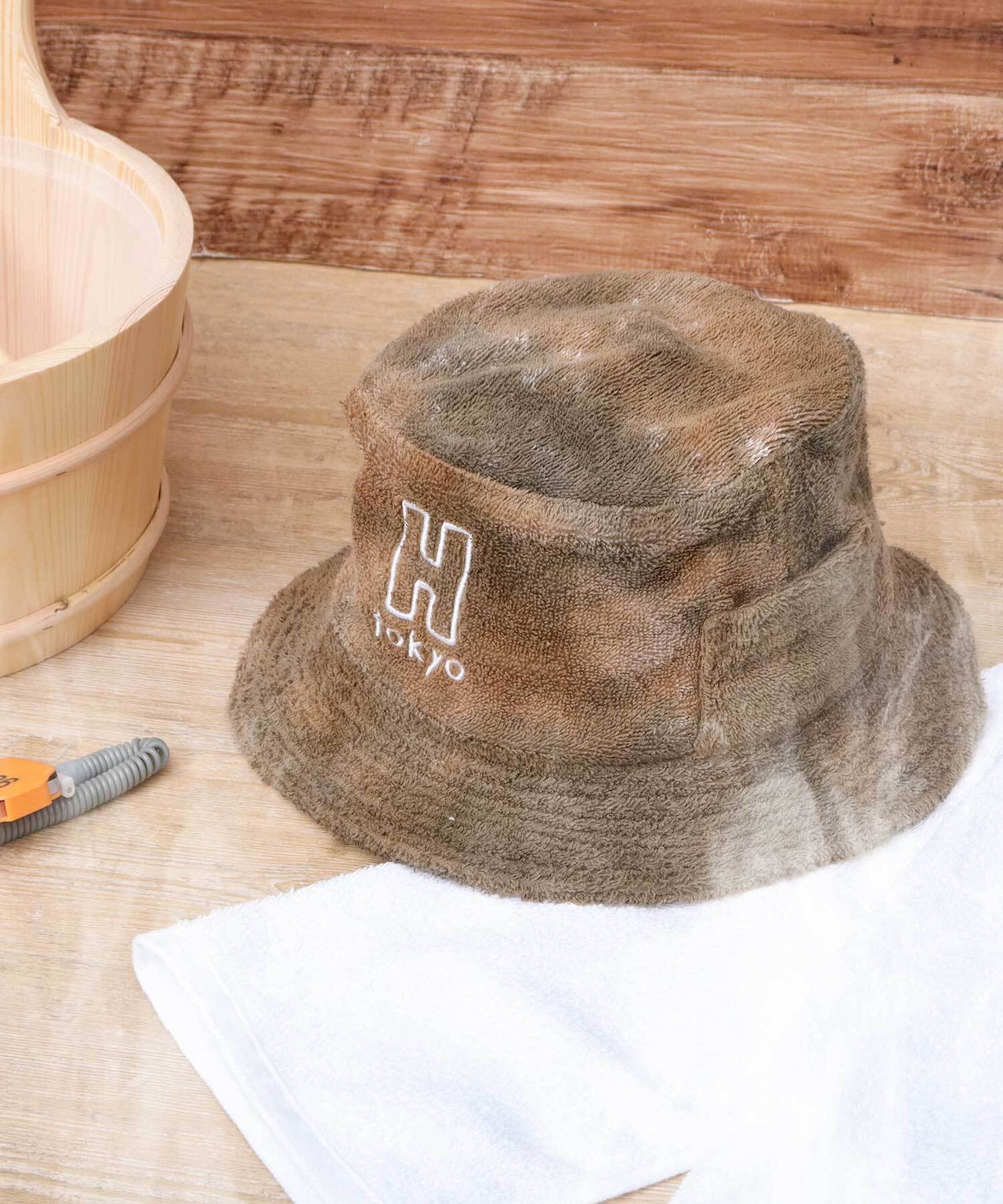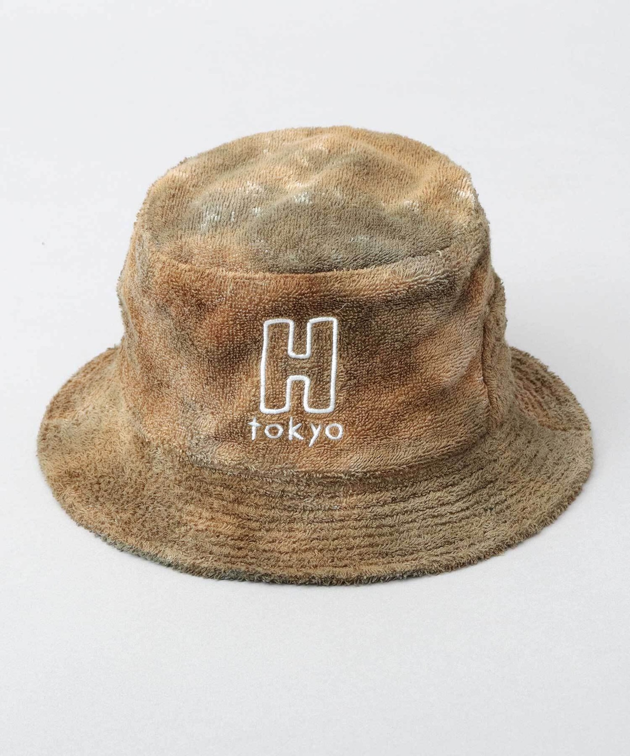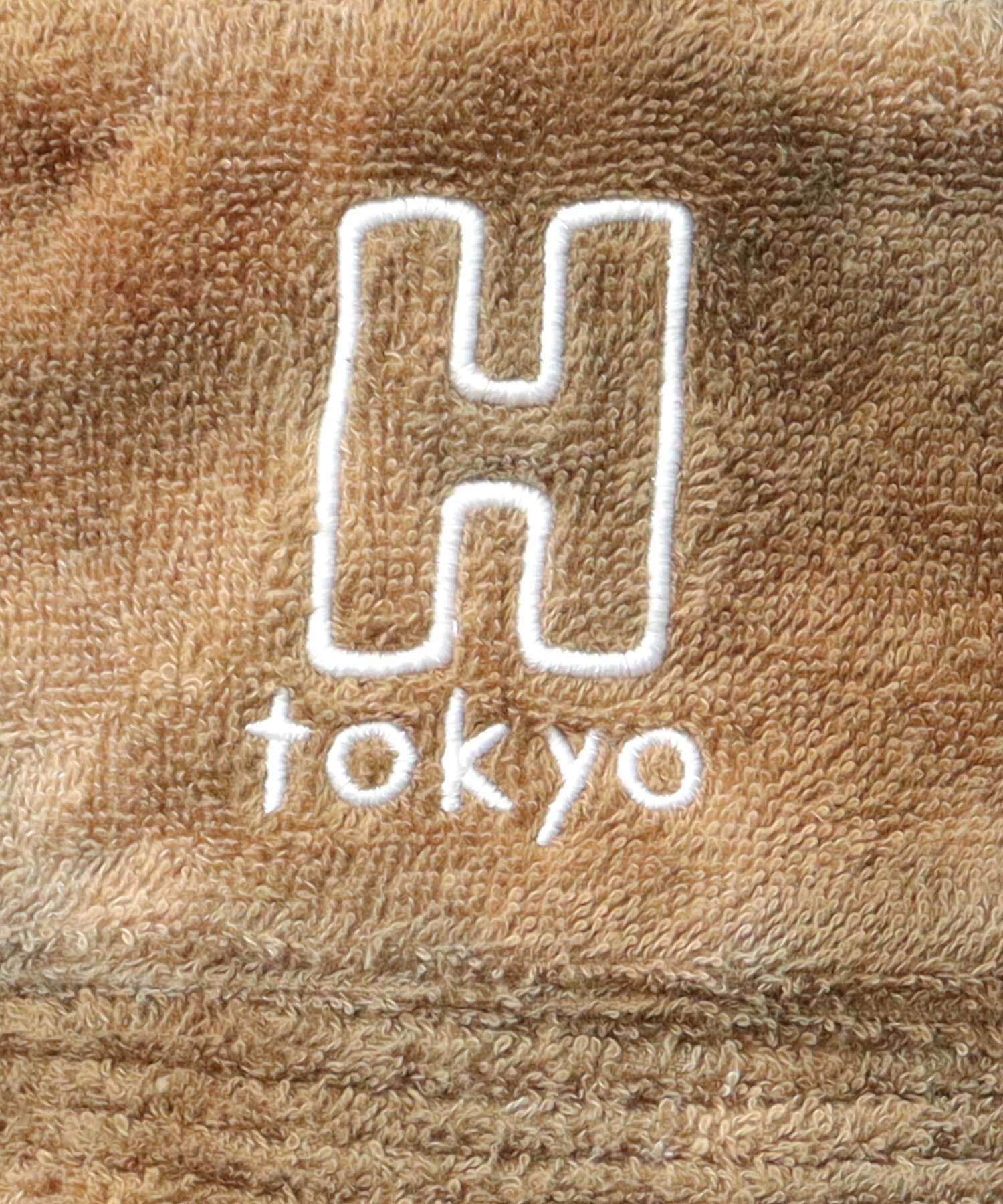 3Hを掲げる『H Tokyo』のタイダイ染めによる独特な色柄が特徴のサウナハット。H Tokyoのブランドロゴ刺繍がワンポイントに。