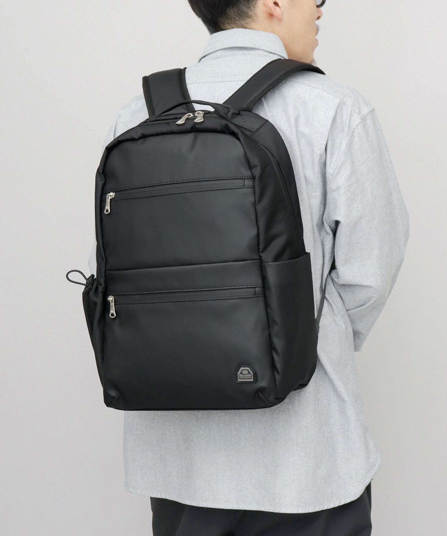 ワントーンでまとめた切替えデザインがスマートな印象。ビジネスから日常使いまでON/OFF兼用で使えるデザインです。撥水性・防水性に優れた生地を使用しているので、ちょっとした雨も平気で、手入れもしやすいのが嬉しいです。PCポケットやペットボトルやタンブラーを収納できるボトルポケットも完備しているので、通勤・通学バッグにぴったり。コーデを選ばない、シンプルデザインのデイパックは父の日などのプレゼント・ギフトにもおすすめ!