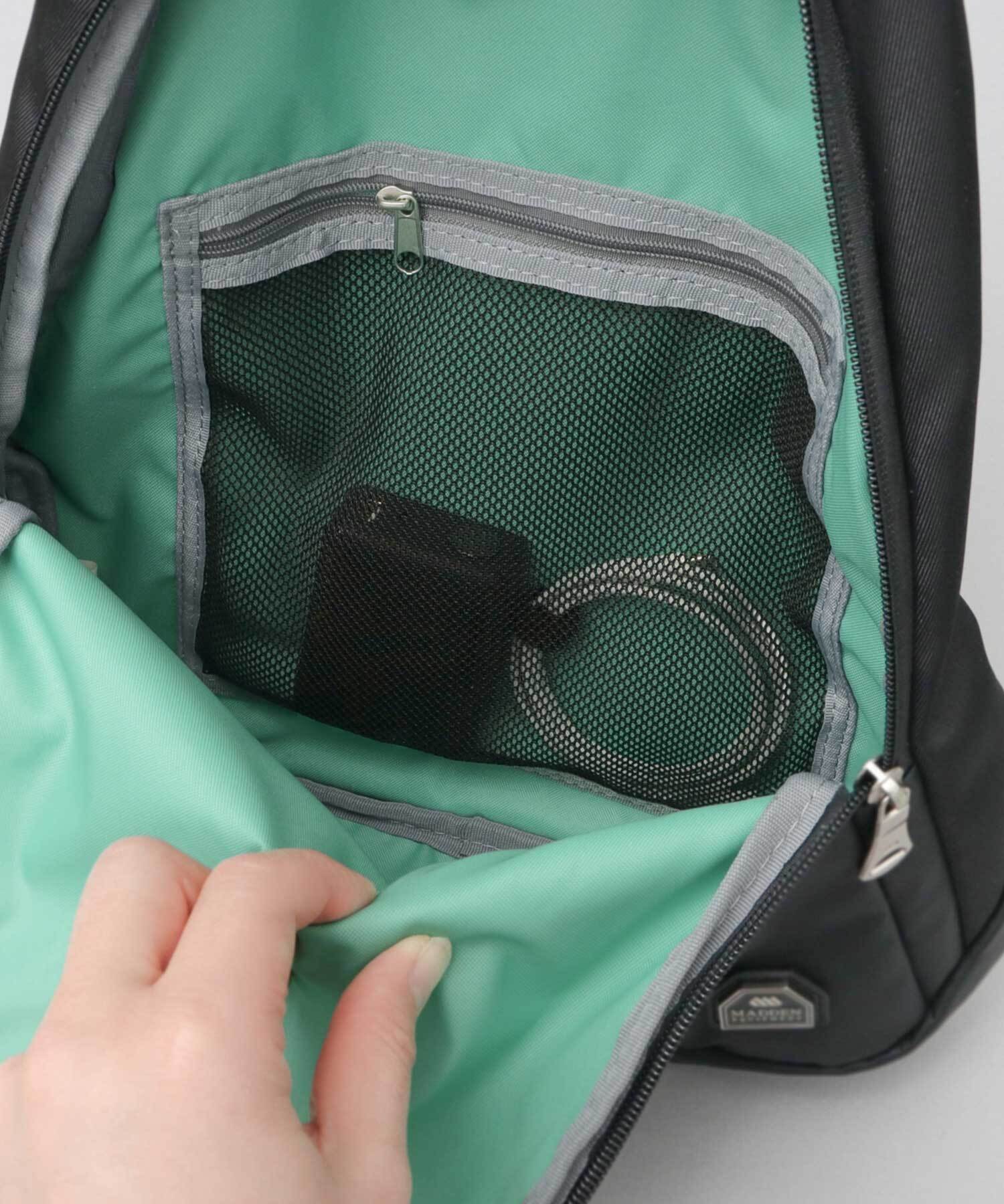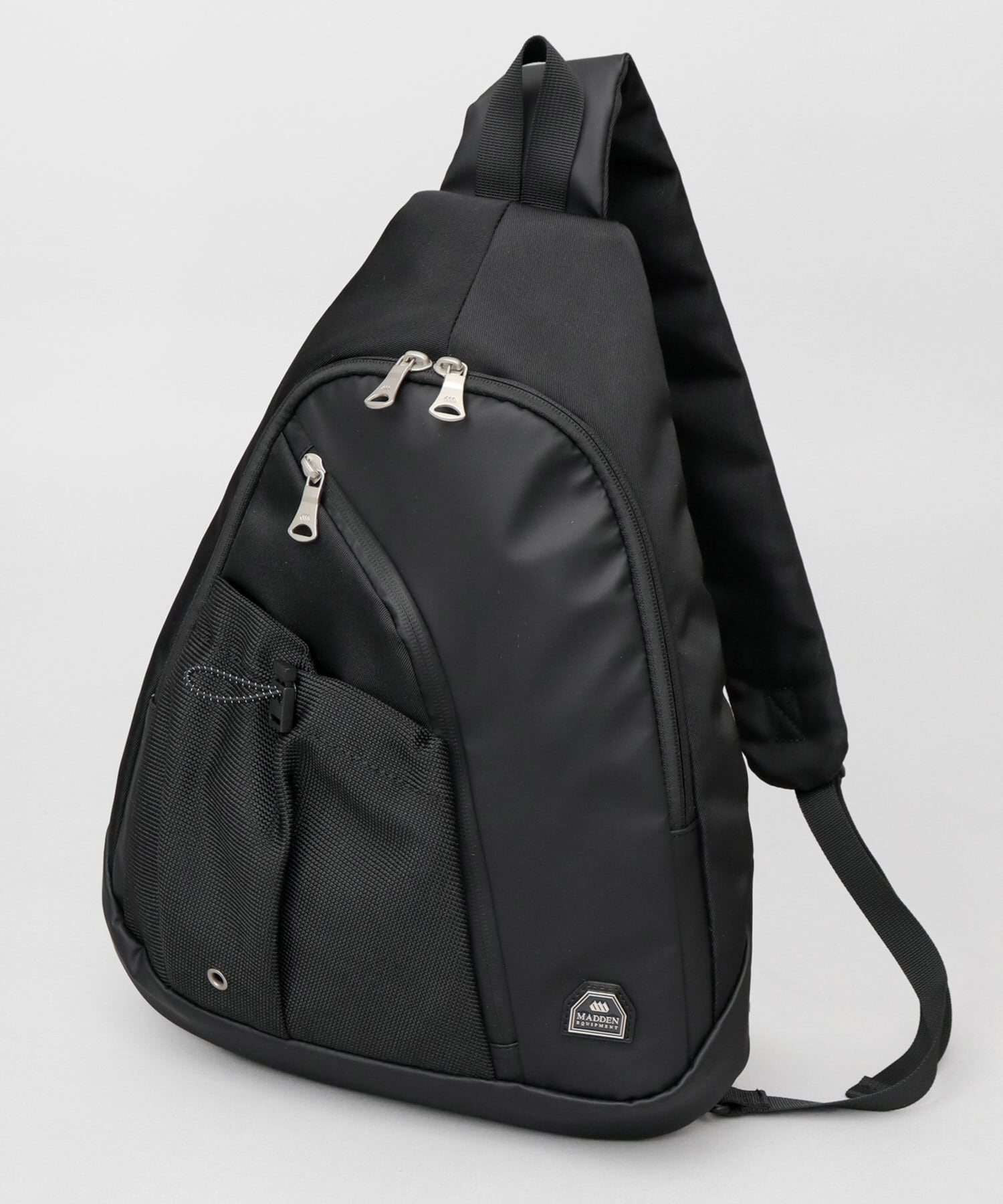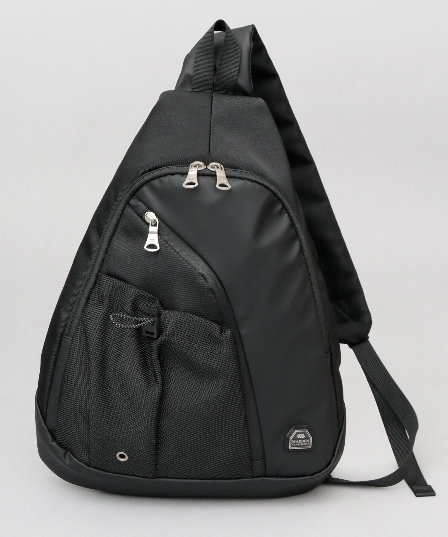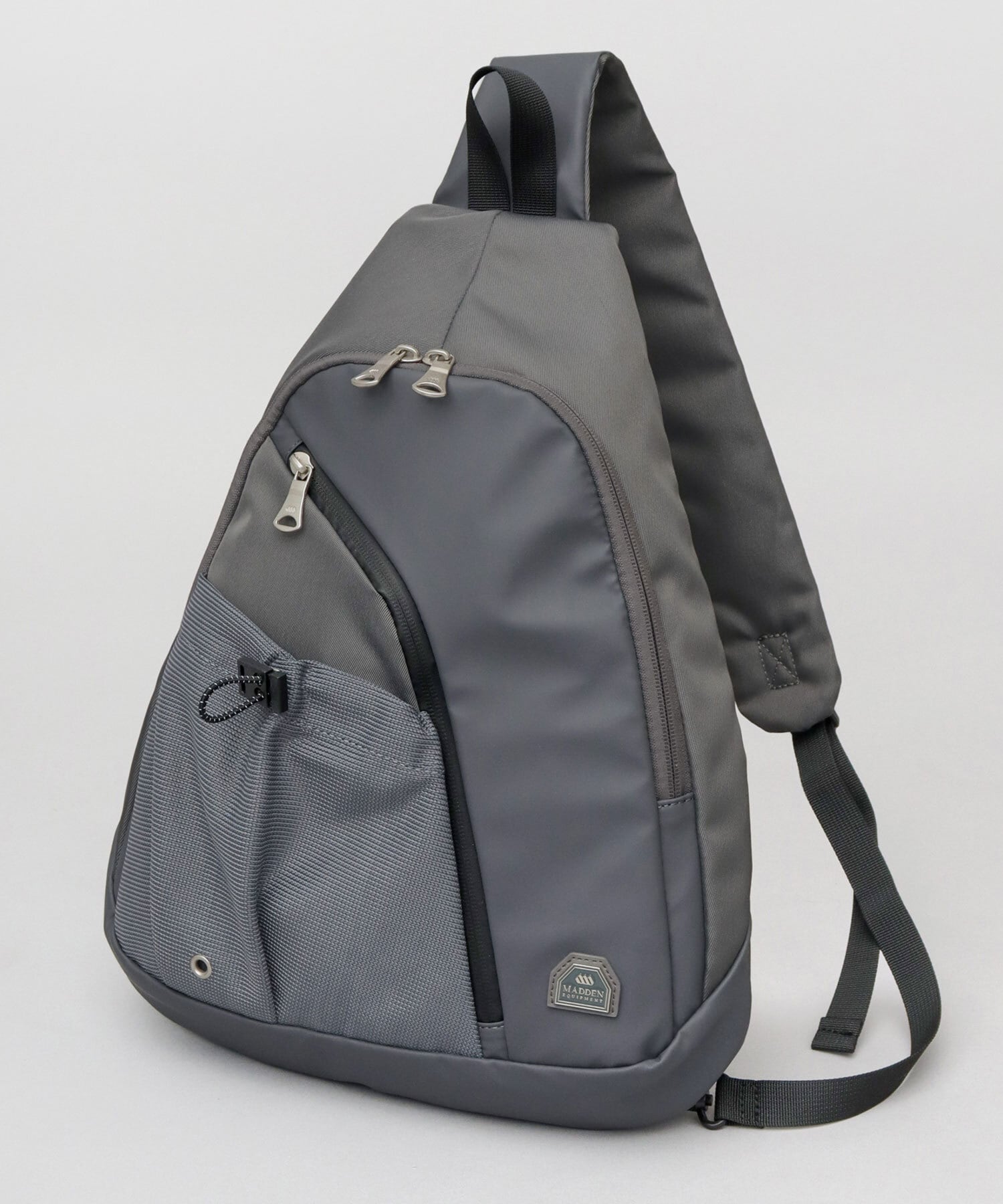 アウトドアフィールドで培ってきたモノづくりの哲学を現代に合わせて再生させたシティプロダクトレーベル、“MADDEN EQUIPMENT”のワンショルダーバッグ。財布やスマホ、ポーチ、折り畳み傘、ペットボトルなど、いつものお出掛けアイテムをひとつにまとめられる、使い勝手の良いサイズ感。体にフィットする形状で、スリングして荷物を取り出しやすく、フロント掛けもしやすい使いやすさが魅力。ドローストリングでボトルの固定ができるメッシュボトルポケットや取り外しのできるキーホルダーなど、タウンユースしやすい機能を複数完備。普段使いや通勤・通学時にはもちろん、防水性・撥水性に優れた生地を使用しているので、旅行のサブバッグやアウトドアシーンなど、幅広いシーンで使える優秀バッグ。