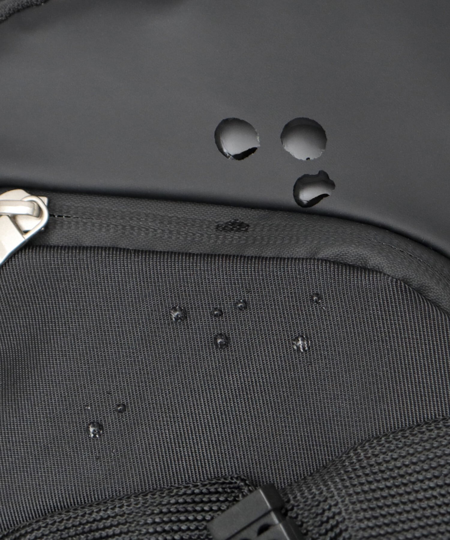 素材には、撥水加工を施した軽量ポリエステルツイルと堅牢で防水性に優れたポリウレタン生地を使用。