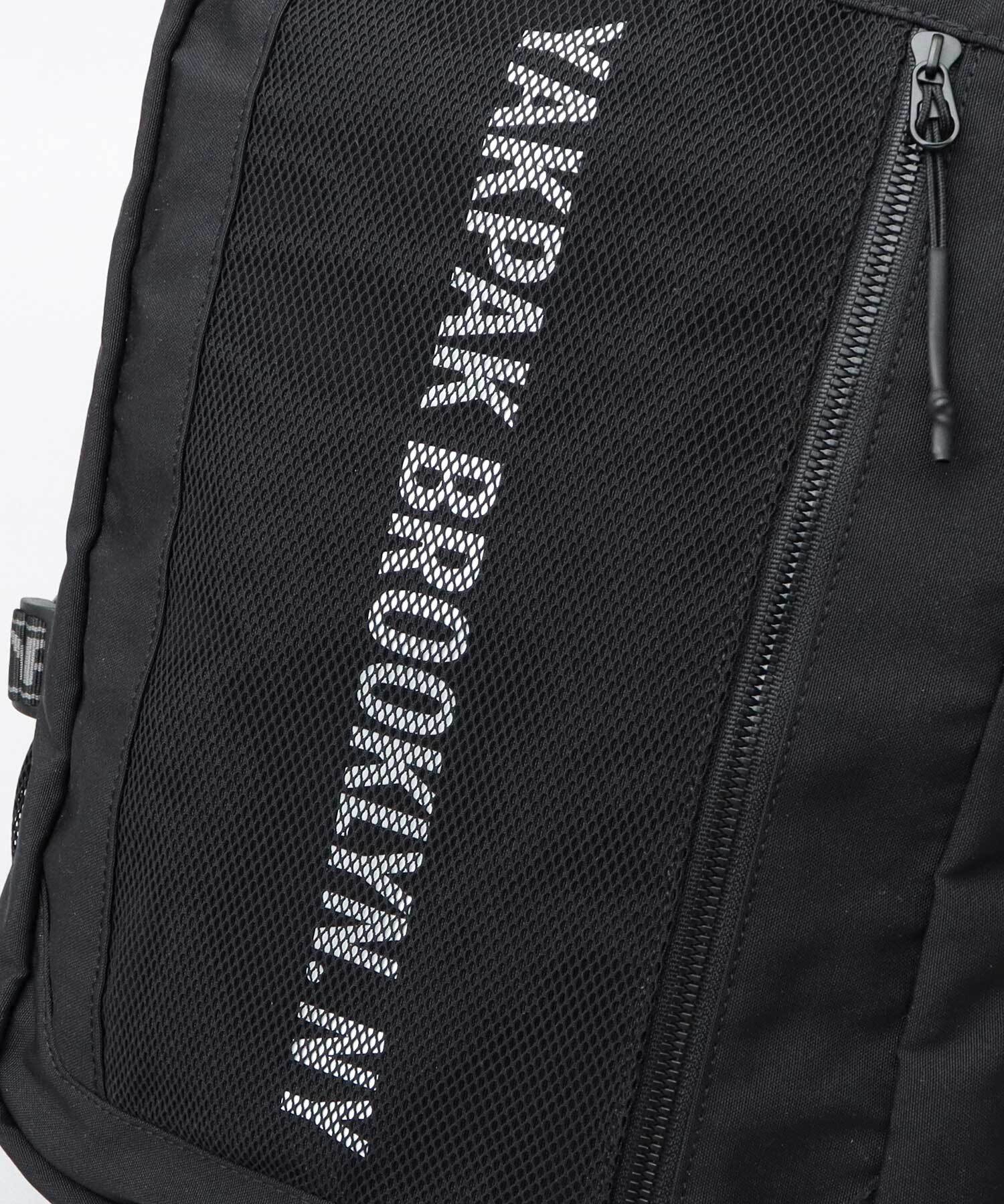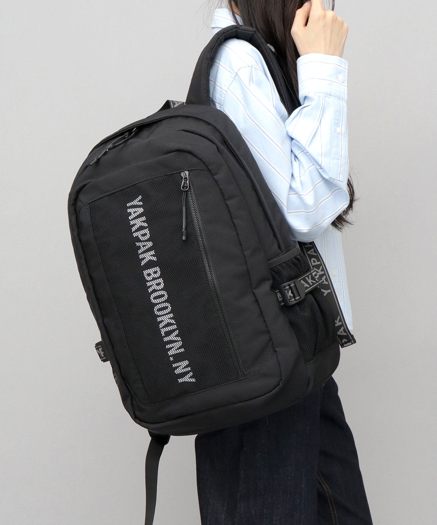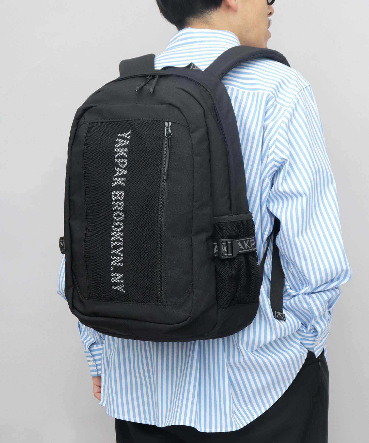 メッシュから覗く、ロゴプリントが目を惹く、YAKPAKのスクエア型バックパック。スクエア型のベーシックなフォルムに、デイリーに使いやすいサイズ感が魅力。