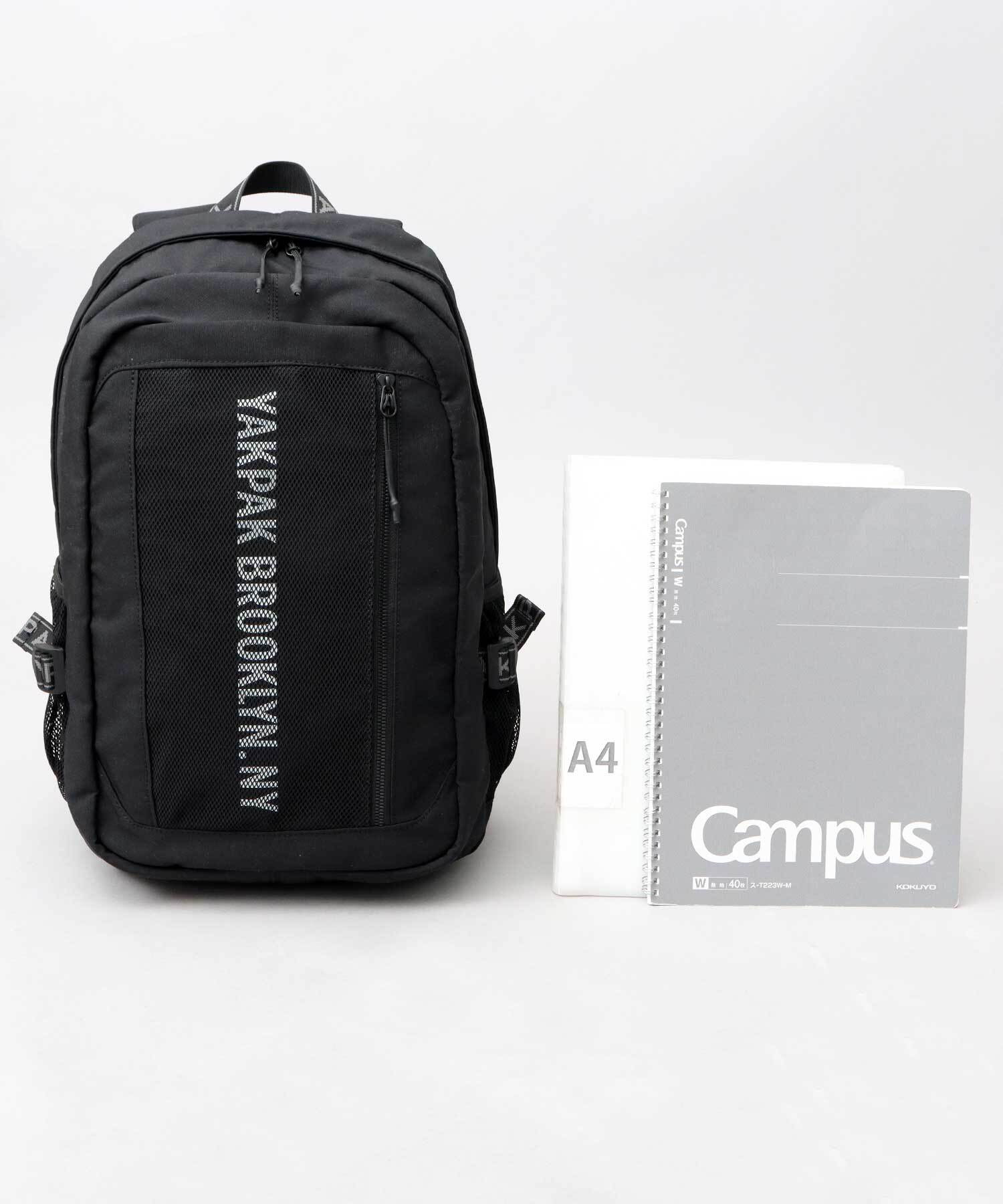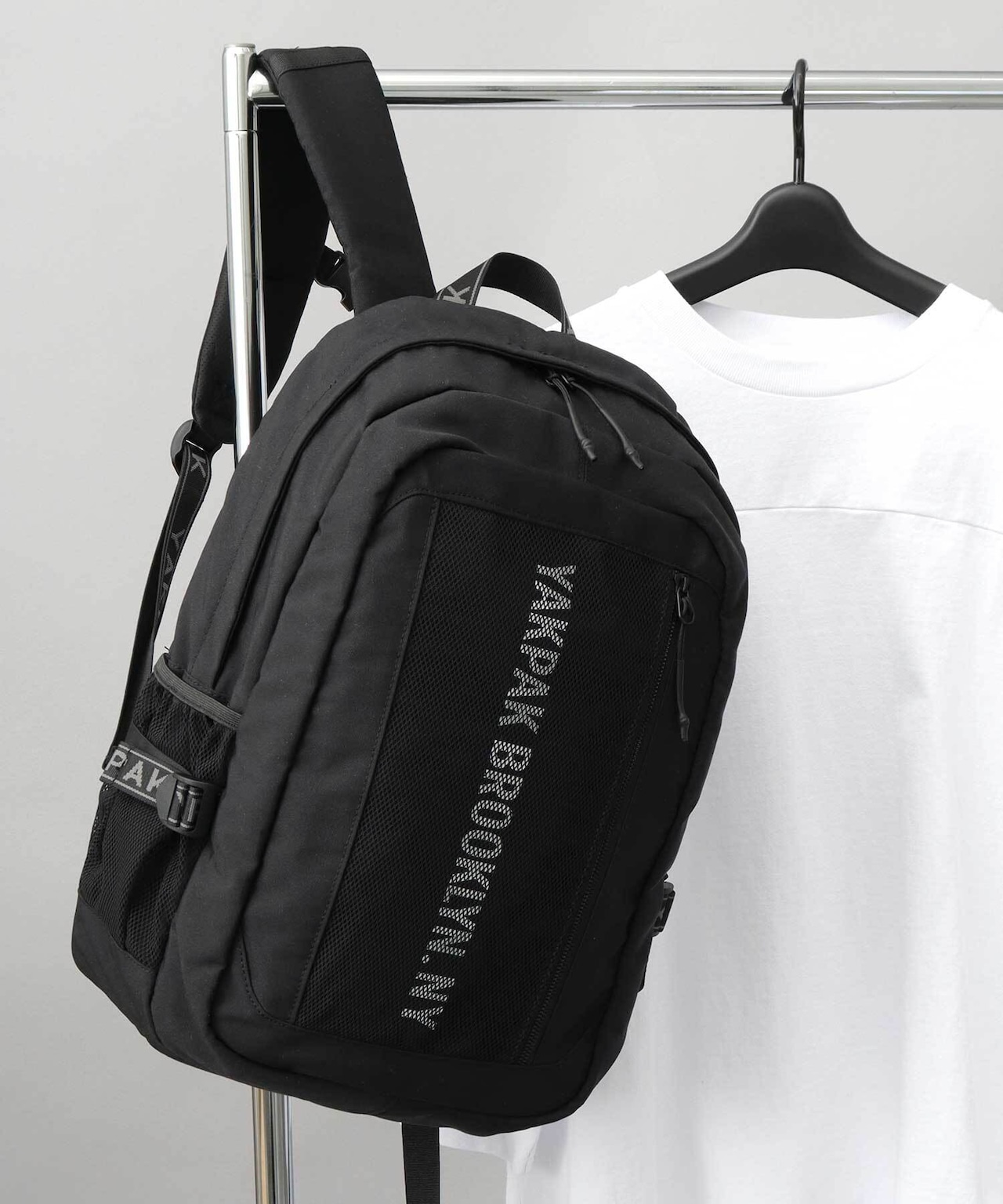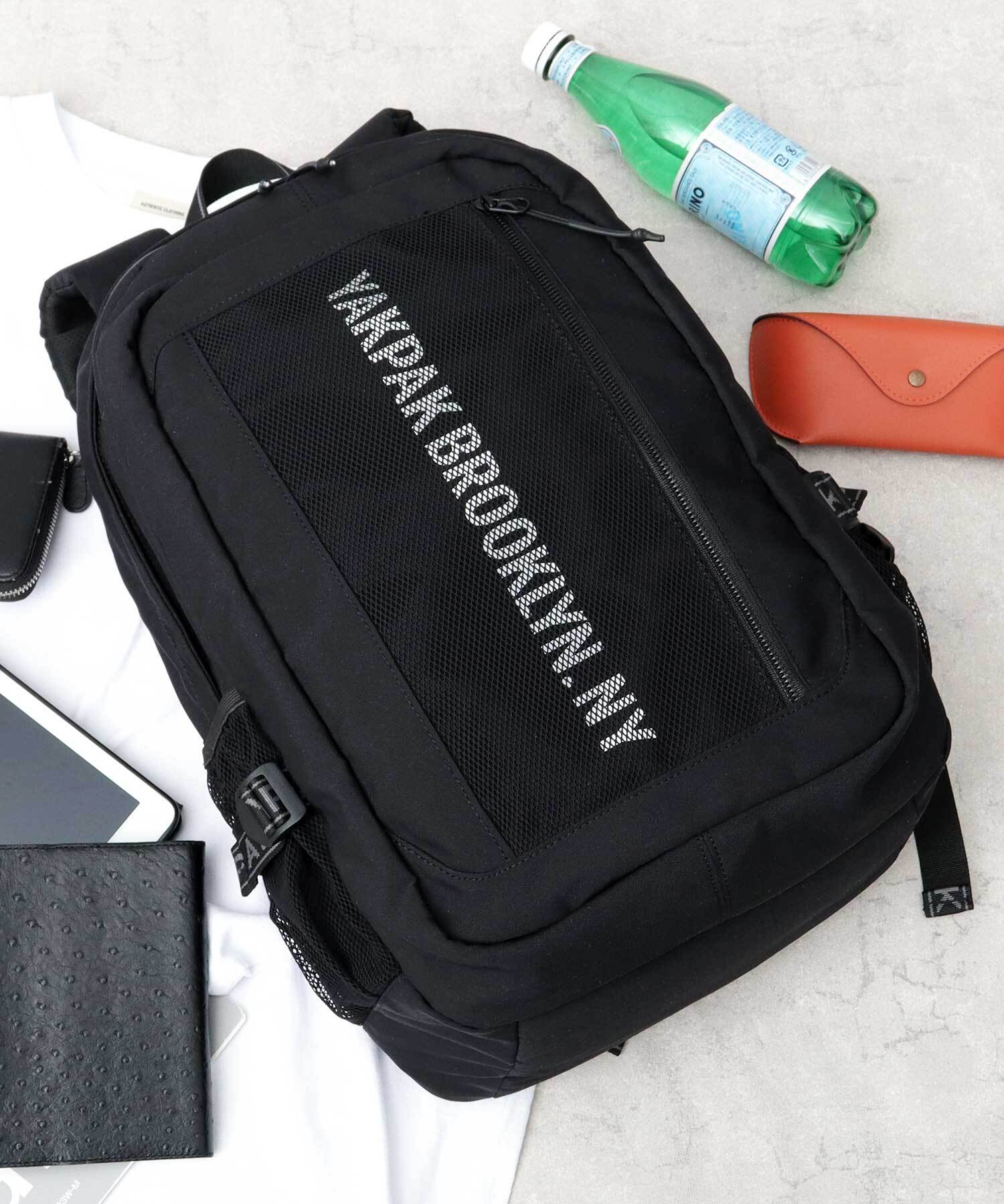 メッシュから覗く、ロゴプリントが目を惹く、YAKPAKのスクエア型バックパック。スクエア型のベーシックなフォルムに、デイリーに使いやすいサイズ感が魅力。
