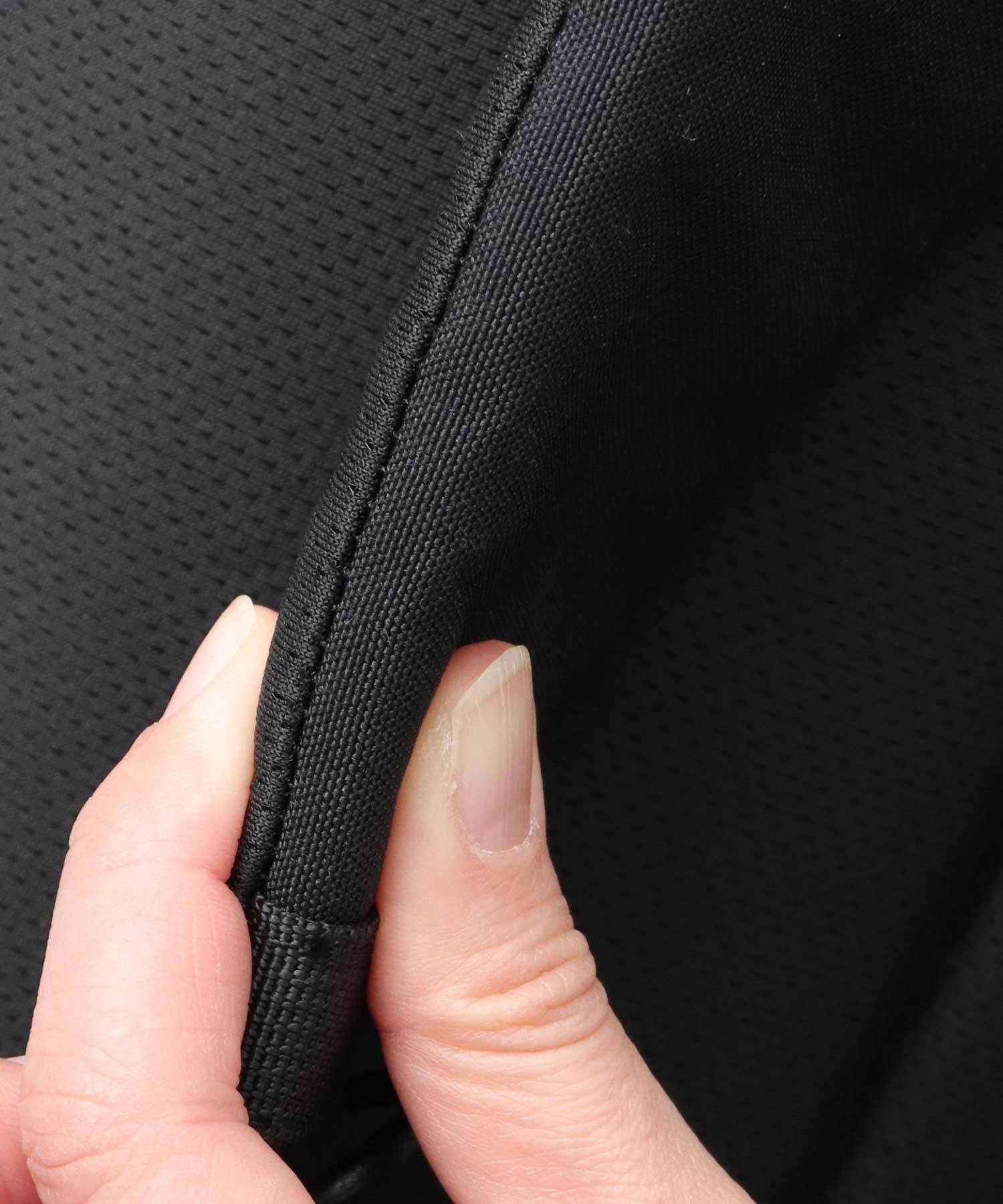 バッグ背面・ショルダーベルトの中には、しっかり厚みのあるクッション材入り。裏側には、通気性の良いメッシュ素材を使用し、不快な蒸れを軽減。
