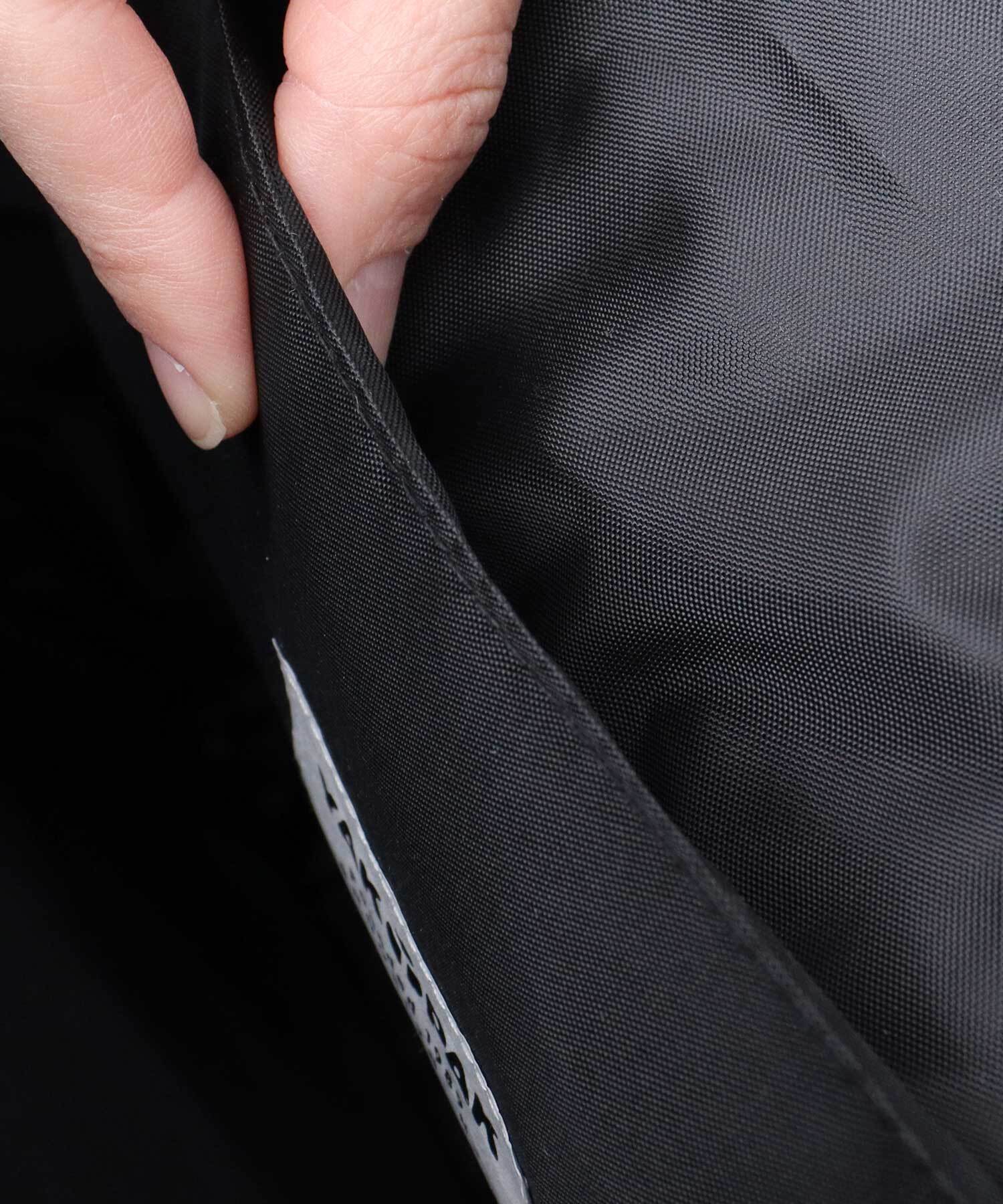 素材には、しっかり厚みのあるポリエステルを使用。ガシガシ使える、カジュアルな生地感が魅力。