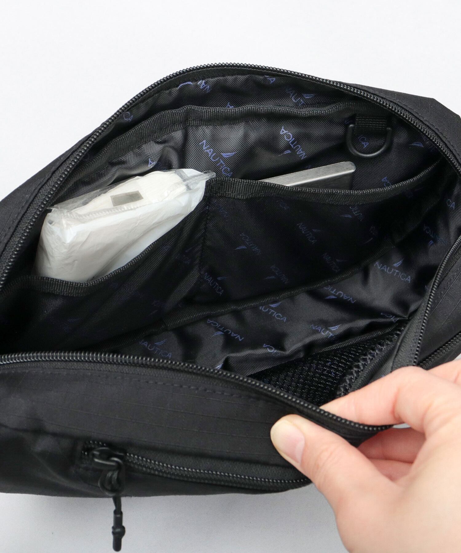 ニューヨークのクロージングブランド“NAUTICA(ノーティカ)”の、ミリタリーテイストな機能性とデザイン性が特徴の新シリーズのウエストポーチ。ミニマルなデザインに、ミリタリーらしいロゴ刺繍入りの面ファスナーがデザインポイント。収納スペースは、いつものお出掛けアイテムをたっぷり、且つ、スマートに持ち運べる丁度良いサイズ感。内部に仕分けに便利な内ポケットを複数完備した整頓上手なアイテム。素材は、細かい格子状の凹凸が特徴的でタフな雰囲気のリップストップ風生地を使用。ショルダーベルトには、ワンタッチで外せるマグネットバックルを採用し、着脱も便利に。タウンユースにはもちろん、アウトドアや旅行など、幅広いシーンで活躍すること間違いなし。