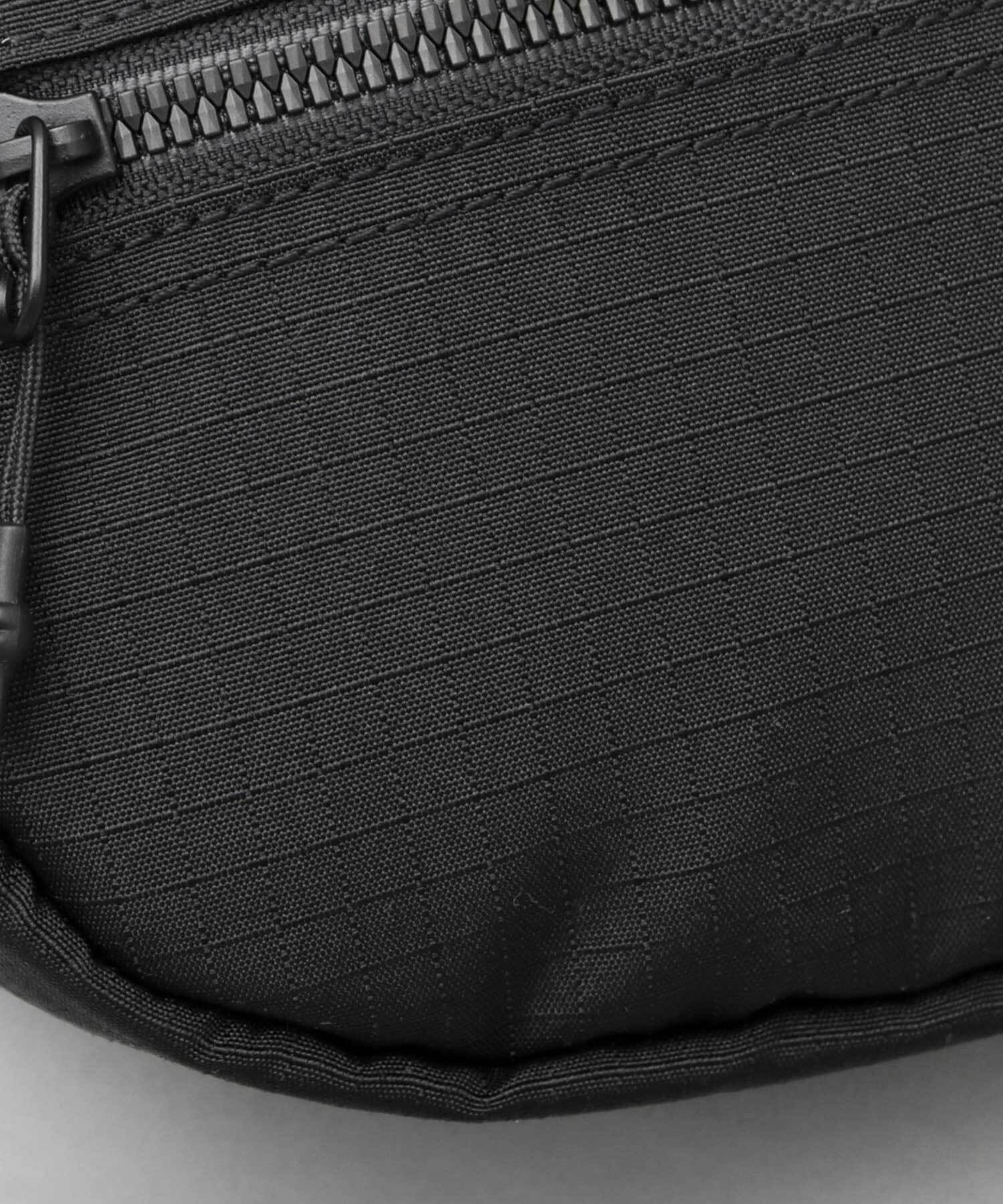 ミリタリーテイストな機能性とデザイン性が特徴のウエストバッグ。格子状の模様が特徴のリップストップ風生地と、ロゴ刺繍入りの面ファスナーがミリタリー感を演出。