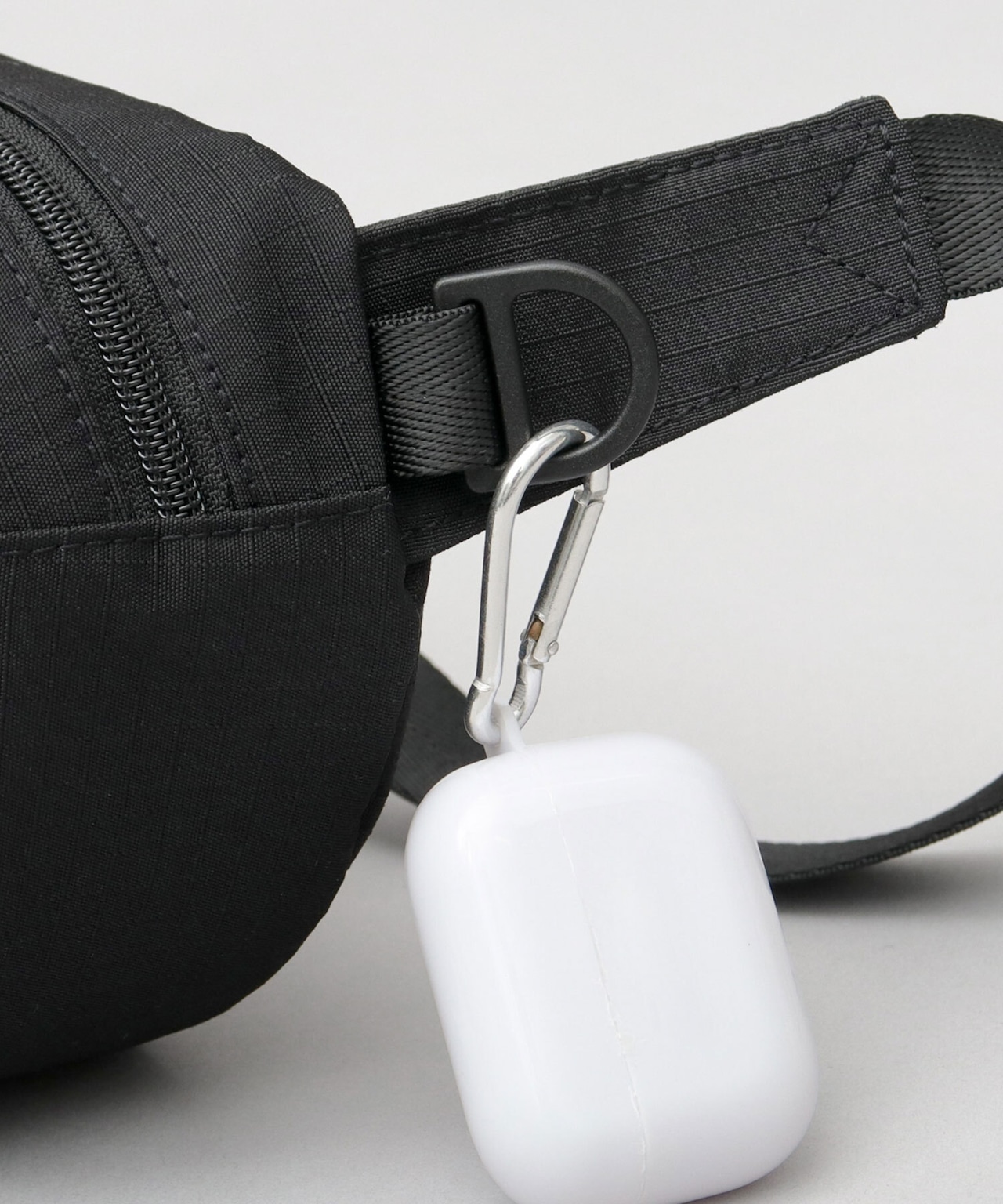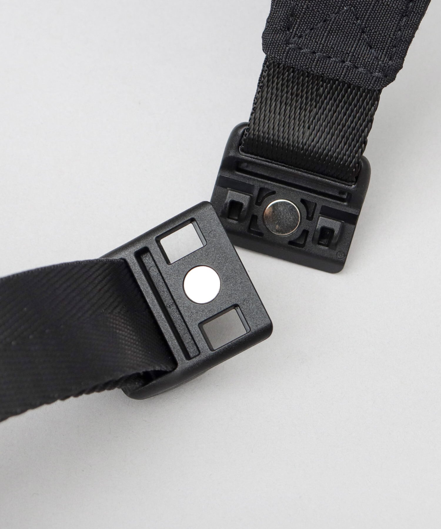 ショルダーベルトは、ワンタッチで外せるマグネットバックル仕様。ベルト部分は、お好みで長さの調節が可能。キーホルダーなどを取り付けられるDカン付き。