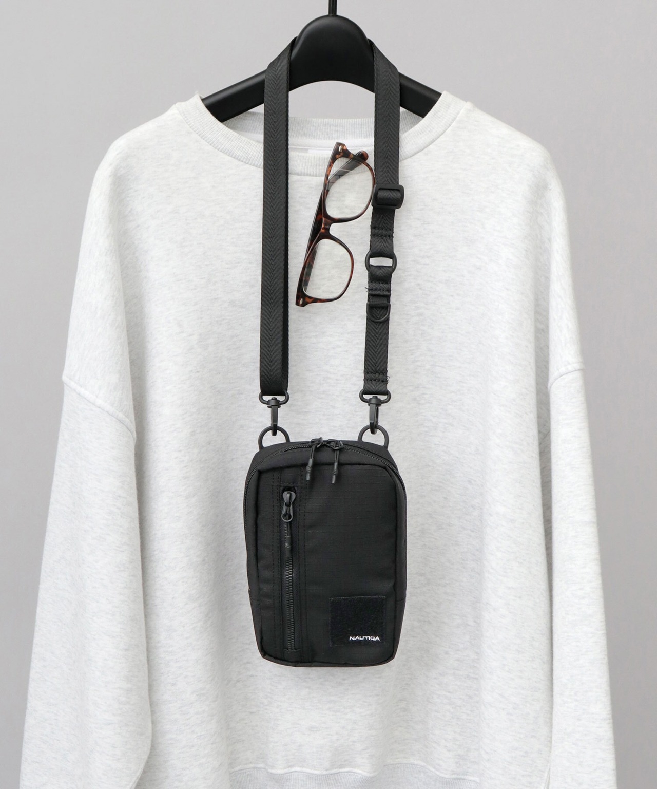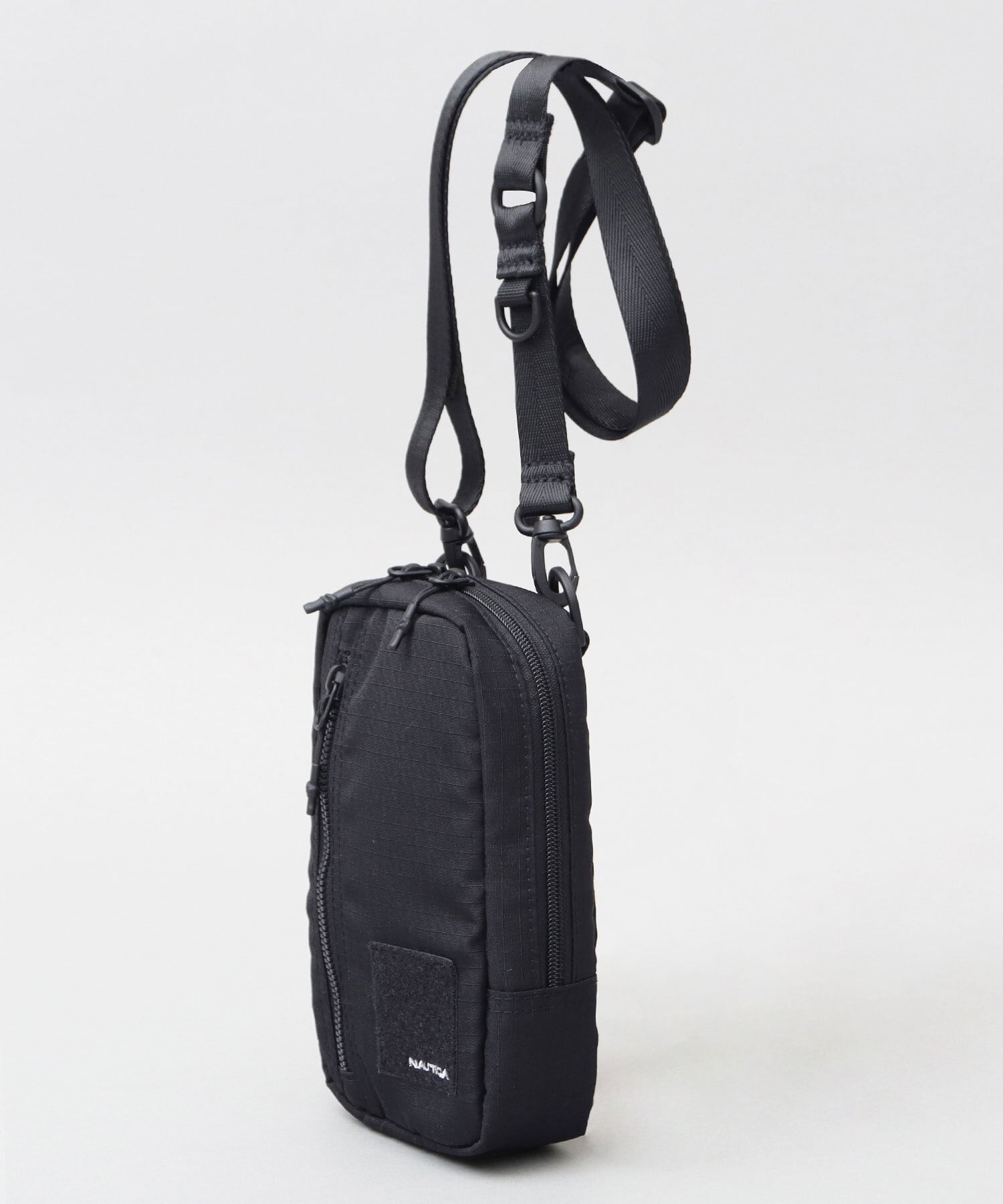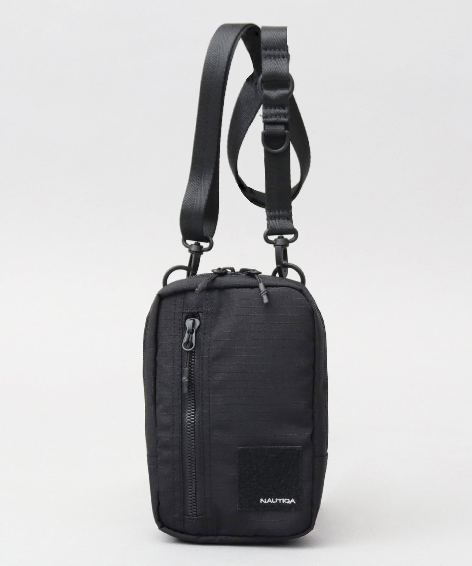 ニューヨークのクロージングブランド“NAUTICA(ノーティカ)”の、ミリタリーテイストな機能性とデザイン性が特徴の新シリーズの縦型ミニショルダーバッグ。ミニマルなデザインに、ミリタリーらしいロゴ刺繍入りの面ファスナーがデザインポイント。コンパクトな見た目でありながら、スマートフォンやミニウォレット、鍵、ミニポーチなど、普段のお出掛けアイテムをすっきり収納可能できる程よいサイズ感。素材は、細かい格子状の凹凸が特徴的でタフな雰囲気のリップストップ風生地を使用。ショルダーベルトは取り外し可能なのでミニポーチとしての利用も可能です。タウンユースにはもちろん、アウトドアや旅行など、幅広いシーンで活躍すること間違いなし。