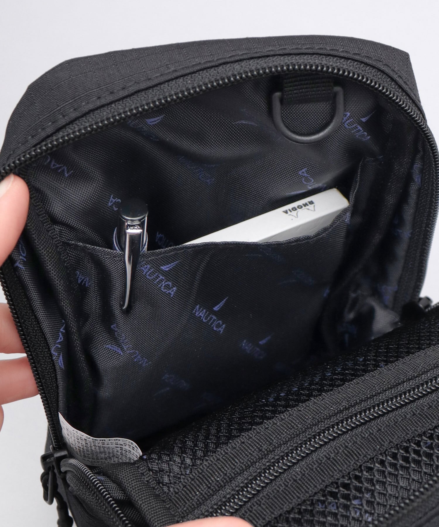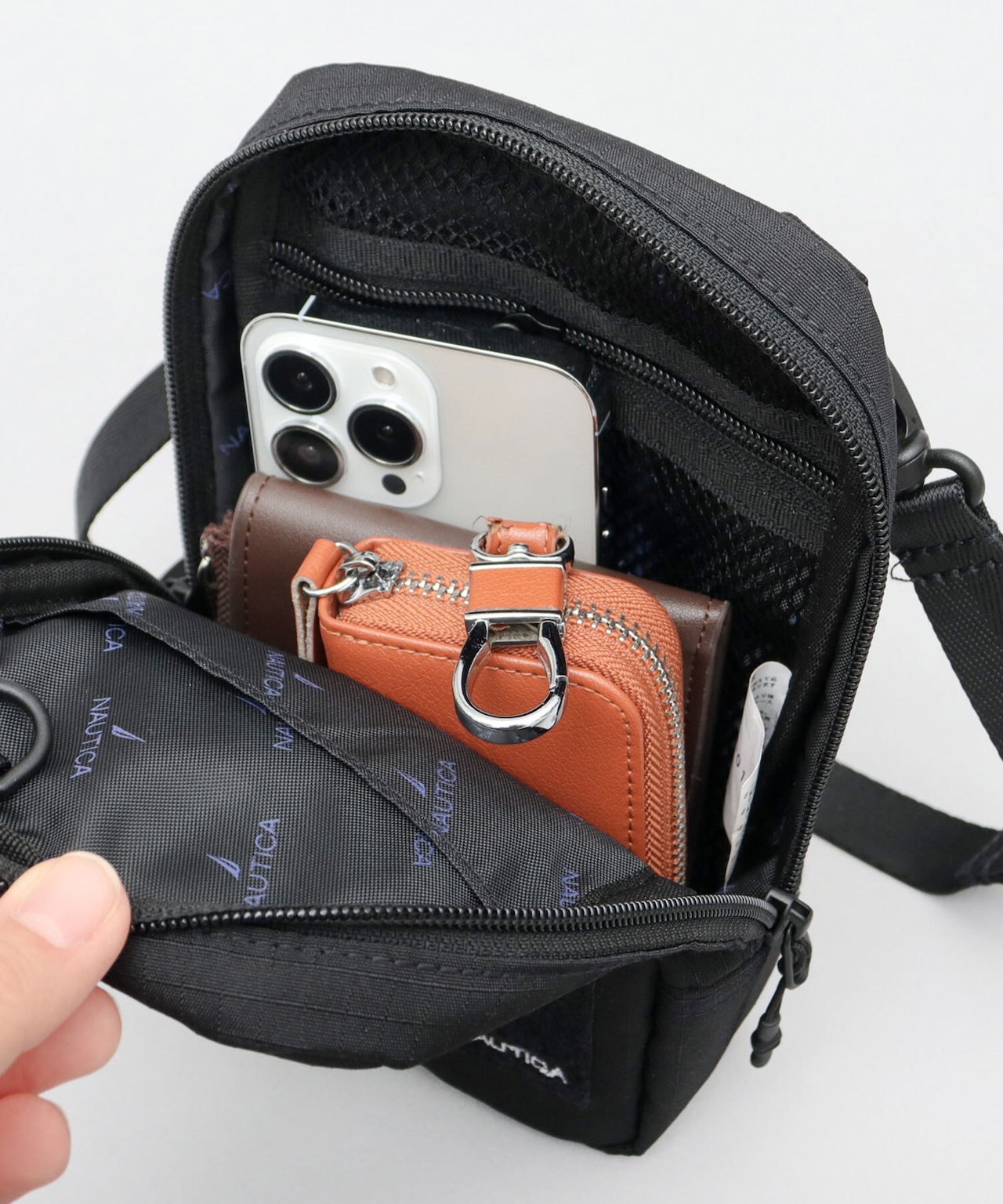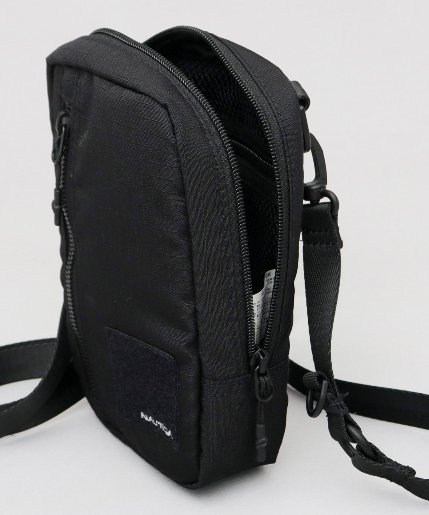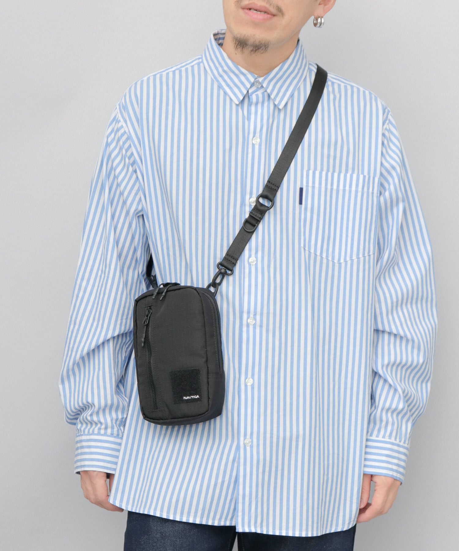 ニューヨークのクロージングブランド“NAUTICA(ノーティカ)”の、ミリタリーテイストな機能性とデザイン性が特徴の新シリーズの縦型ミニショルダーバッグ。ミニマルなデザインに、ミリタリーらしいロゴ刺繍入りの面ファスナーがデザインポイント。コンパクトな見た目でありながら、スマートフォンやミニウォレット、鍵、ミニポーチなど、普段のお出掛けアイテムをすっきり収納可能できる程よいサイズ感。素材は、細かい格子状の凹凸が特徴的でタフな雰囲気のリップストップ風生地を使用。ショルダーベルトは取り外し可能なのでミニポーチとしての利用も可能です。タウンユースにはもちろん、アウトドアや旅行など、幅広いシーンで活躍すること間違いなし。