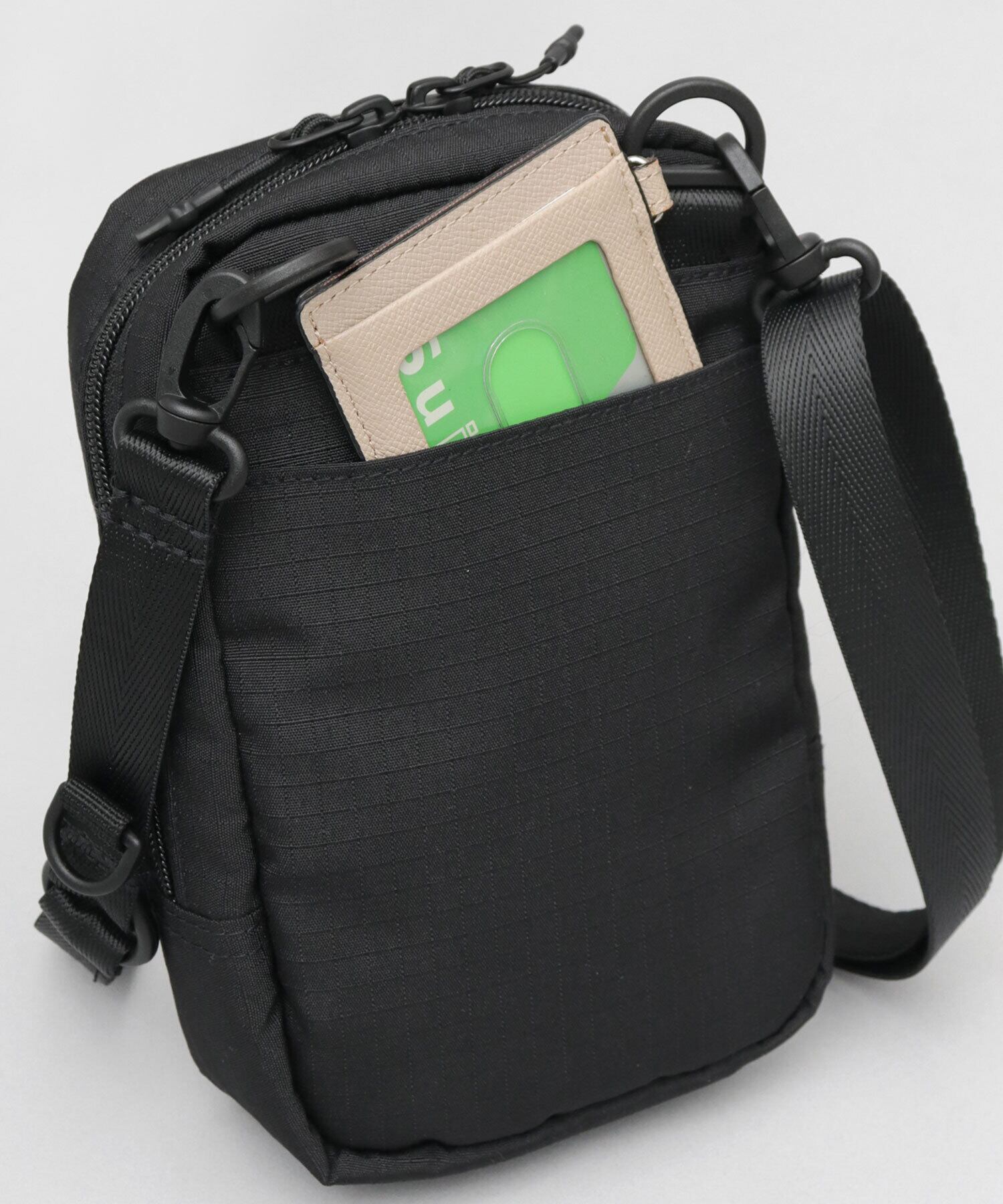 リップストップ風の生地を使用した、程よいミリタリー感がスタイリングのアクセントになります。アクセサリー感覚で持ち歩けるコンパクトサイズで、必要なものだけを最小限にまとめられるので、身軽に動きたい日におすすめ!旅行などアクティブなシーンのサブバッグとしても便利です。ミリタリー感がありつつも、ミニマルなデザインなので、カジュアル全般、幅広いスタイリングに合わせやすいと思います。男女問わず使えるユニセックスアイテムなので、プレゼントにもおすすめです。