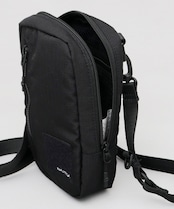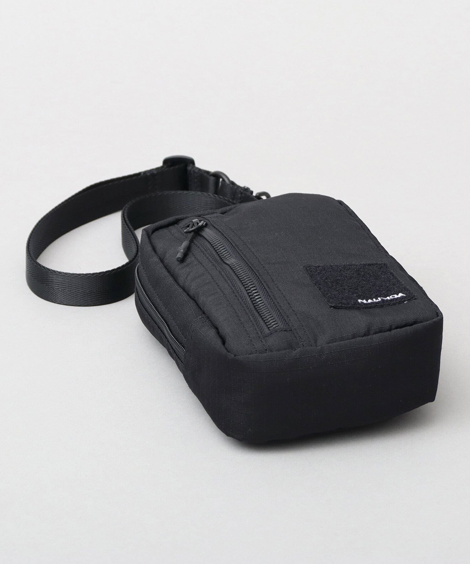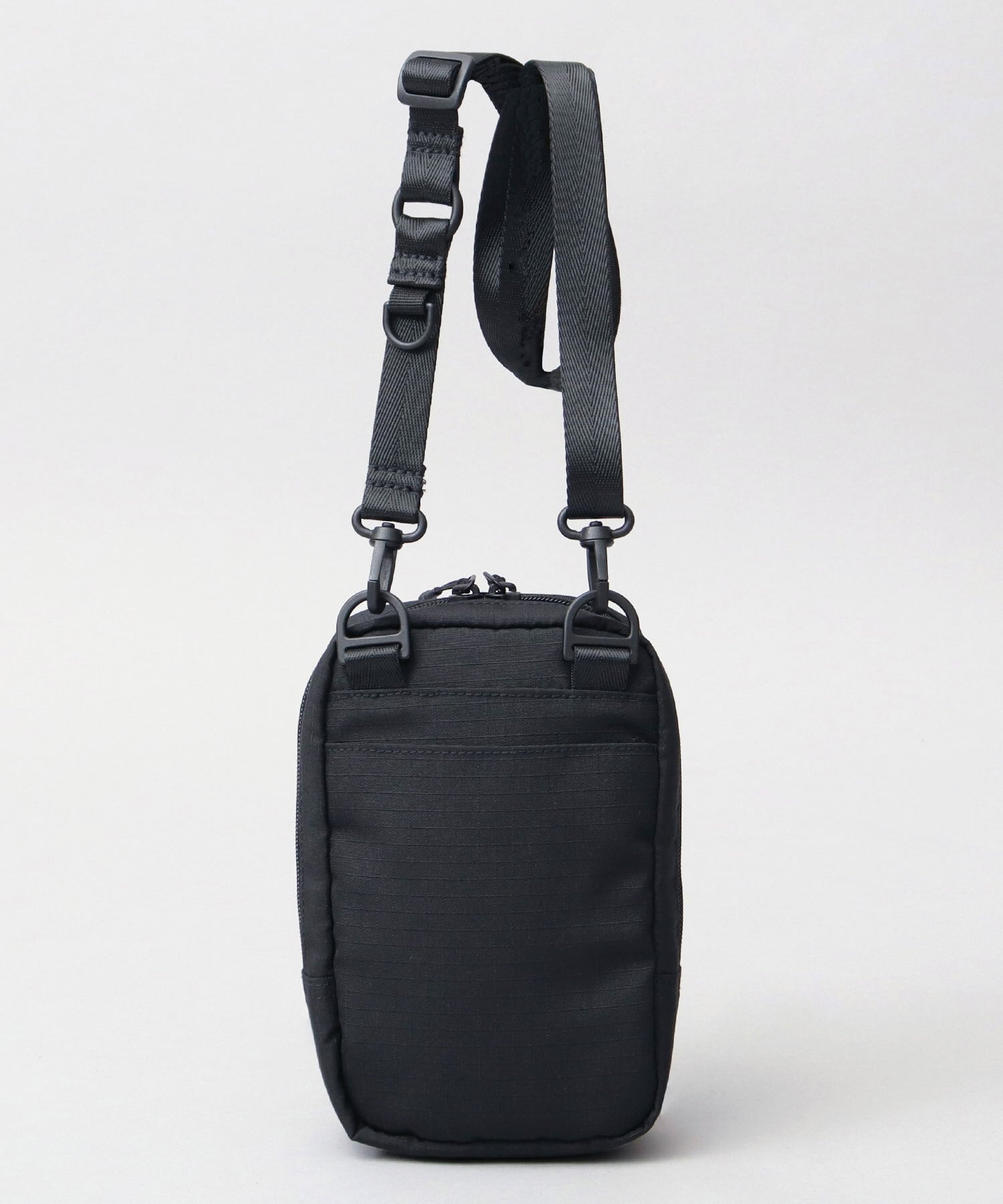 ミリタリーテイストな機能性とデザイン性が特徴のミニショルダーバッグ。格子状の模様が特徴のリップストップ風生地と、ロゴ刺繍入りの面ファスナーがミリタリー感を演出。