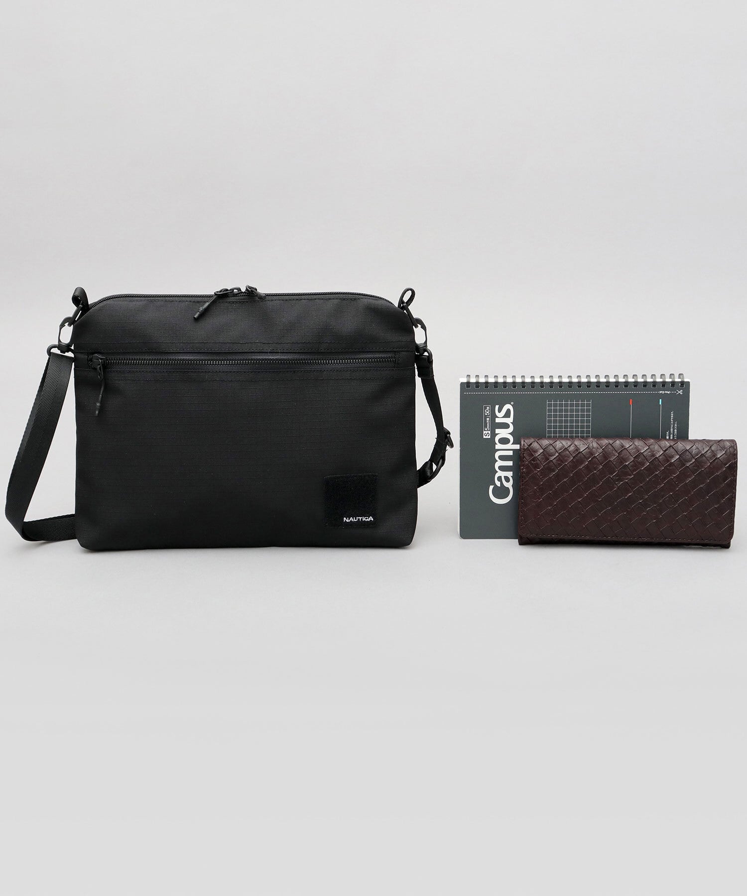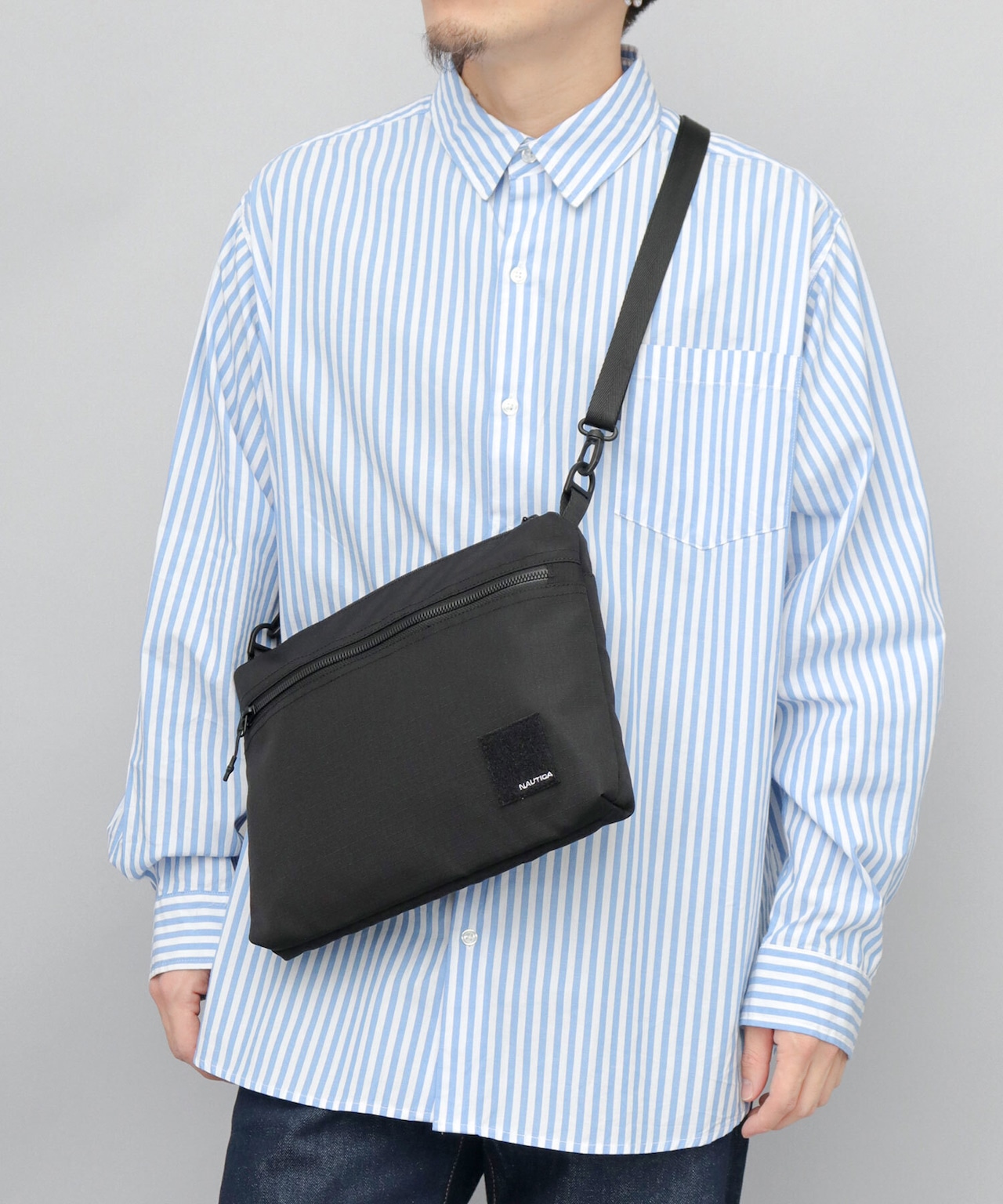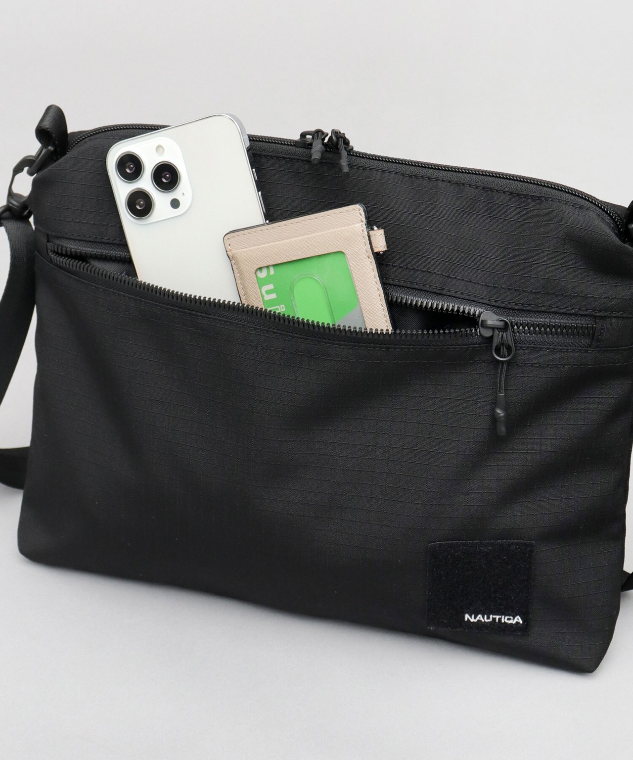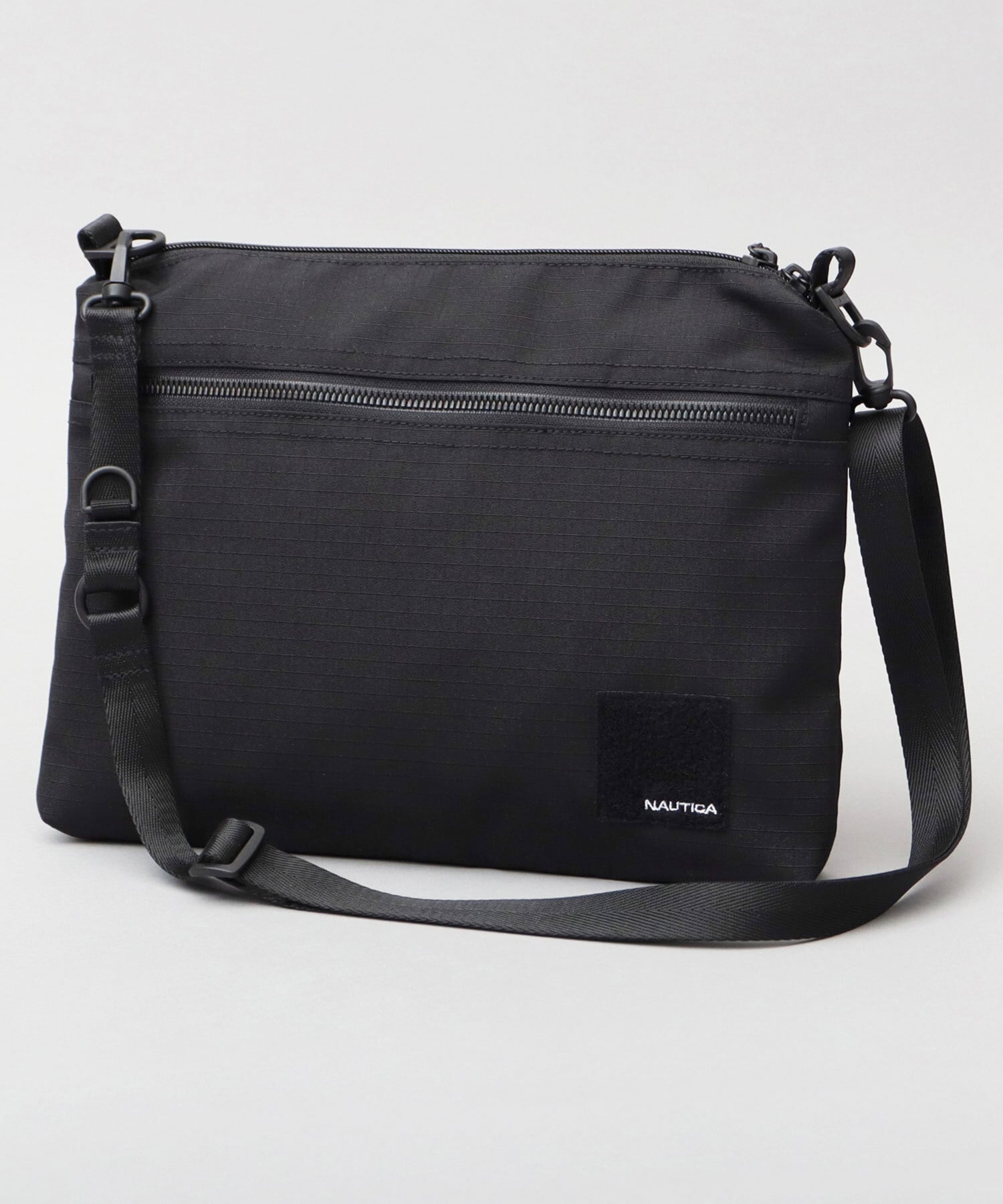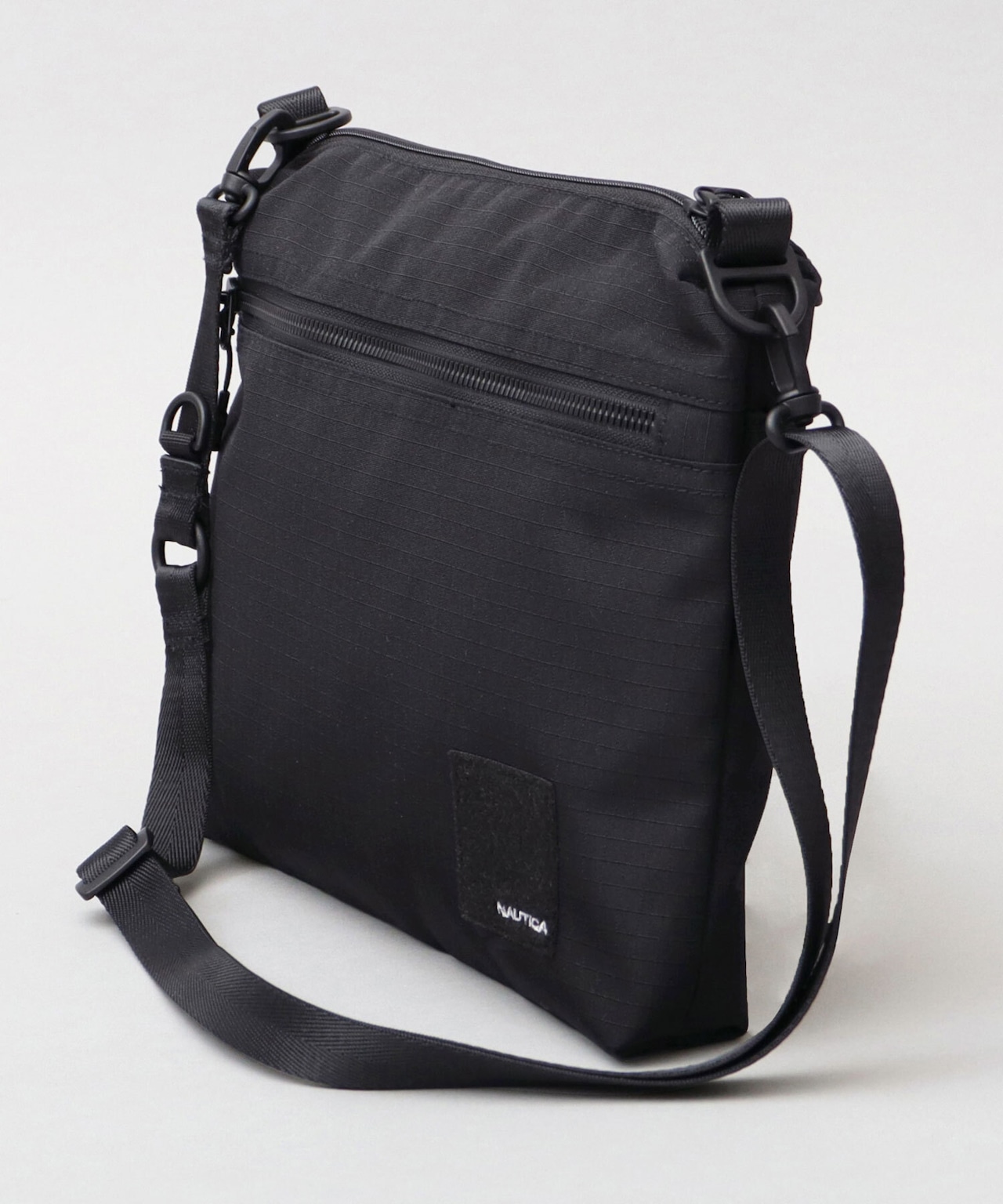 ニューヨークのクロージングブランド“NAUTICA(ノーティカ)”の、ミリタリーテイストな機能性とデザイン性が特徴の新シリーズのサコッシュバッグ。ミニマルなデザインに、ミリタリーらしいロゴ刺繍入りの面ファスナーがデザインポイント。サコッシュらしいシンプルなスクエアシルエットの内部は、いつものお出掛けアイテムがゆったり収納可能な使い勝手の良いサイズ感。内部に仕分けに便利な内ポケットを複数完備した、整頓上手なアイテム。素材は、細かい格子状の凹凸が特徴的でタフな雰囲気のリップストップ風生地を使用。ショルダーベルトは取り外し可能なのでバッグインバッグとしての利用も可能です。タウンユースにはもちろん、アウトドアや旅行など、幅広いシーンで活躍すること間違いなし。