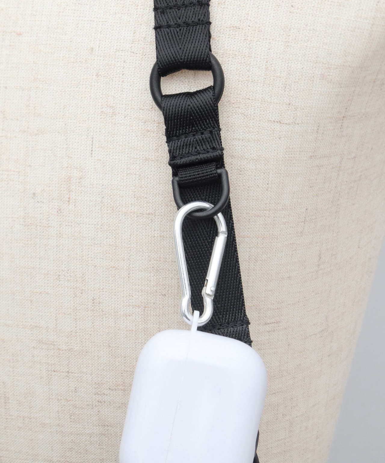 ショルダーベルトは、アジャスター付きでお好みの長さに調節が可能。キーホルダーなどを取り付けられるDカン付き。ショルダーベルトを外してバッグインバッグとしても利用可能。