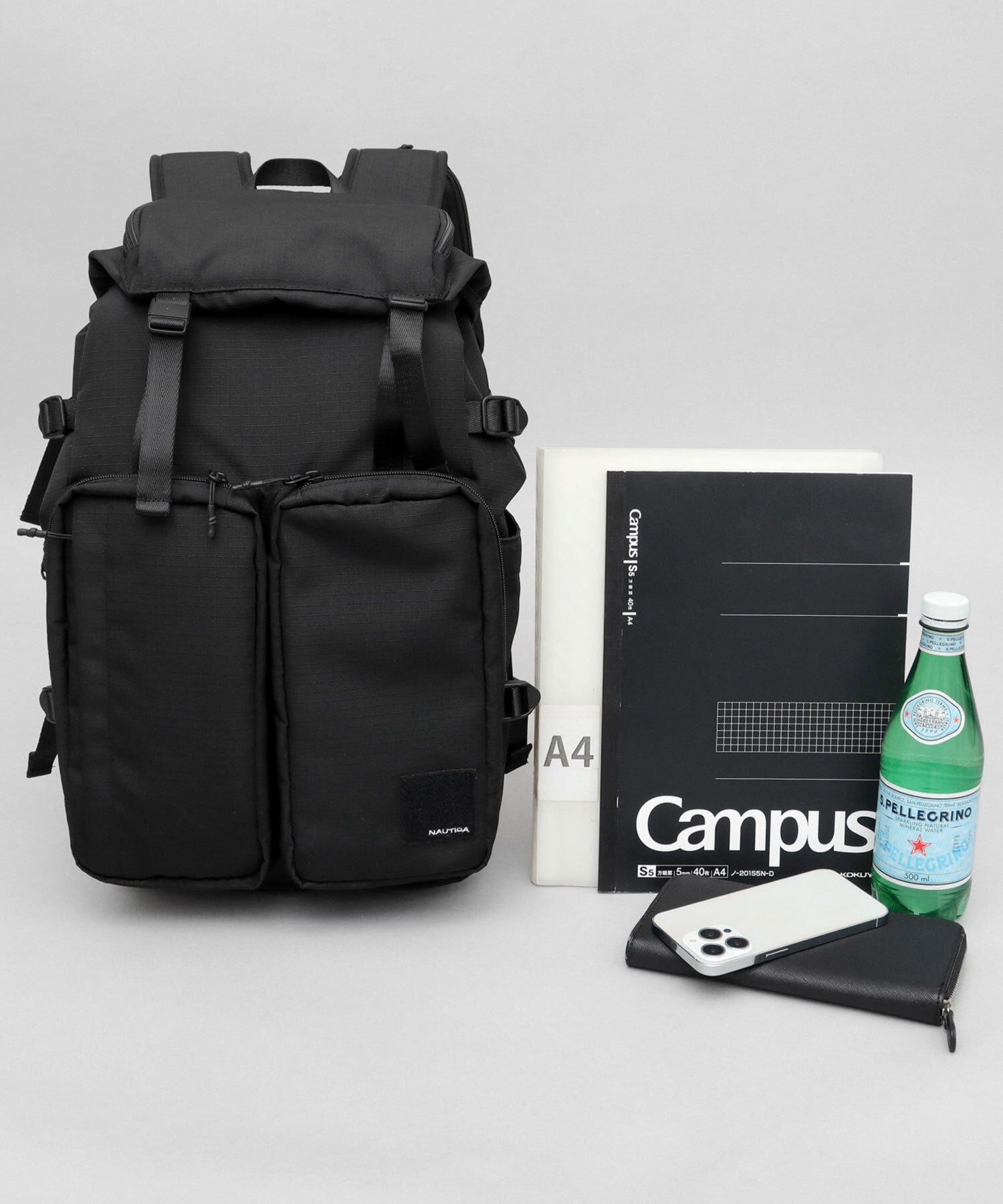 ニューヨークのクロージングブランド“NAUTICA(ノーティカ)”の、ミリタリーテイストな機能性とデザイン性が特徴の新シリーズのフラップバックパック。ミニマルなデザインに、ミリタリーらしいロゴ刺繍入りの面ファスナーがデザインポイント。すっきりとした縦長フォルムに、A4サイズが楽に収まる広々としたスペースを確保。トップポケットやクッションポーチなど、バッグ内外に機能性の高い小物ポケットを多数完備。背面には、メイン収納に直結したポケットを配置し、フラップを開くことなく物の出し入れが可能に。ショルダーベルト・バッグ背面部には、しっかり厚みのあるクッション材を採用し、長時間の使用も安心の作り。通勤・通学、タウンユース、アウトドア、旅行まで、幅広いシーンで活躍すること間違いなし。