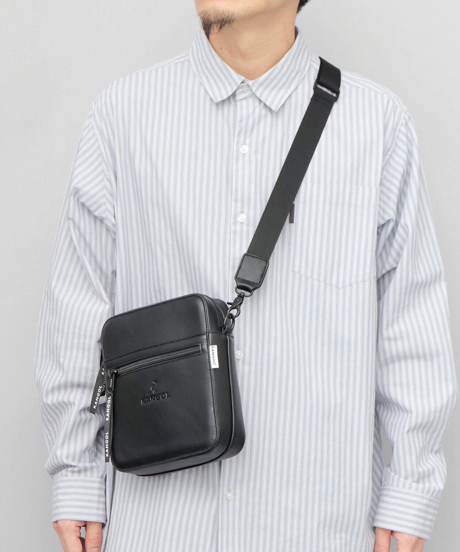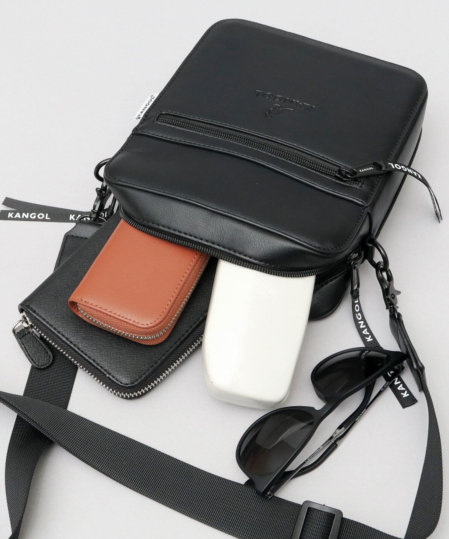 DYS-191 KANGOL カンゴール ショルダーバッグ メンズ レディース レザー調 合皮 スクエア ボックス型 小さめ 斜めがけ 肩掛け 大人 シンプル ブラック