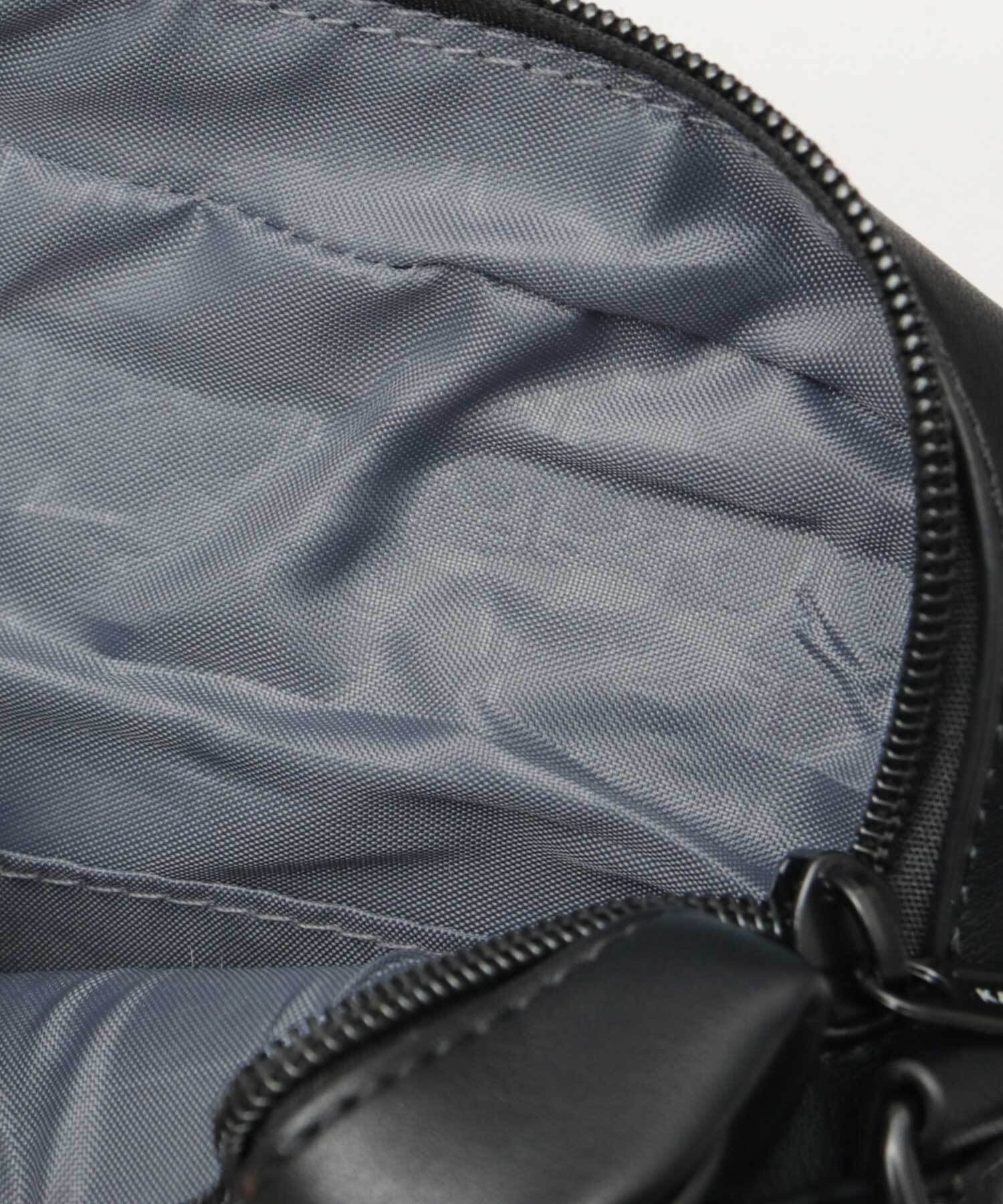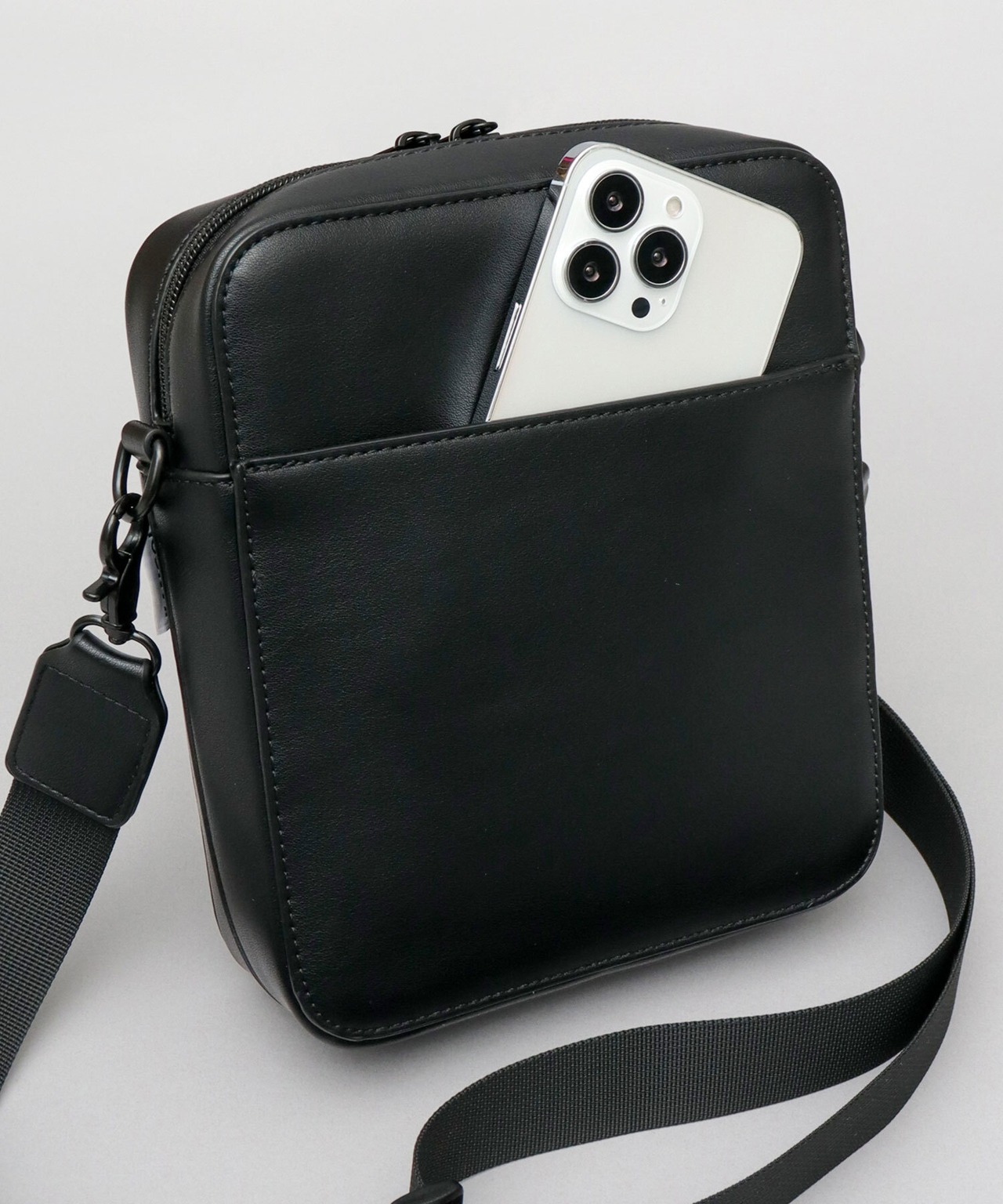 非常に柔らかく、程よい艶感の合成皮革を使用。カジュアルになりがちなショルダーバッグを落ち着いた大人な雰囲気にアップデート。