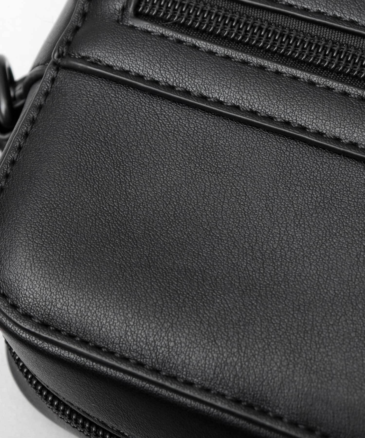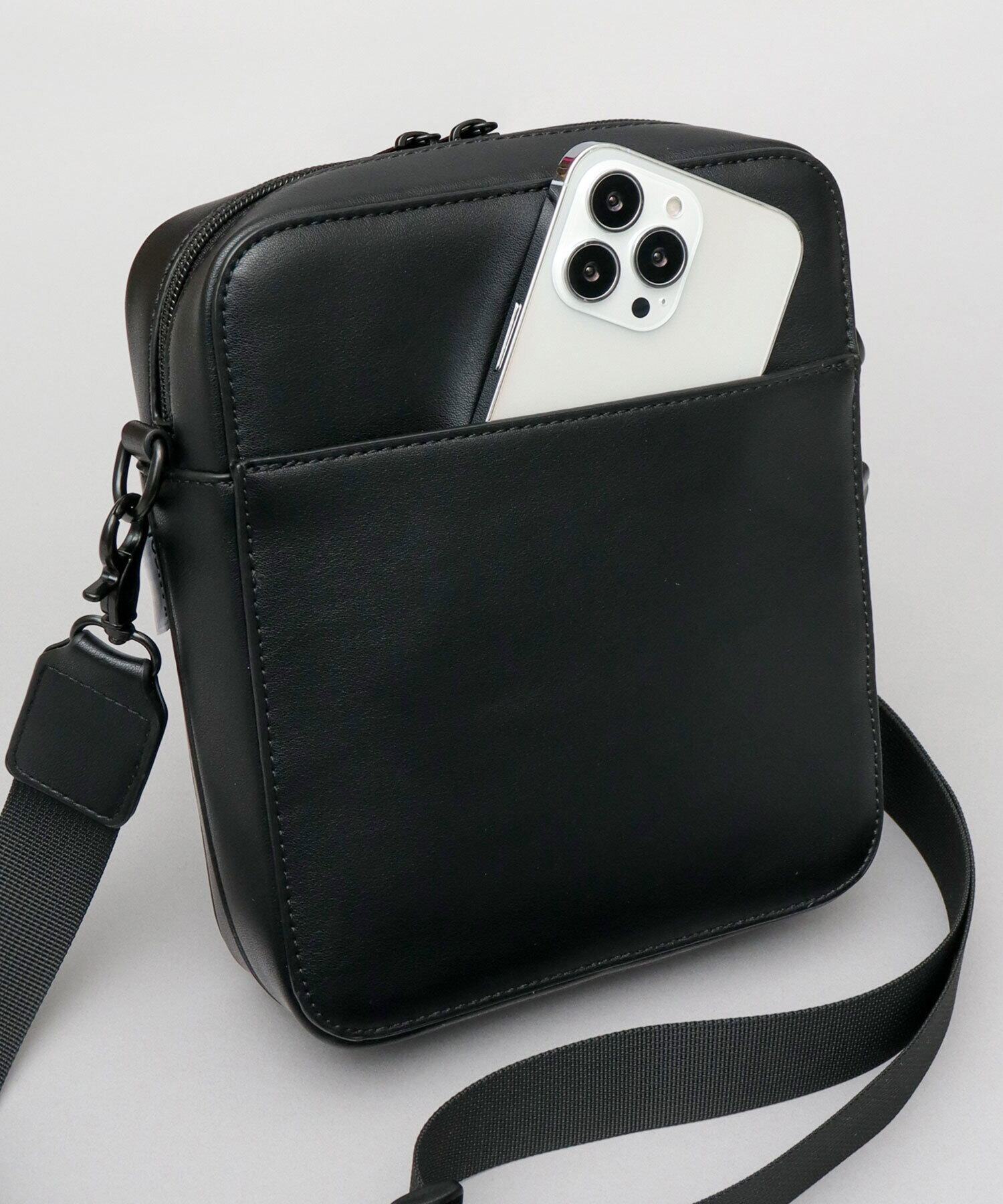 かっちりとしたボックスシルエットに、程よい艶感の合成皮革が大人っぽい雰囲気です。コンパクトな見た目ですが、お財布やスマホ、モバイルバッテリーなど普段使いするアイテムはしっかり収納可能です。バッグに芯地が入っているので、荷物を入れてもバッグのシルエットをしっかりキープしてくれます。バッグ内外に複数のポケットがあるのも便利。ミニマルなデザインでスタイリングを選ばず、ユニセックスで使用可能です。プレゼントにもおすすめ。