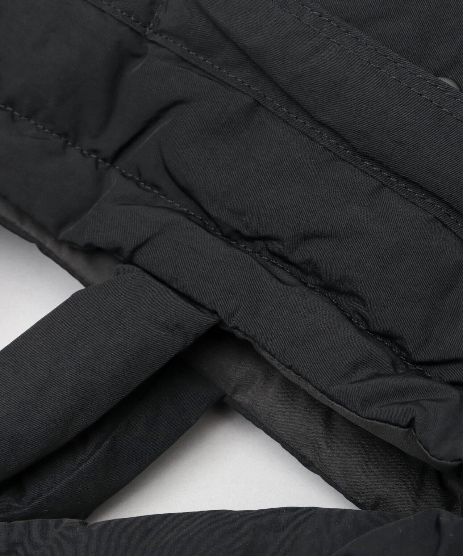 素材は、程よく中綿を詰めたナイロンパデッド生地を使用。シャリ感のあるナイロンを使用することで、パデッド生地でありながらも通年使える表情に。撥水加工を施しているので、急な雨、水濡れにも安心です。圧倒的な軽量性もポイント。