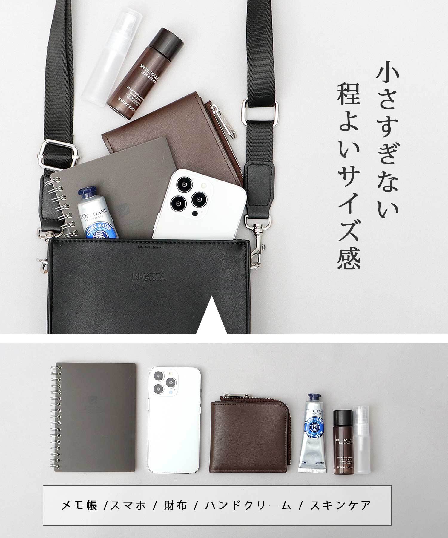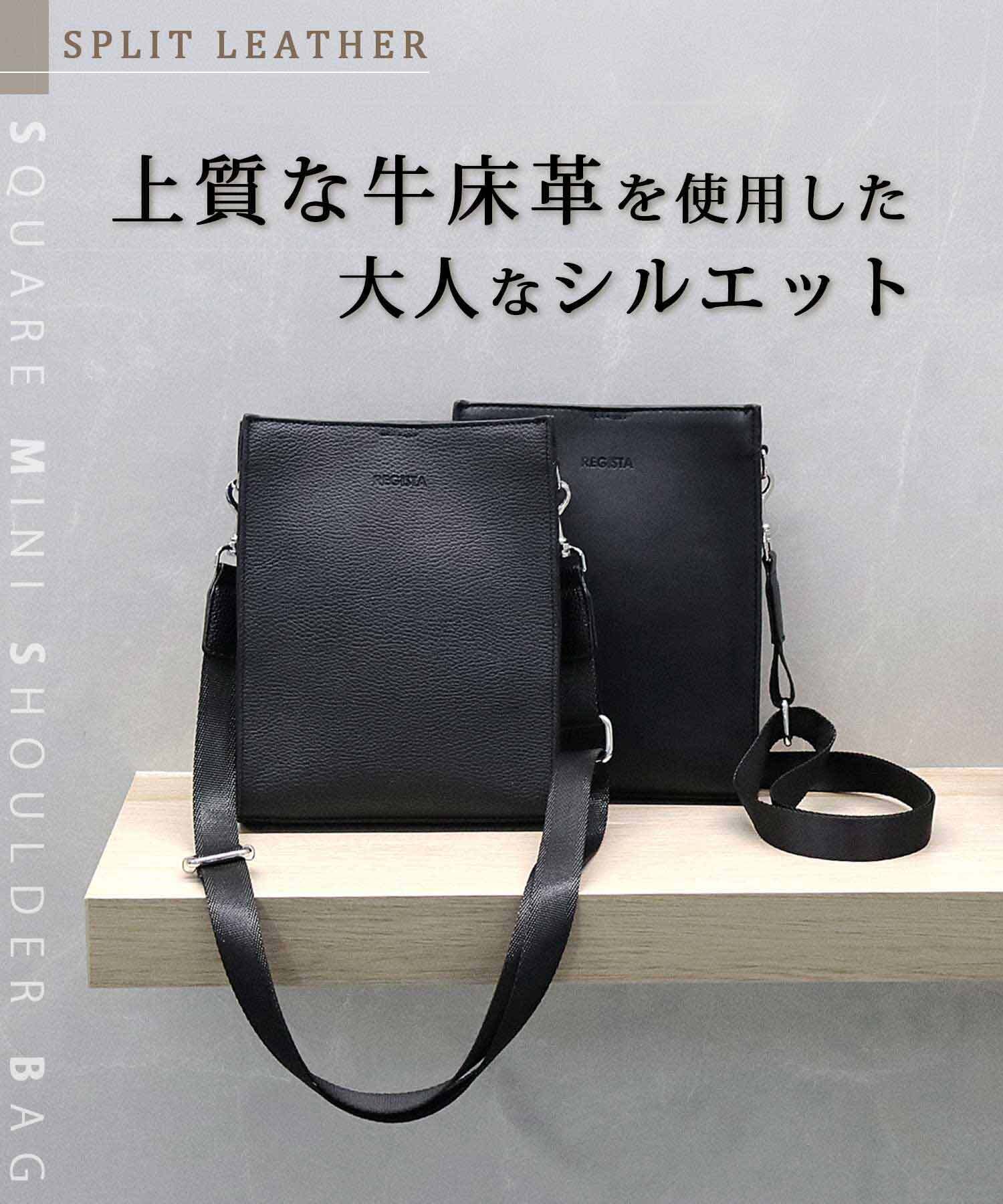 7030 ショルダーバッグ スクエア メンズ レディース ミニショルダー ミニバッグ レザー 牛床革 縦型 小さめ コンパクト 斜めがけ 無地 シンプル 大人 レジスタ REGiSTA