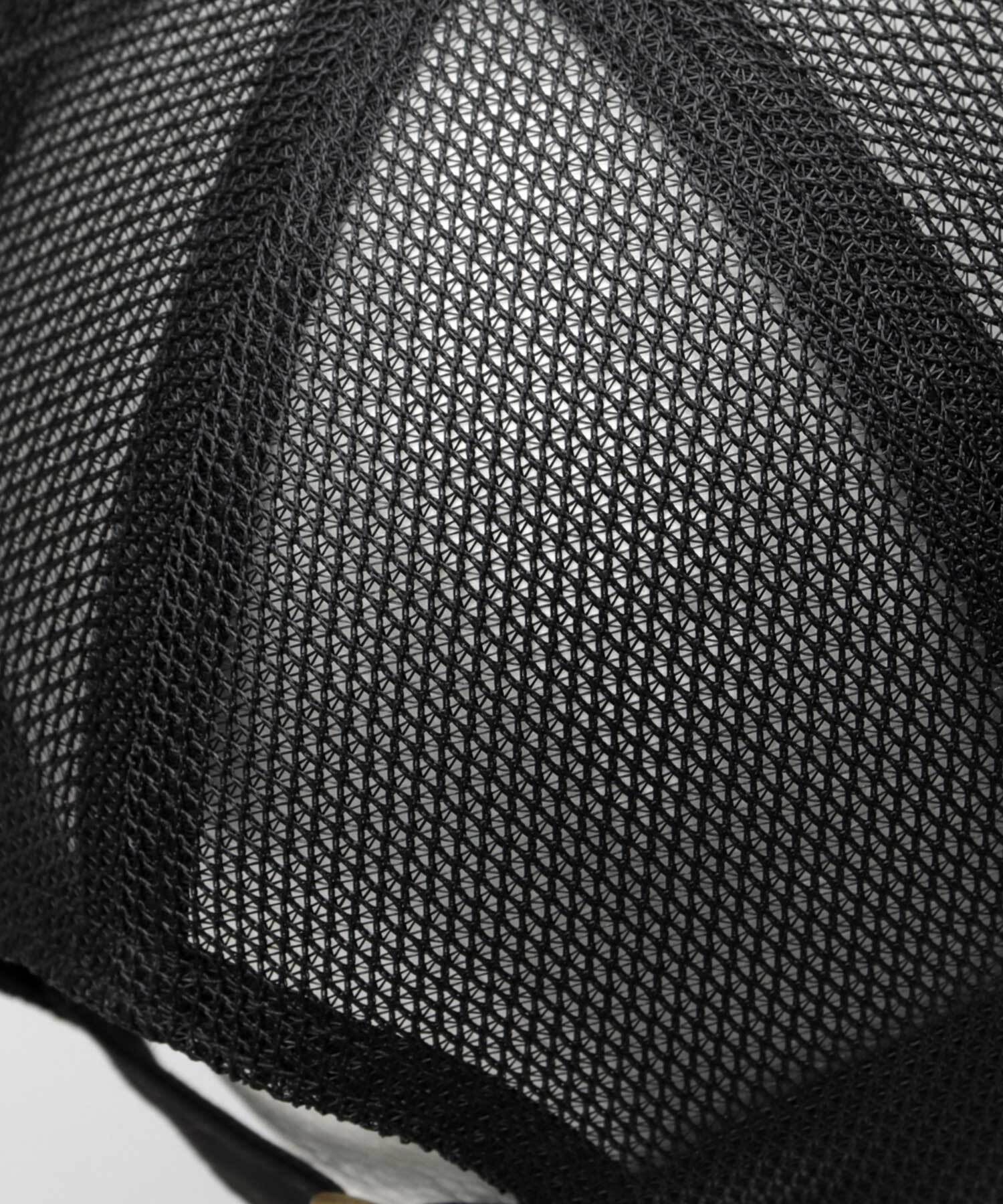 クラウンのフロントパネル以外には、通気性に優れたメッシュ素材を使用。2種類のメッシュ素材を貼り合わせることで透け感を抑え、カジュアルになりすぎず上品な表情に。