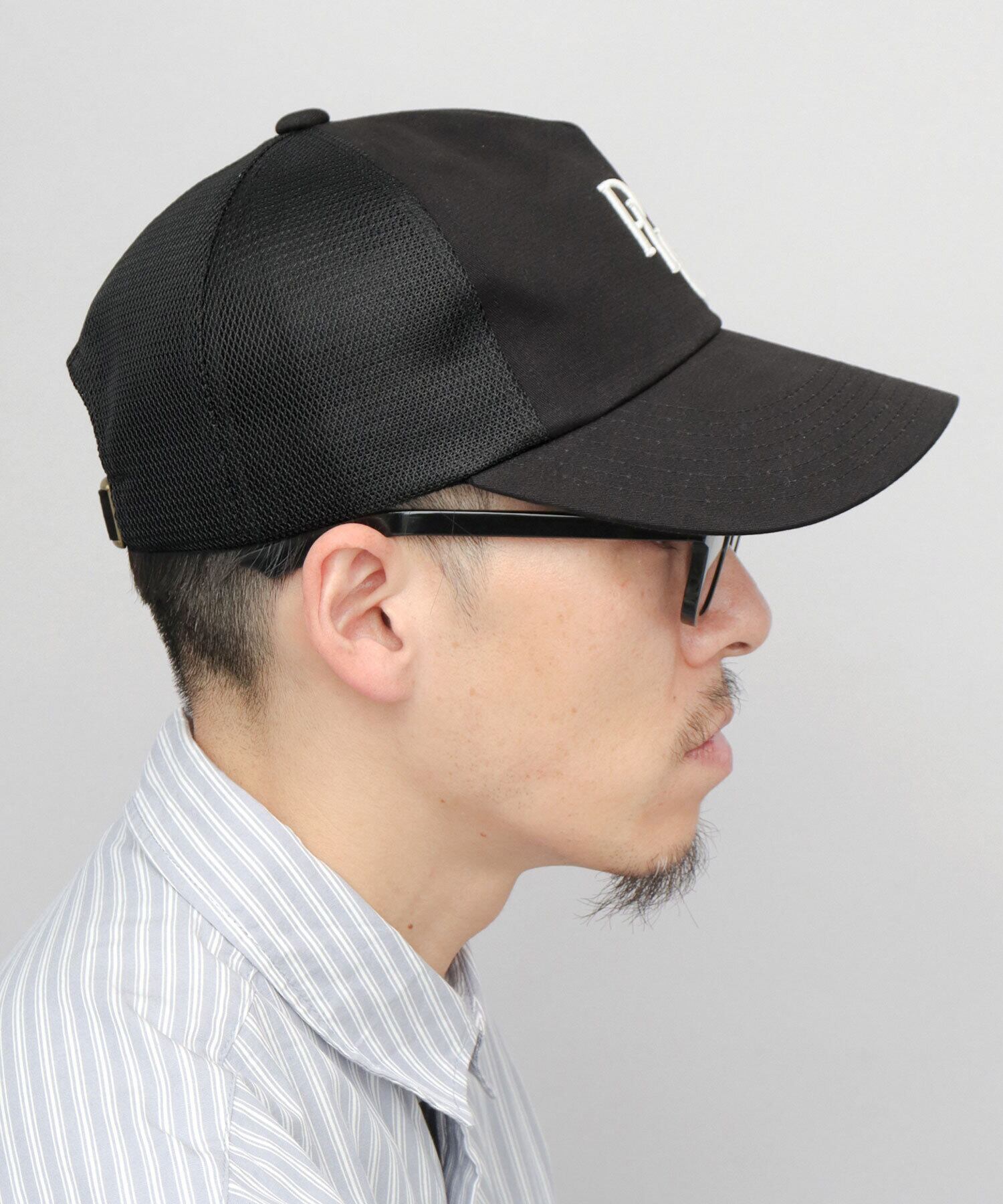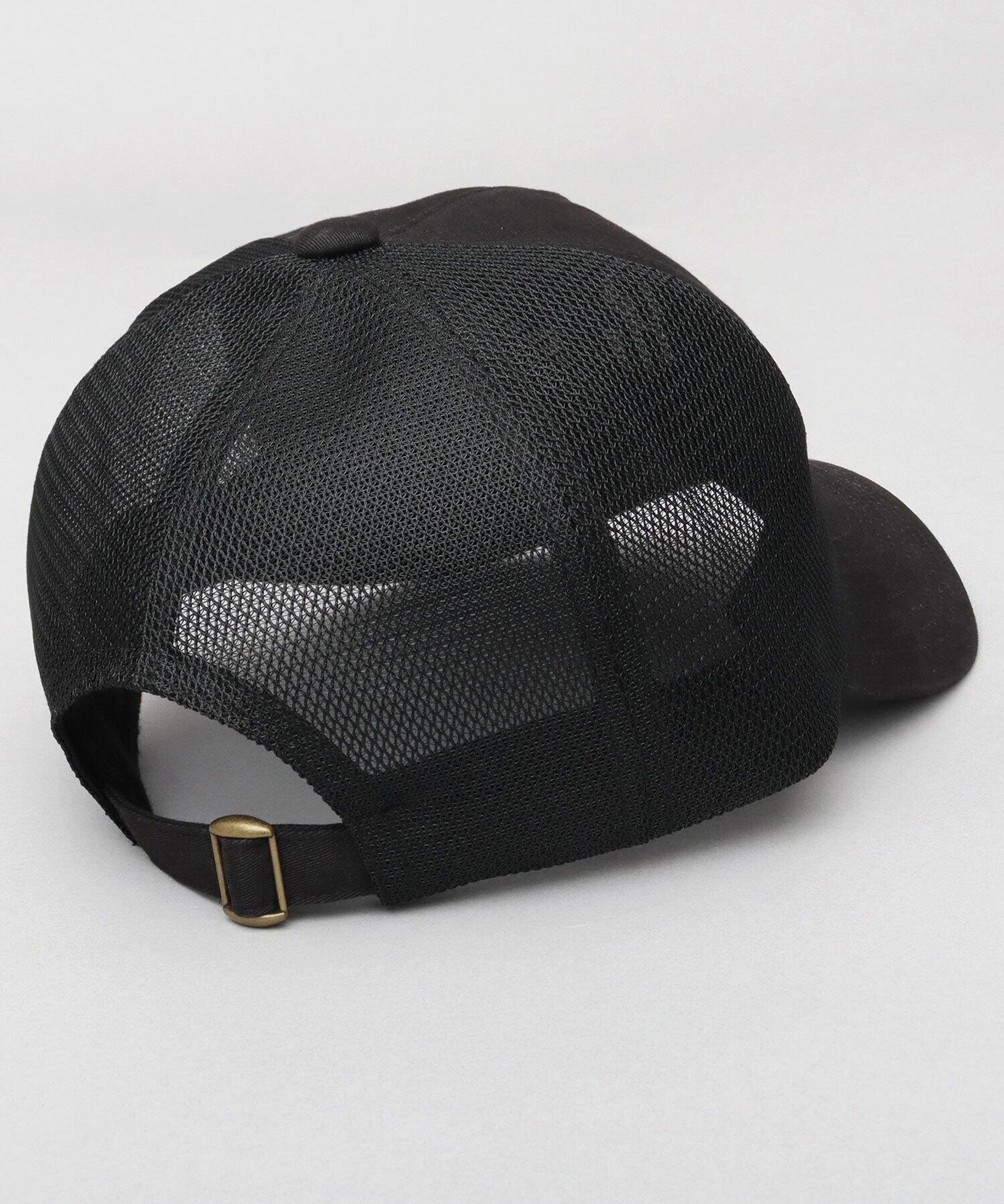 長く、幅広なブリムを採用した新感覚のメッシュキャップ。素材使いを上品にまとめた大人な雰囲気。