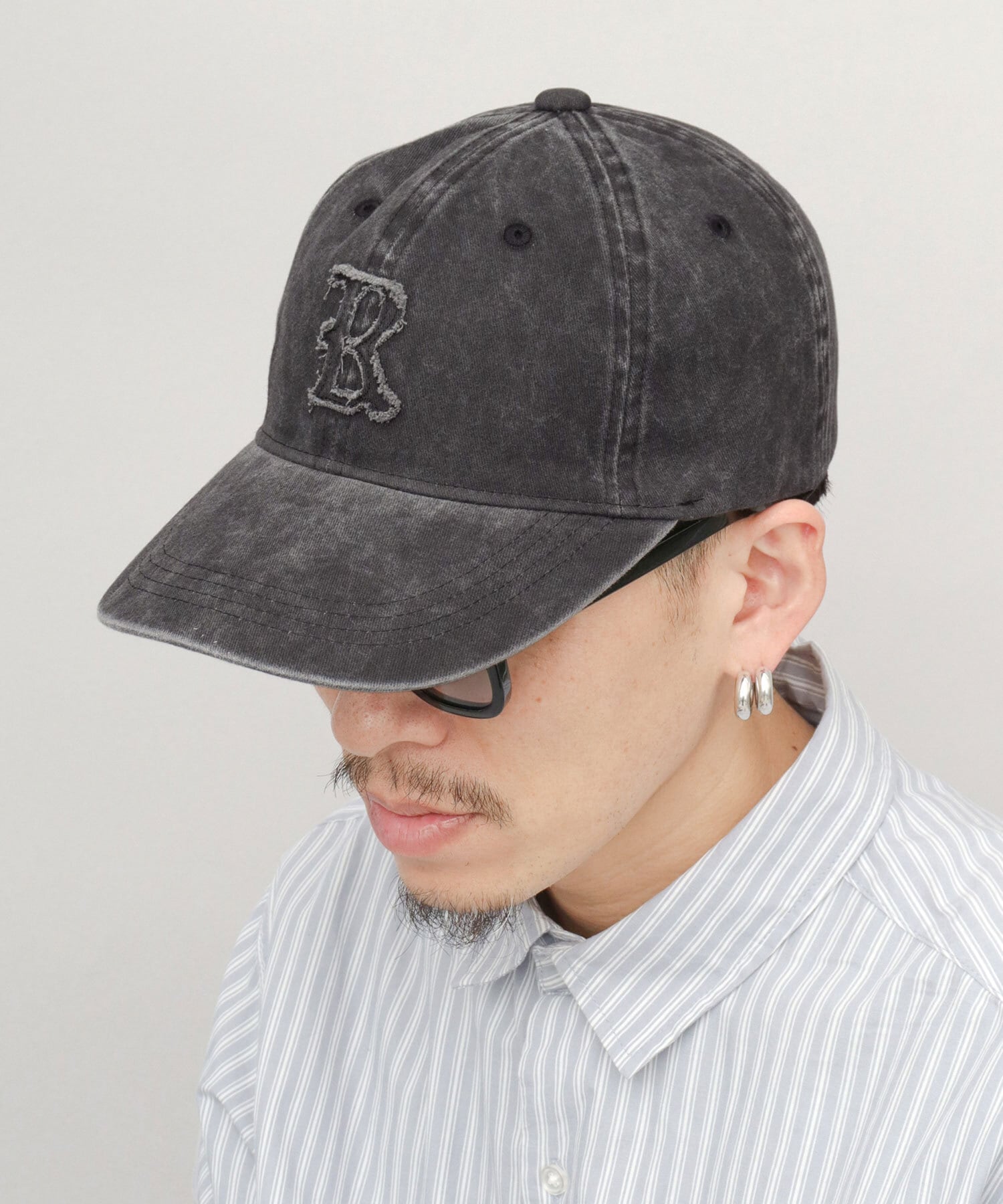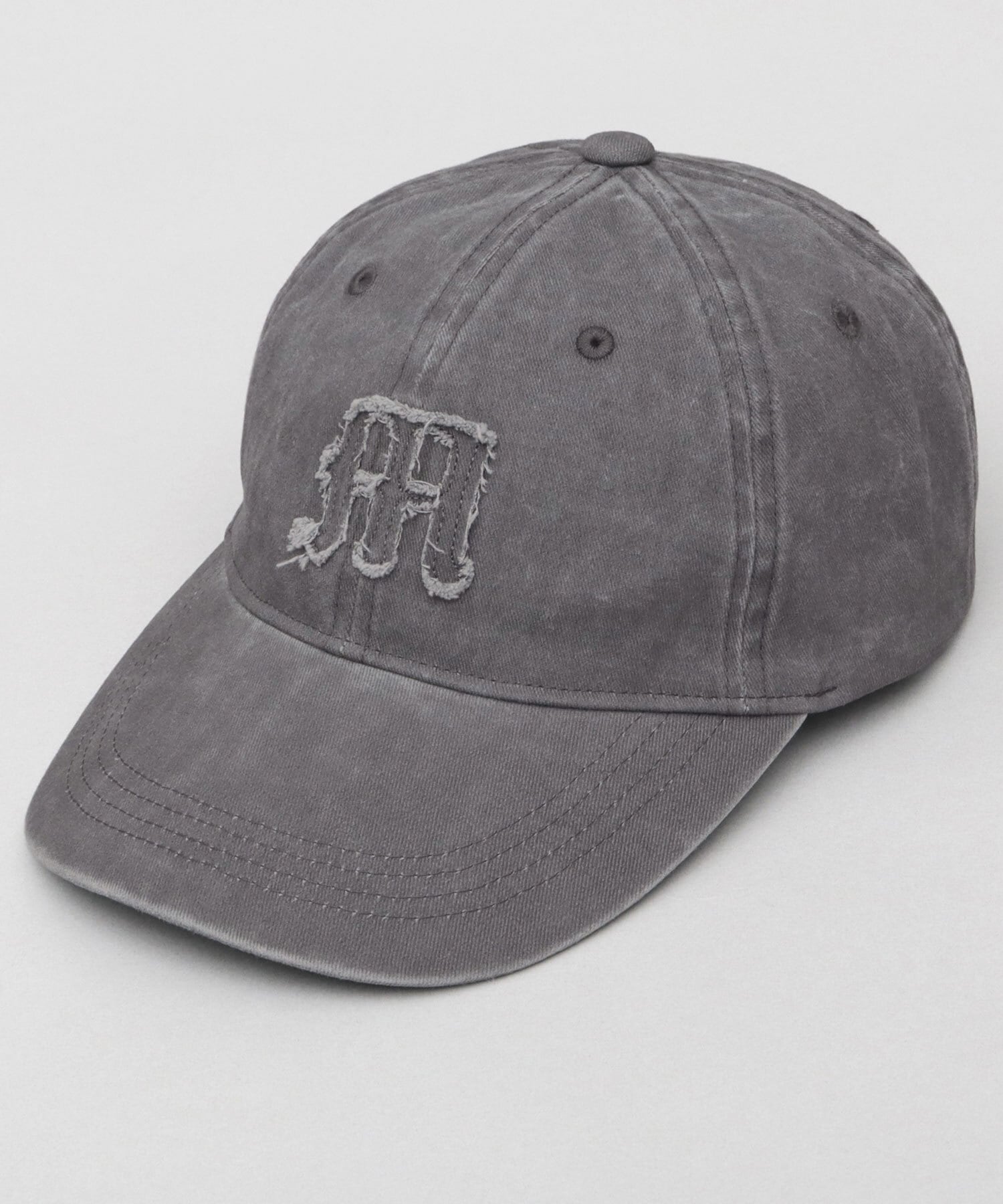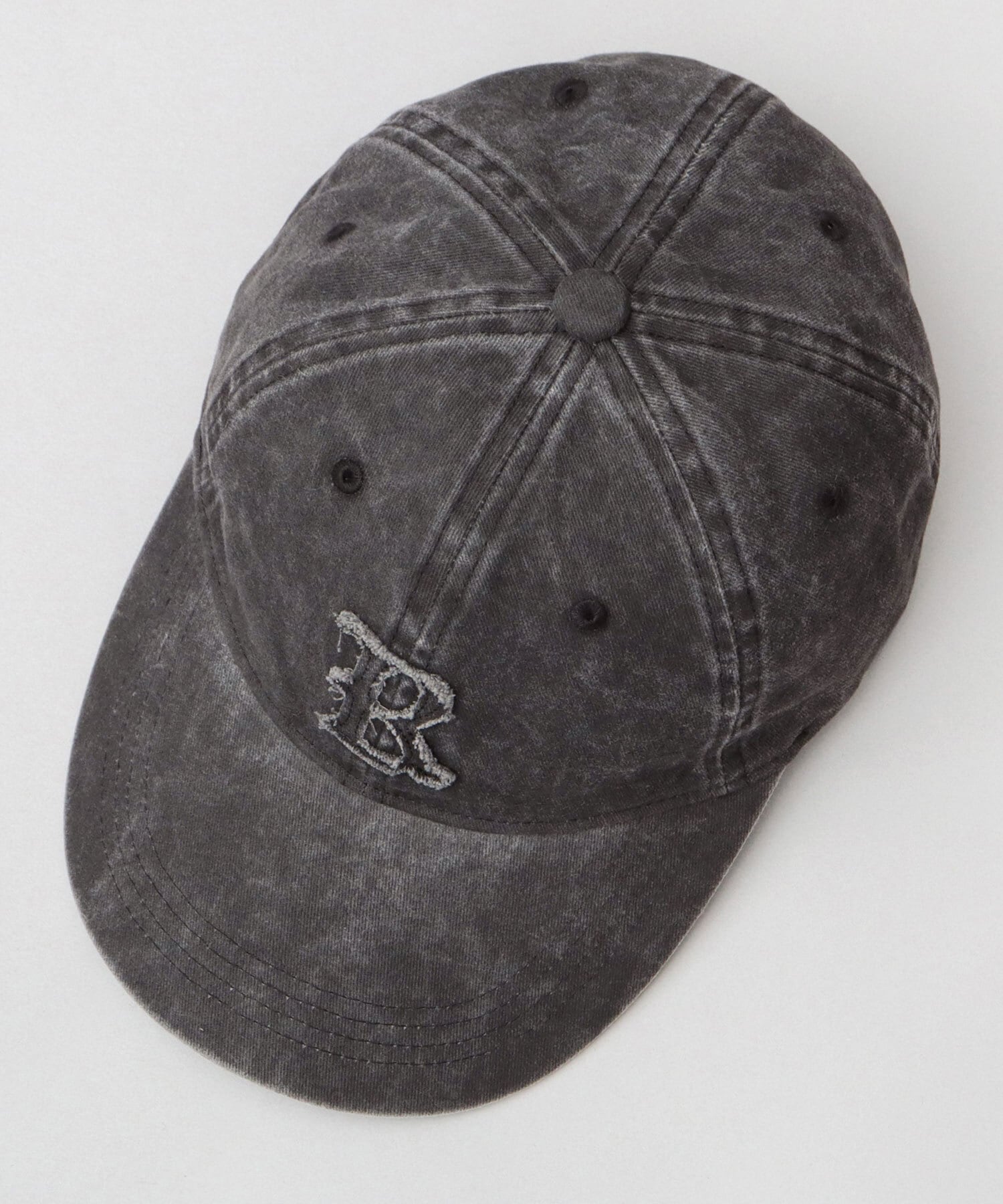 ヴィンテージライクな色ムラと風合いが特徴のピグメント加工素材を使用したベースボールキャップ。フロントには、ダメージ加工を施したオールドイングリッシュフォントのアップリケを配置。全体のフェード感が、被るだけでこなれた印象を演出してくれます。程よい深さのクラウンに、やや長めのカーブバイザーを採用し、顔周りをさりげなくカバー。バランスの取れた、被りやすいシルエットです。素材は綿100%のツイル素材を使用し、季節を問わずオールシーズン活躍するアイテムです。