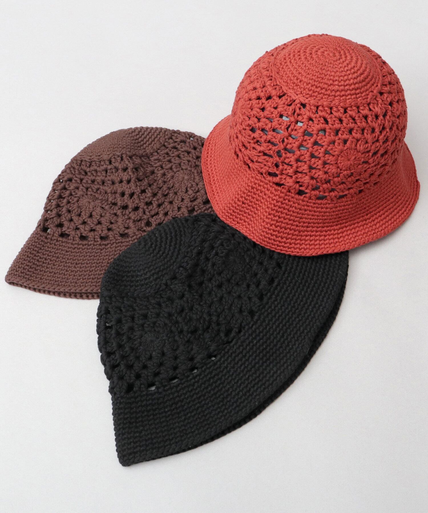 RVU-159 クロシェハット ニットハット 透かし編み 春夏 バケットハット 通気性 涼しい 綿100% 折りたたみ メンズ レディース ユニセックス 帽子