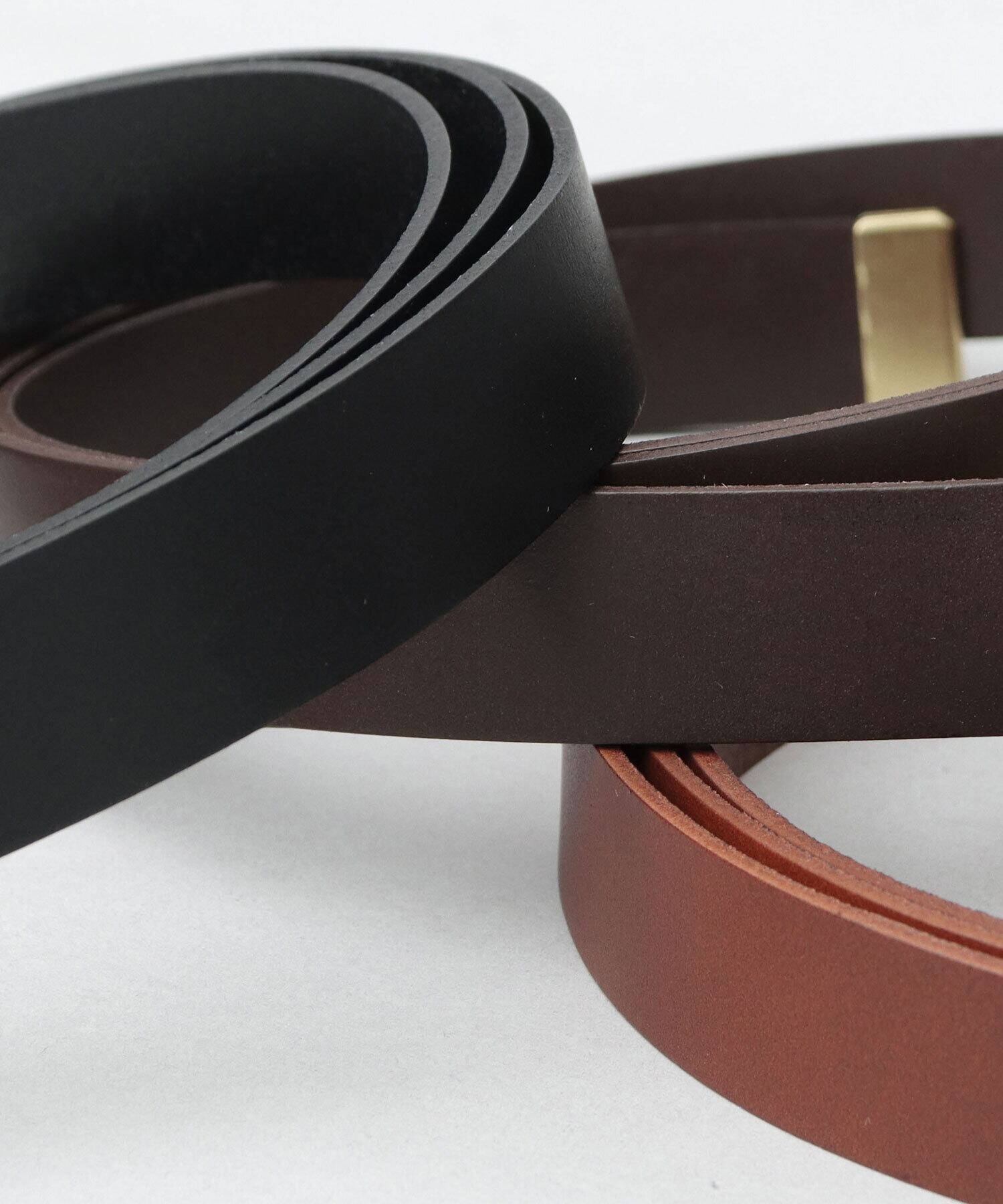 バックル、剣先にはアンティークゴールドを採用。加工による使い古したような、こなれた雰囲気もポイント。