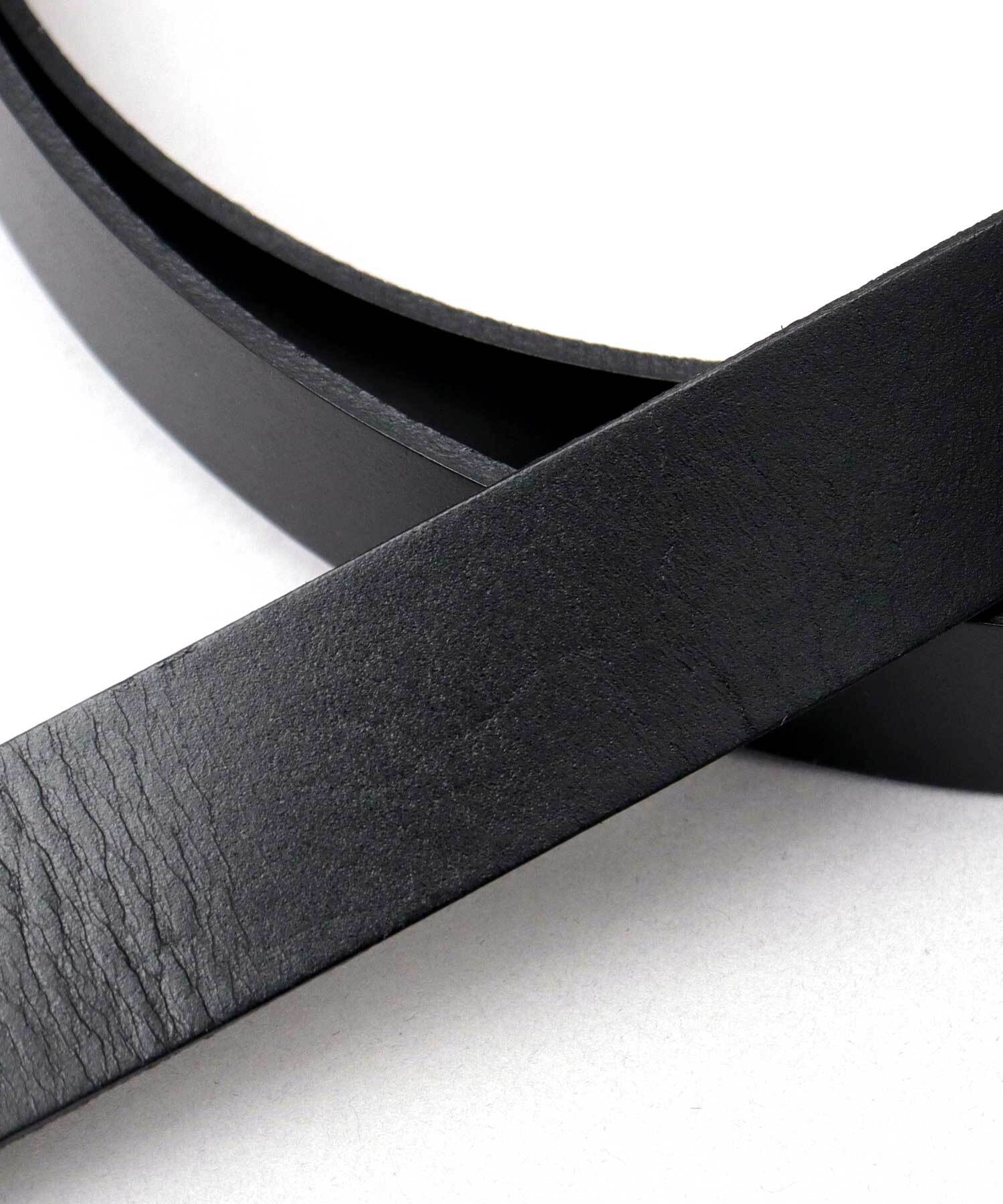 新品の状態は、硬くしなやかさはございません。使い込む程、ベルト裏面の表面のすり減りと、表面の馴染で、くったり柔らかな質感に育ちます。