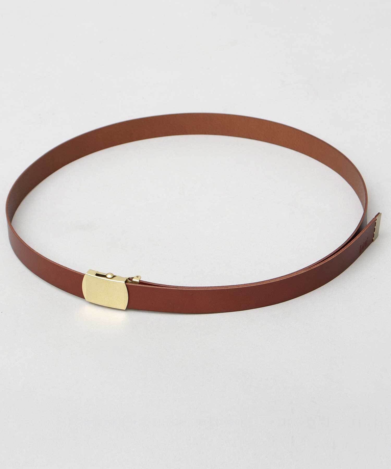 アメリカ発の老舗ジーンズメーカー「Lee(リー)」のレザーナローガチャベルト。牛革帯に、アンティークゴールドのバックルと剣先を合わせ、大人仕様の落ち着いたガチャベルトに。ベルト帯は、肉厚なスムースレザーを使用。使い込む程に馴染み、しなやかな風合いへの変化が楽しめます。約2.5cmとやや細めのベルト幅は、カジュアルスタイルにはもちろん、キレイめなスタイリングとも高相性。剣先を垂らしたスタイリングができるように、ベルトは長めに設計されています。