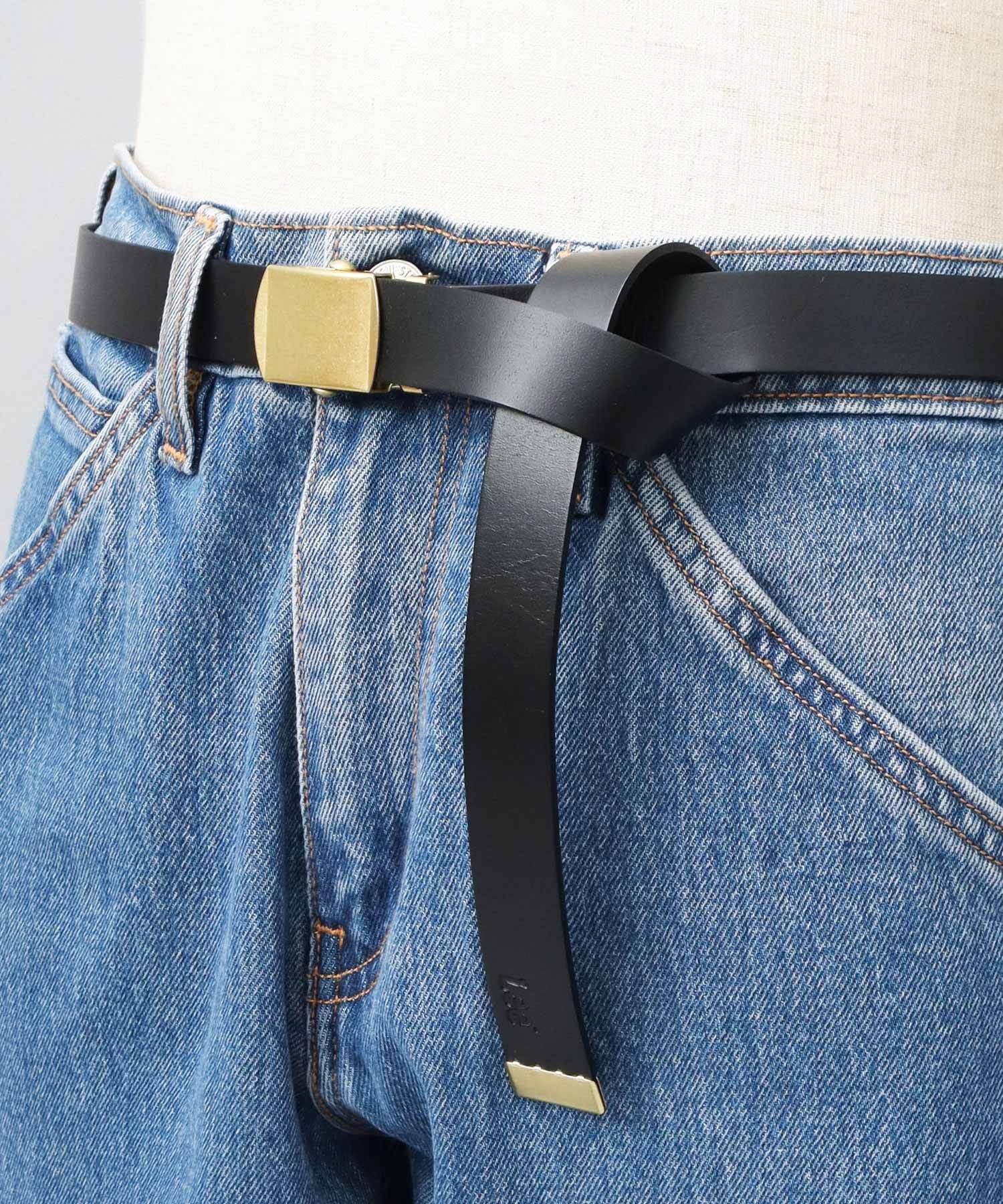 ベルト部分は垂らして使えるように長めの設計。剣先に施された「Lee」ブランドロゴの刻印がさりげないポイント。