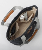 ハンドル部分は、本体と同素材の生地を使用。持ちやすさ、握りやすさを考慮し、姫路レザーの握り革を配置。程よい厚みで、手や肘に食い込みにくい仕様。