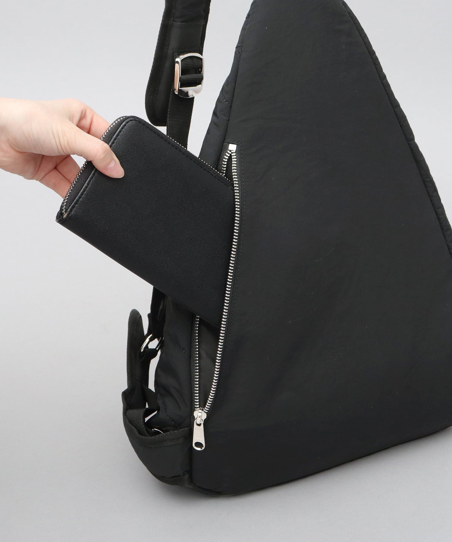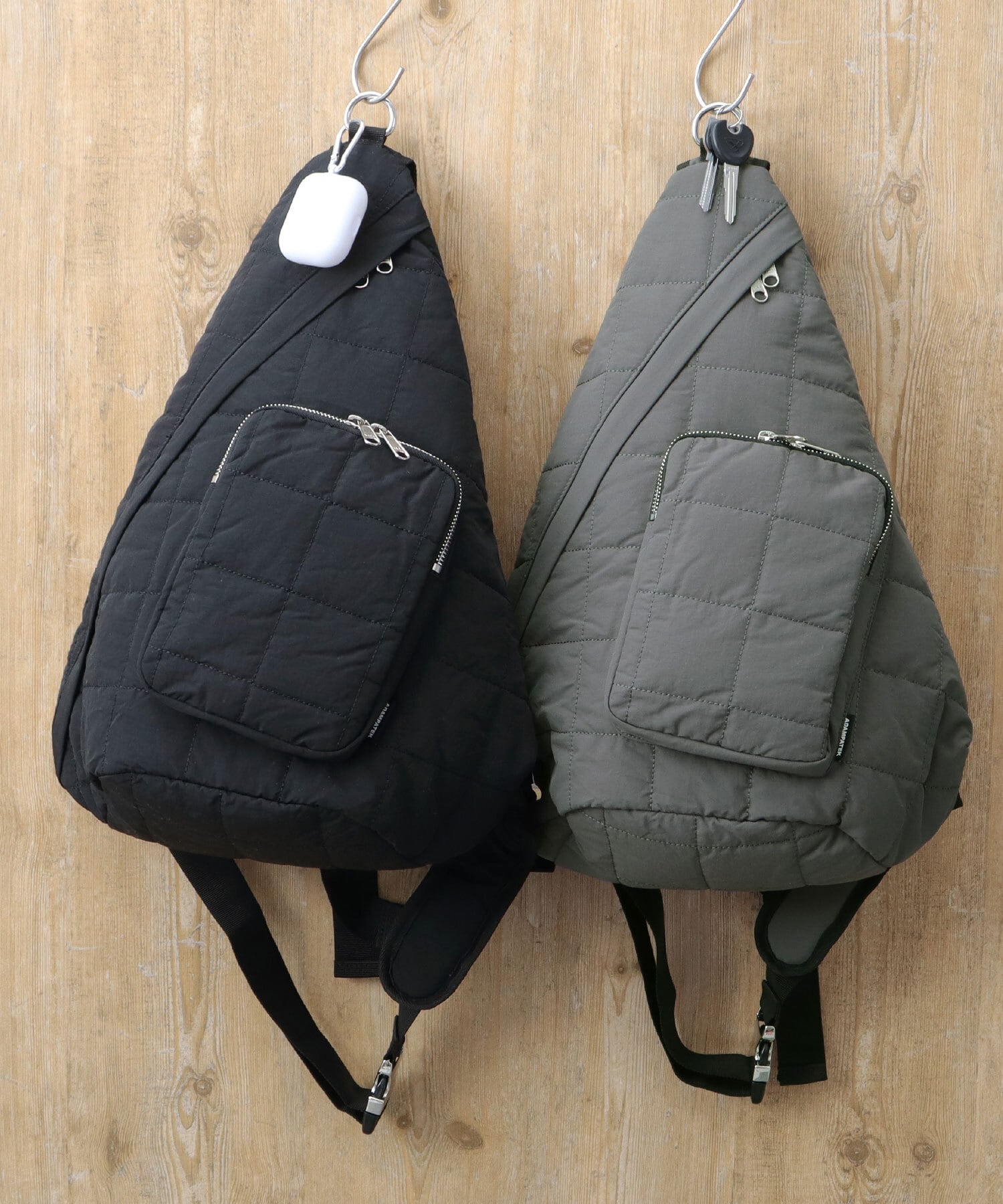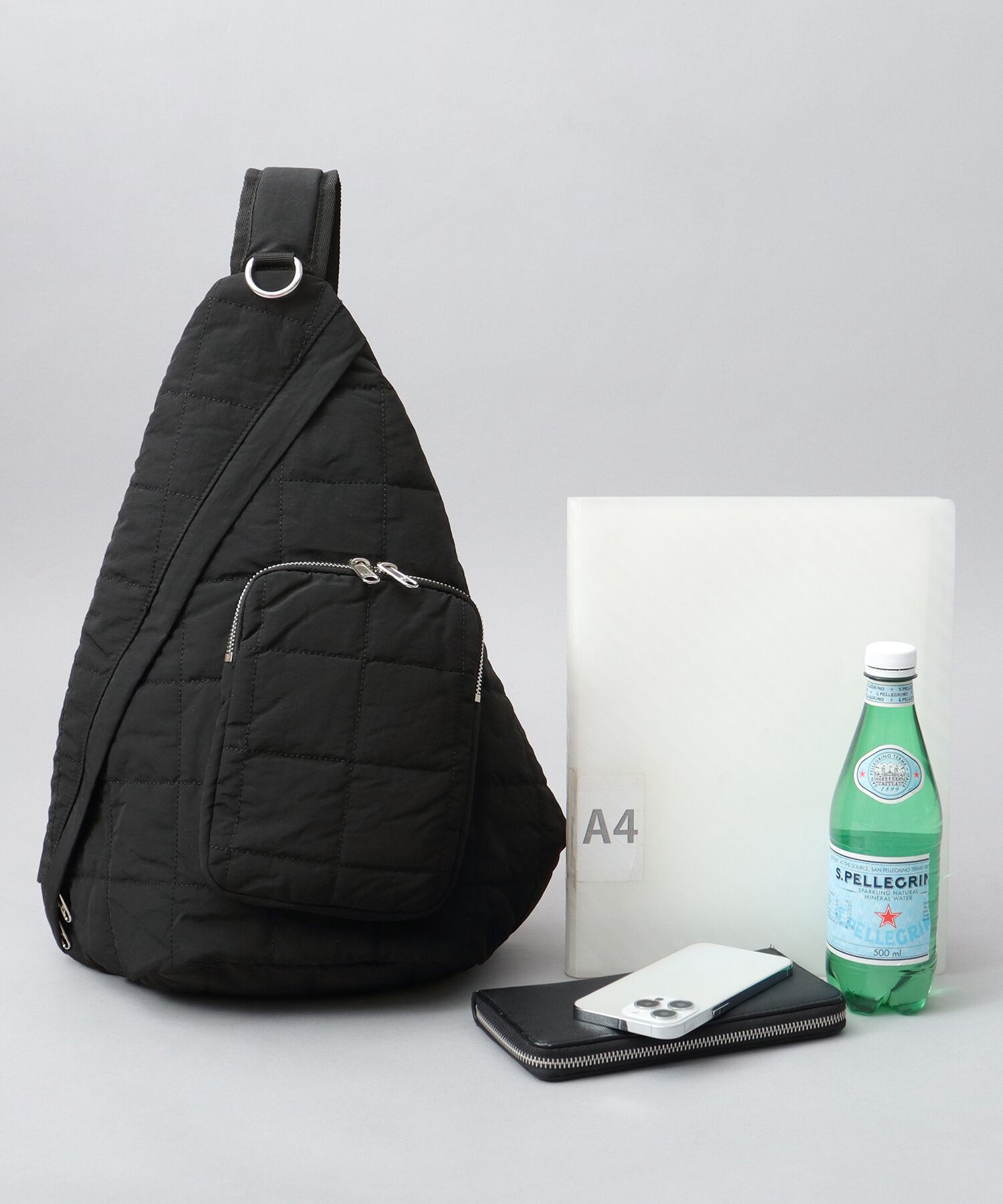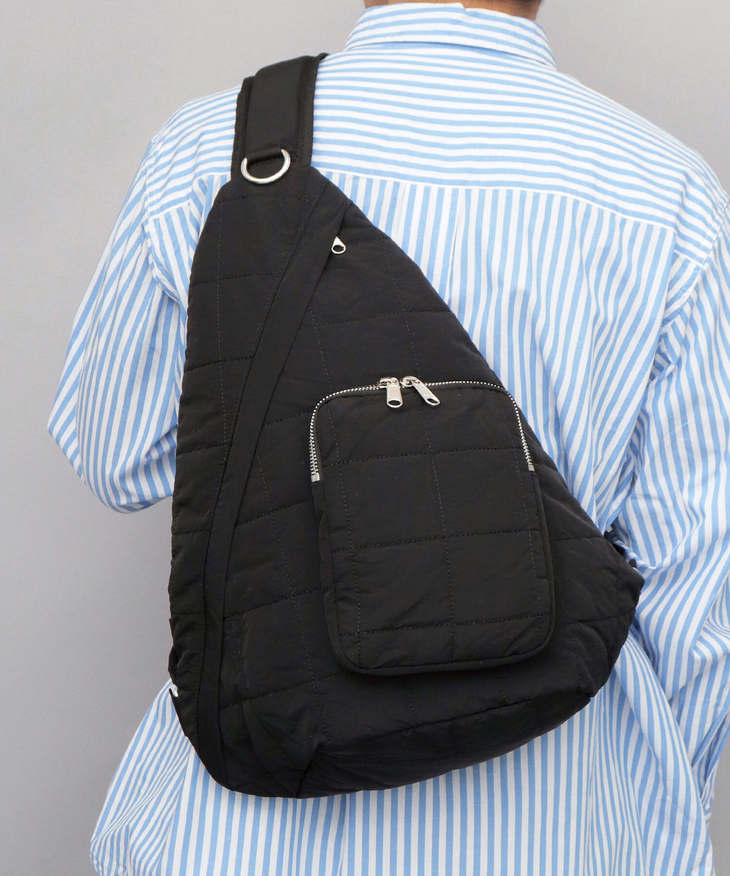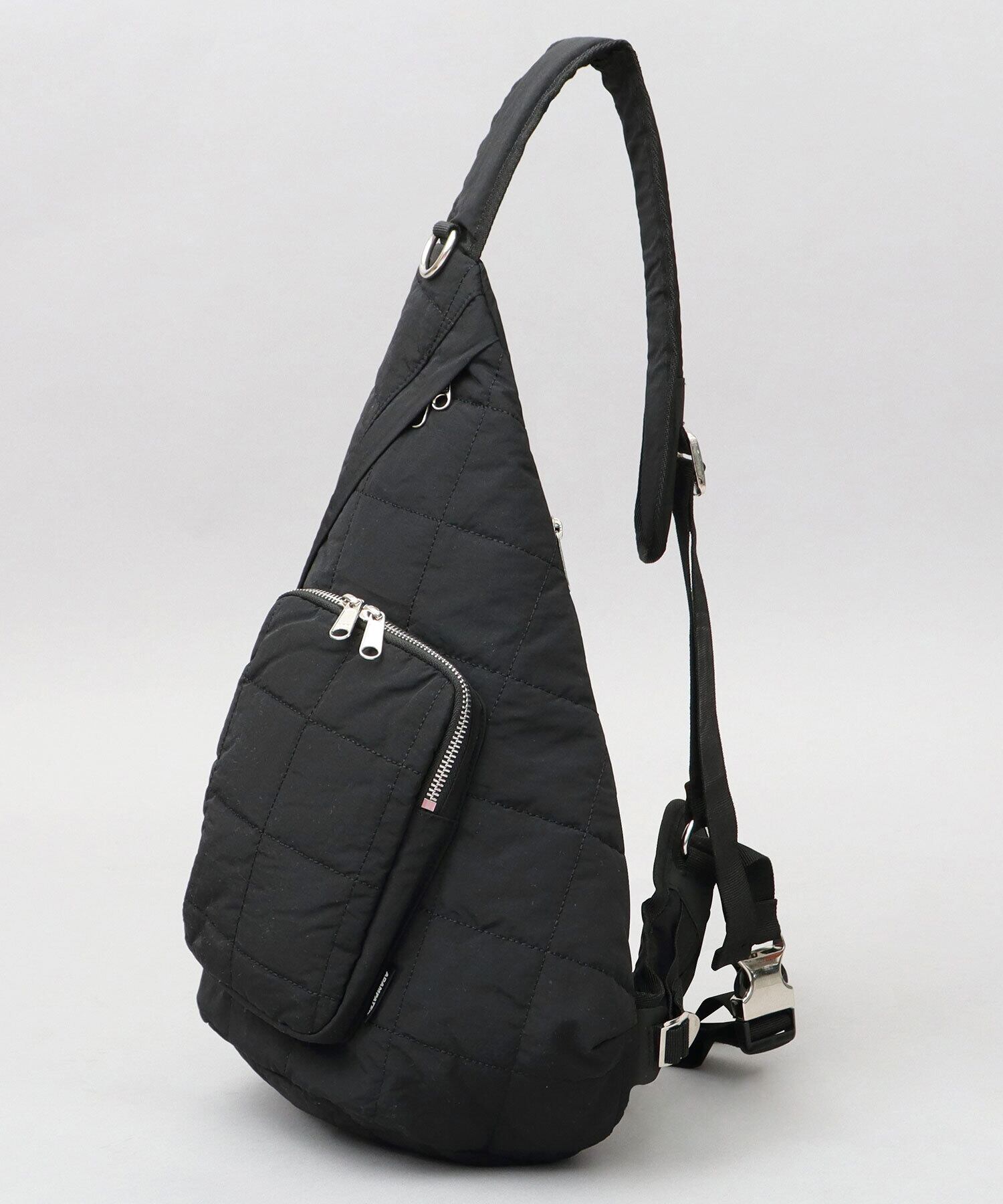 ふっくら立体感のあるキルティング生地を使用したスリングバッグ。体にフィットする形状で、スリングして荷物を取り出しやすく、フロント掛けもしやすい