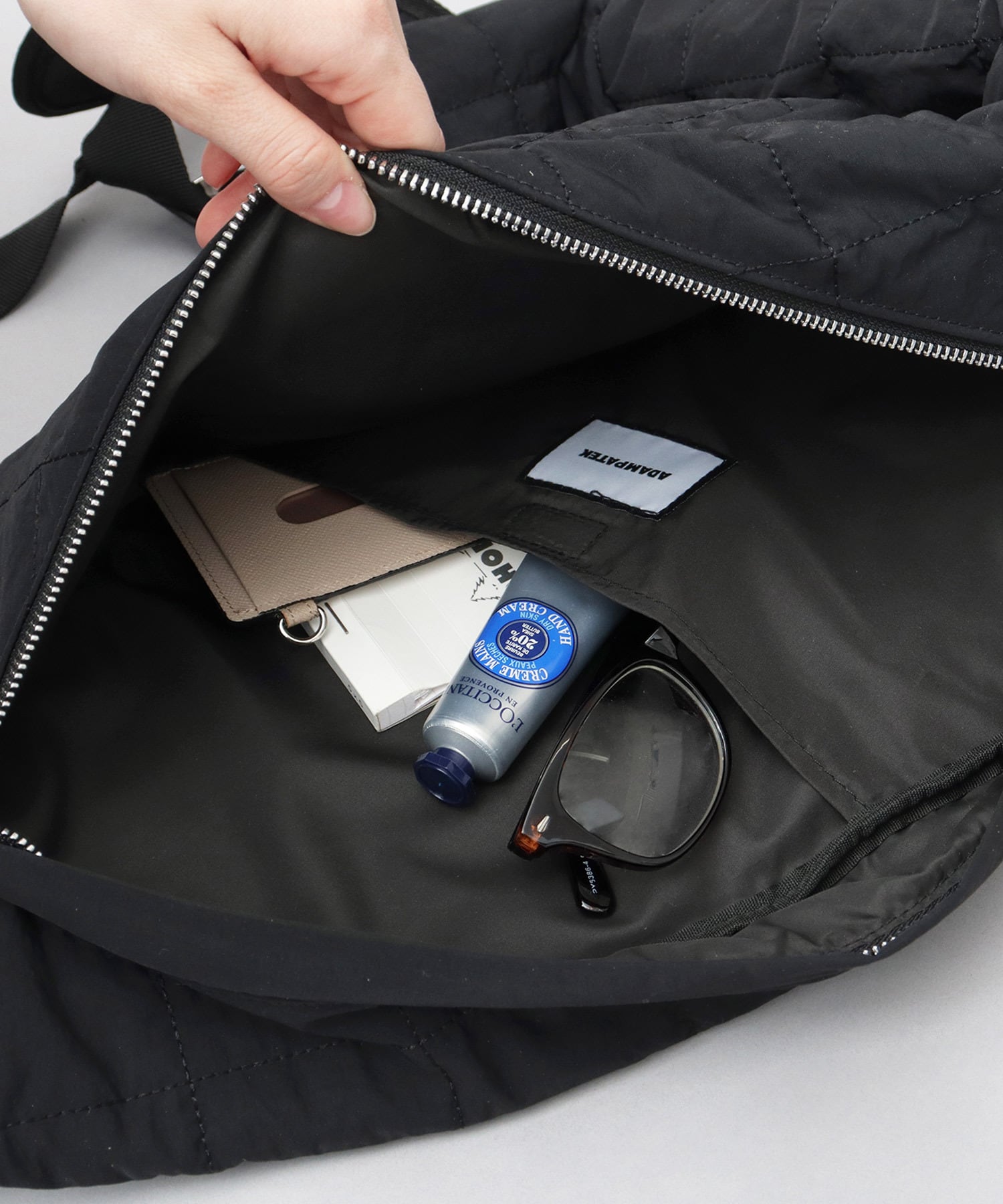 柔軟な発想による、ニューベーシックなデザインが特徴のブランド“ADAM PATEK(アダム パテック)”のワンショルダーバッグ。定番のスクエアキルト生地は、シャリ感のあるナイロンを使用した、通年使える表情と、圧倒的な軽量性がポイント。収納スペースは、A4サイズがぴったり収まるサイズ感。しっかり底マチもあるので、幅のある荷物も収納可能で普段使いにぴったり。縦長でスマートに使かえる外ポケットや、バッグ背面に配置したセキュリティポケット、撥水加工された素材使いなど、デザイン性と実用性を兼ね備えた仕上がりも魅力。