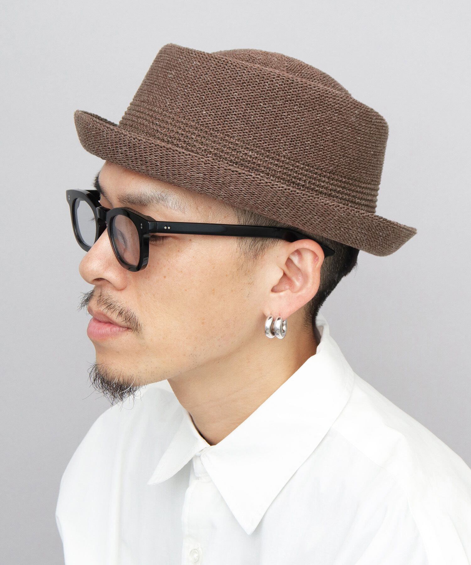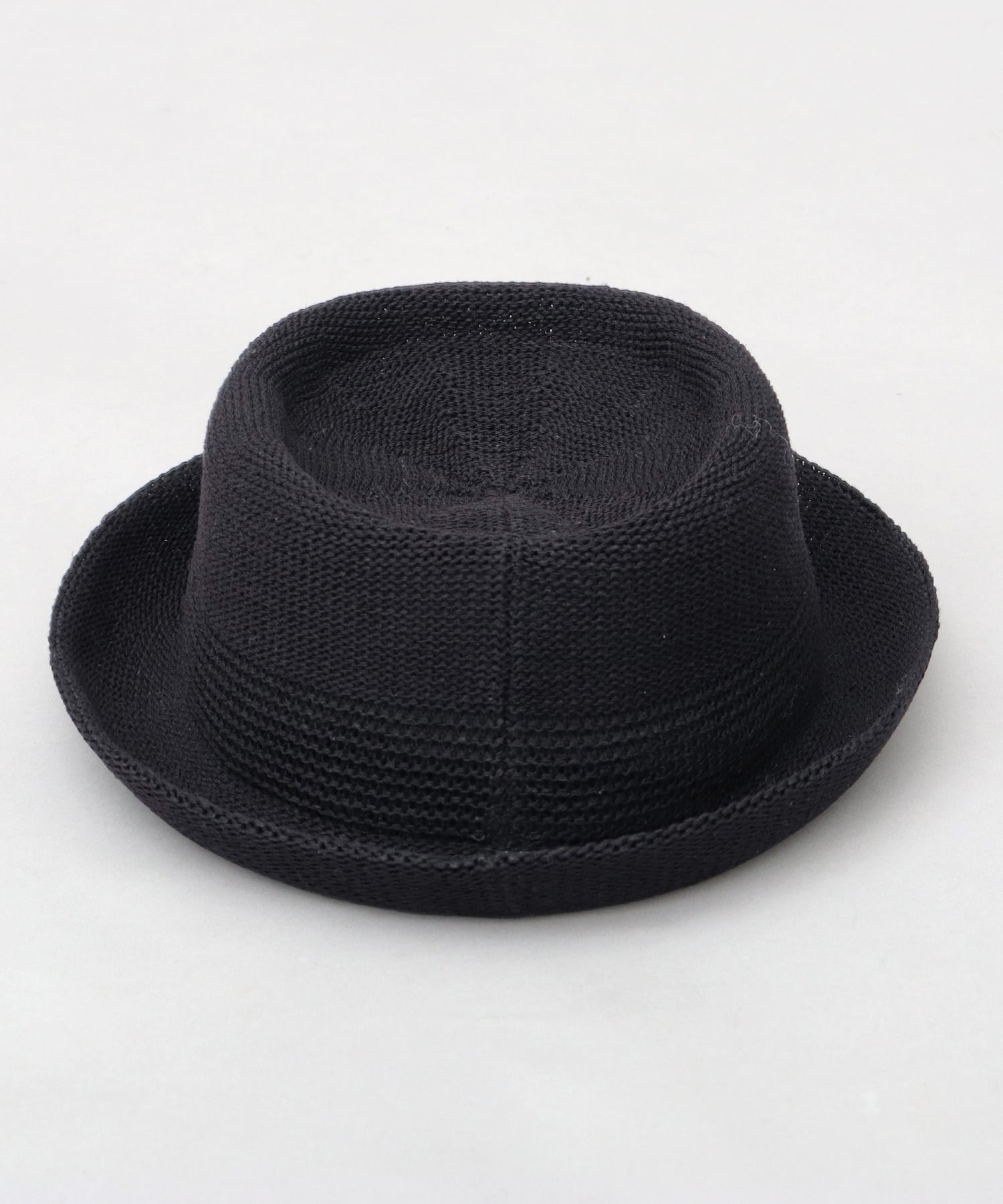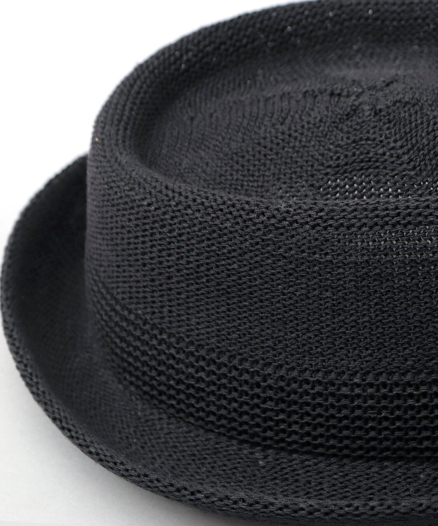 トップが縁を残して一周くぼんだ独特なクラウン形状に、お皿の淵のように少し上向きのブリムを合わせたシルエットが特徴のポークパイハット。腰部分の編み柄を切り替えたデザインにより、全体を引き締め、すっきりとした印象に仕上げています。素材には、柔らかさと形状安定性を兼ね備えた麻混サーモ糸を使用。サーモ成形ならではの美しい立体感と、軽やかで通気性の良い被り心地を両立しています。シンプルながら表情のあるデザインで、春夏のスタイリングに上品なアクセントをプラスしてくれるアイテムです。