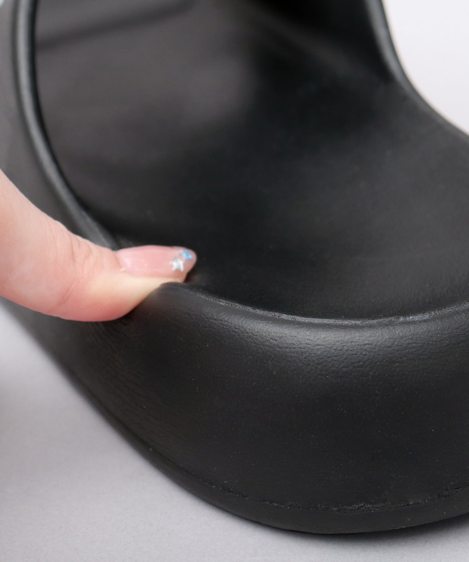 クッション性のある、もちもち素材を採用。足裏にやさしくフィットし、長時間履いても疲れにくい仕様です。