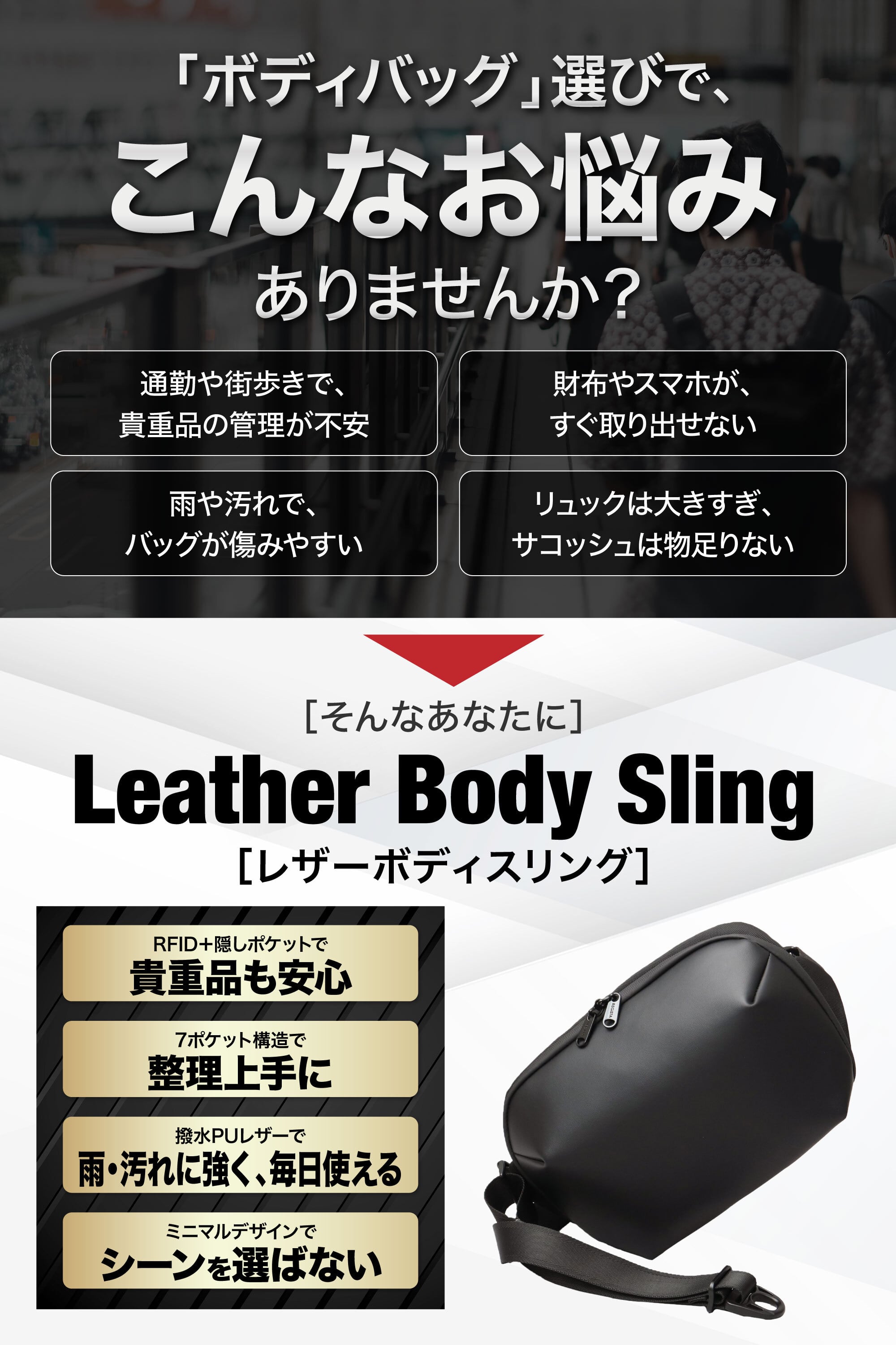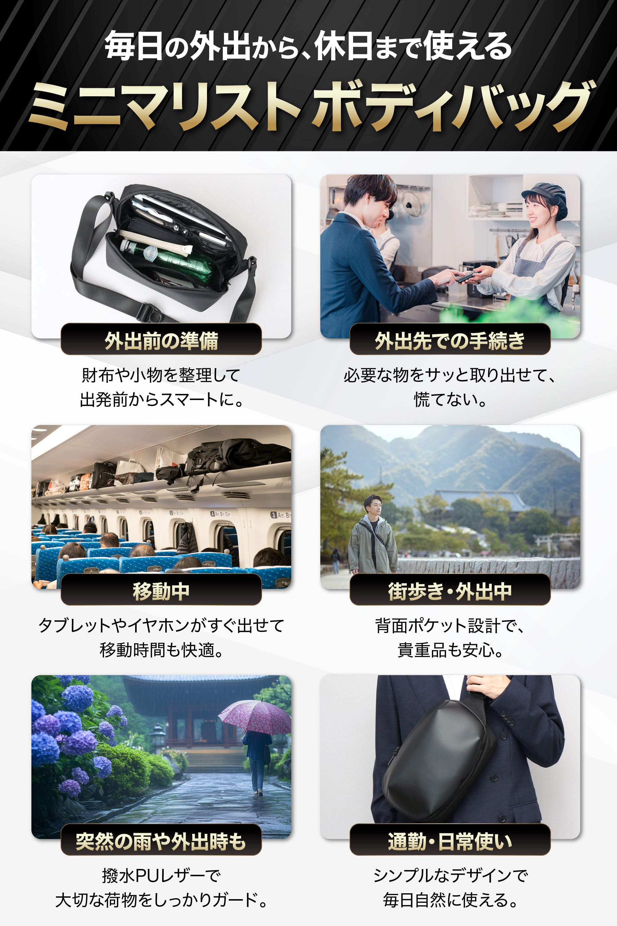 毎日の外出を、この1つでスマートにまとめるボディバッグ。