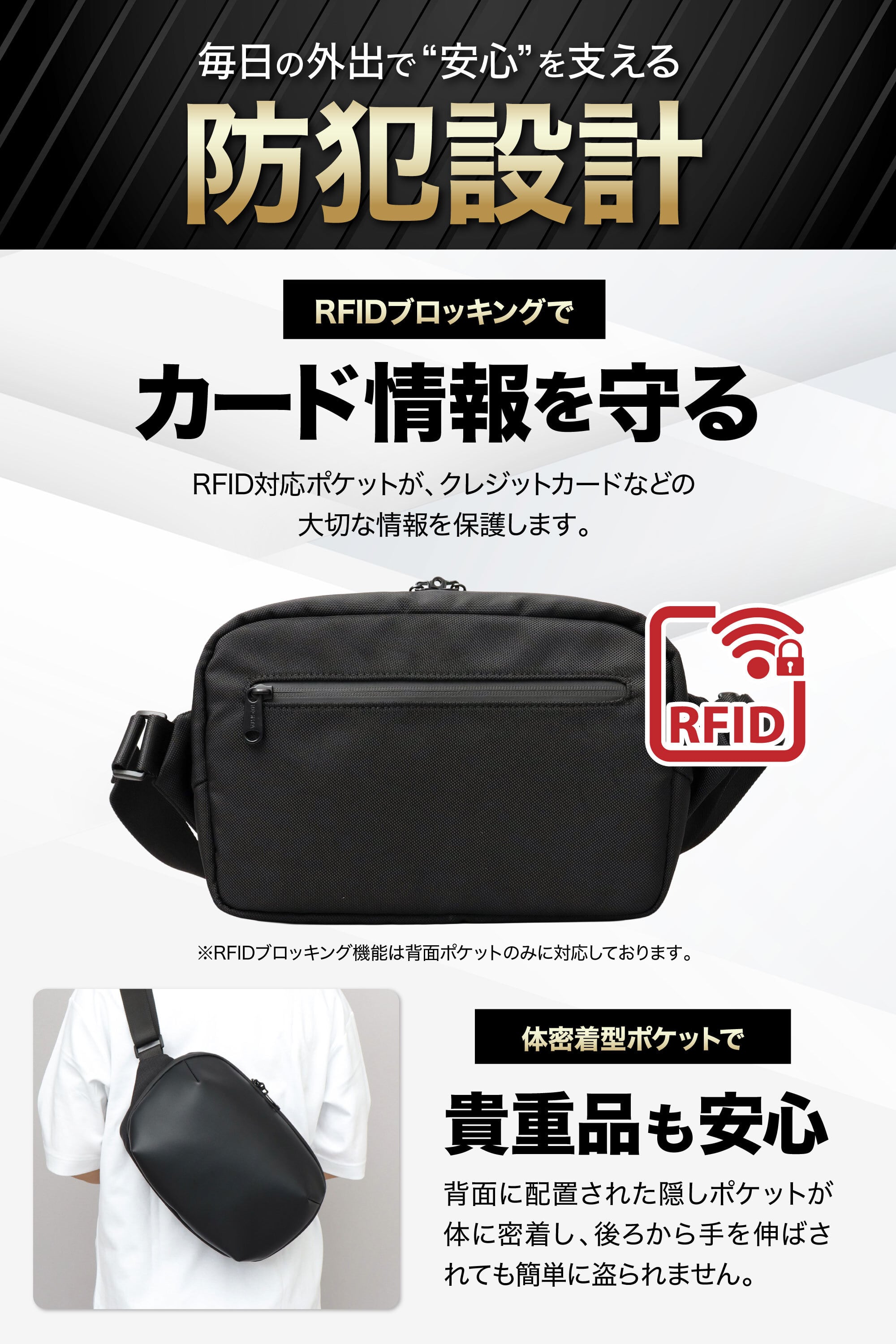 ・背面隠しポケット(RFID対応)