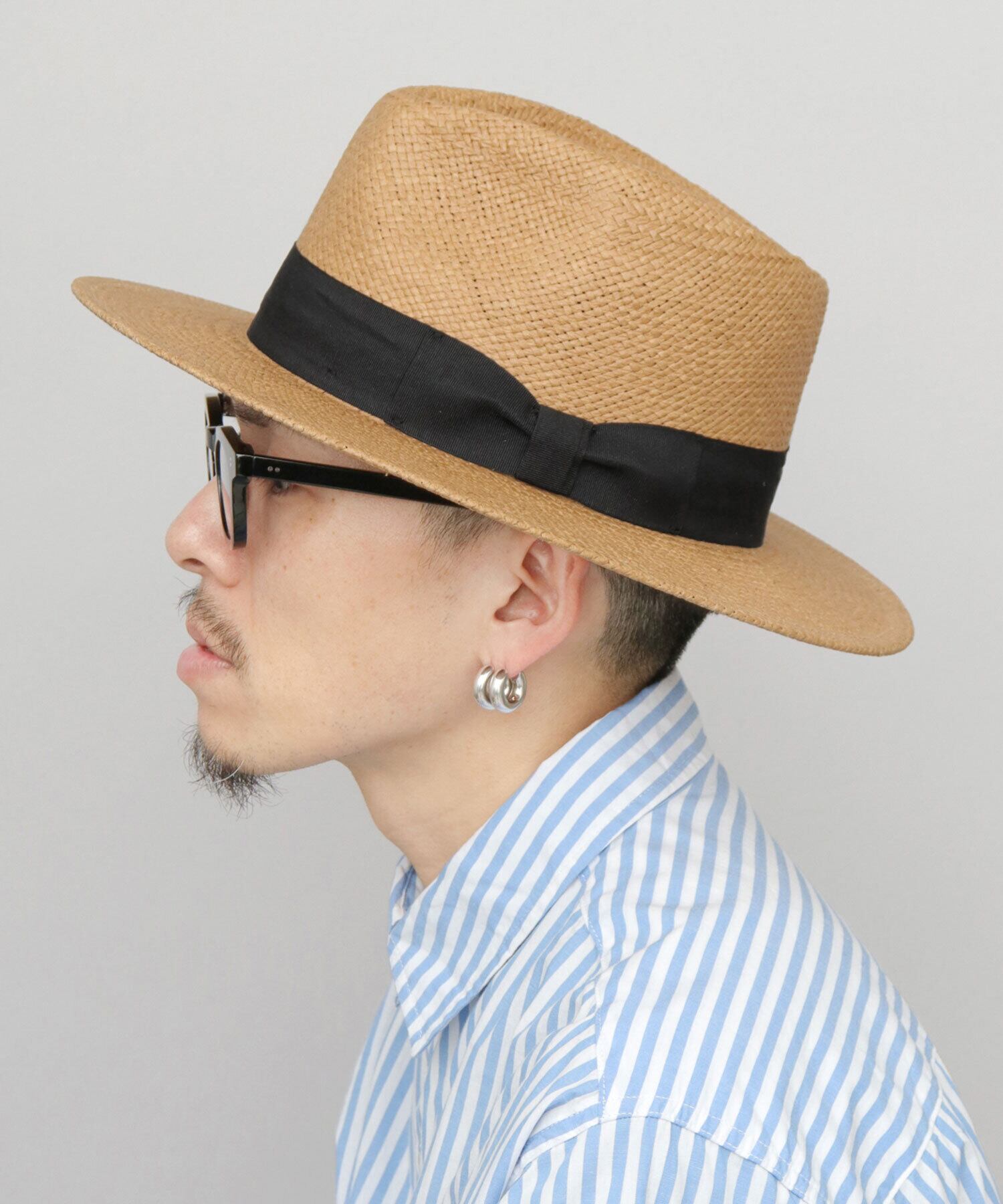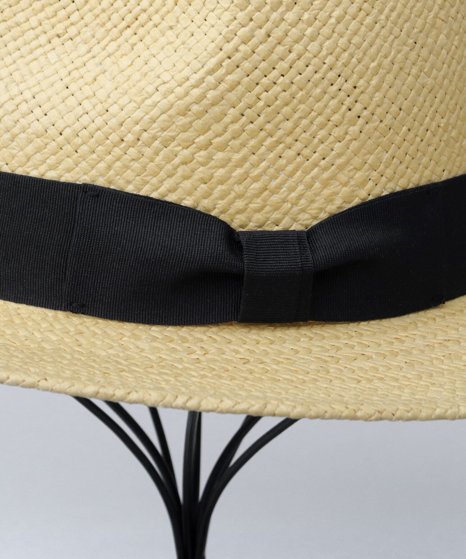 クラウンに巻いたグログランリボンはやや幅のあるシンプルなデザインを採用。リボンなしタイプに比べて上品な印象を与えつつ、ハット本来の美しいシルエットを引き立てるミニマルな仕上がりです。