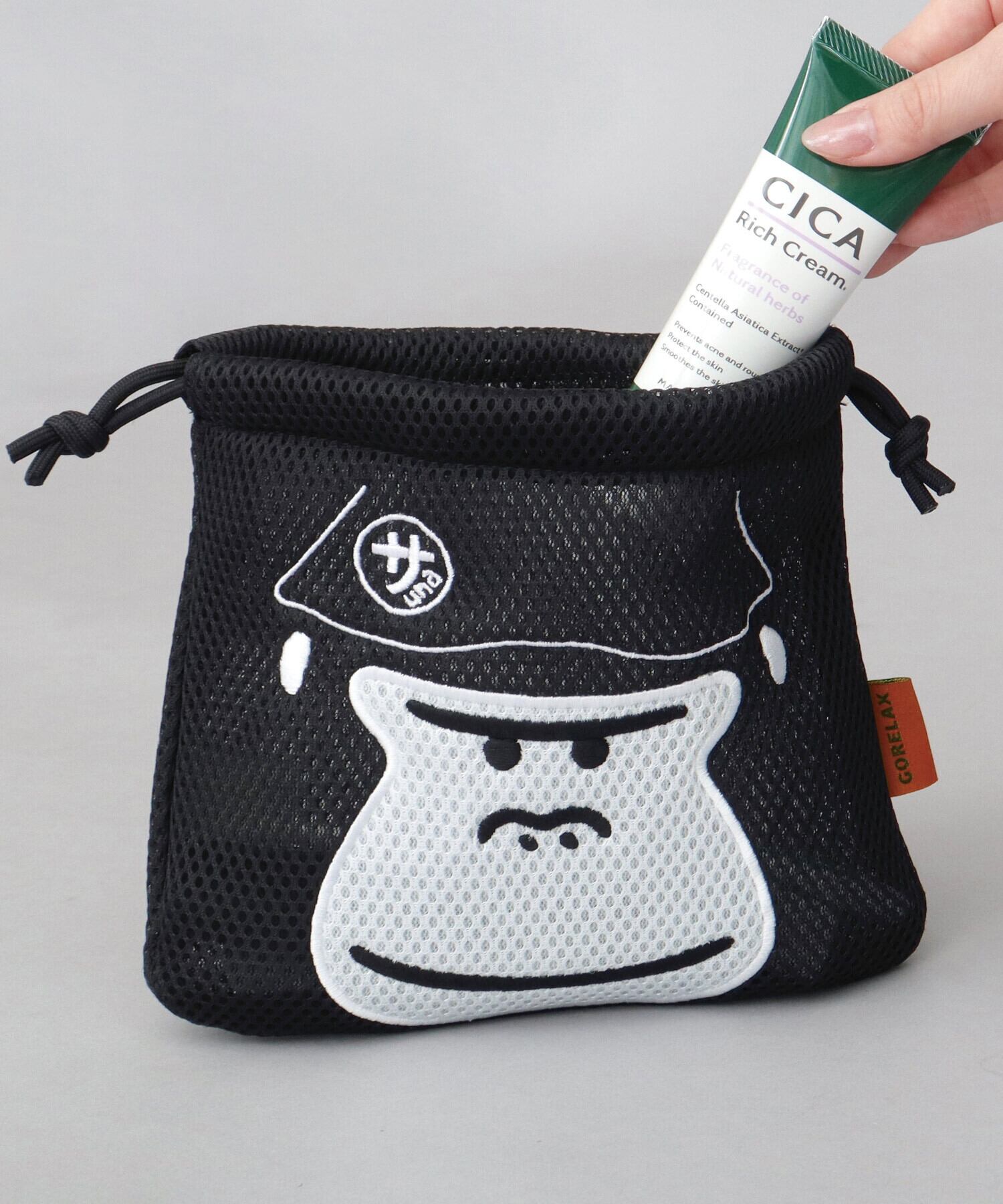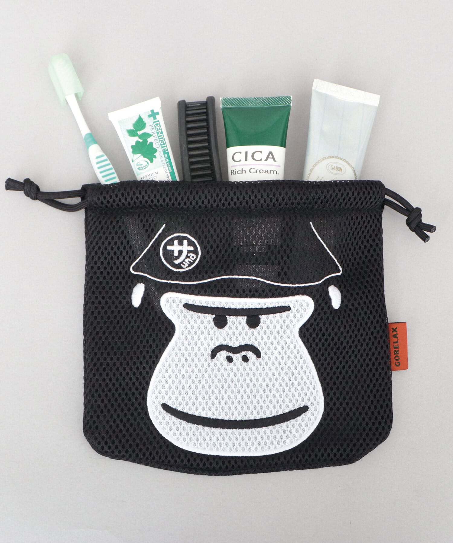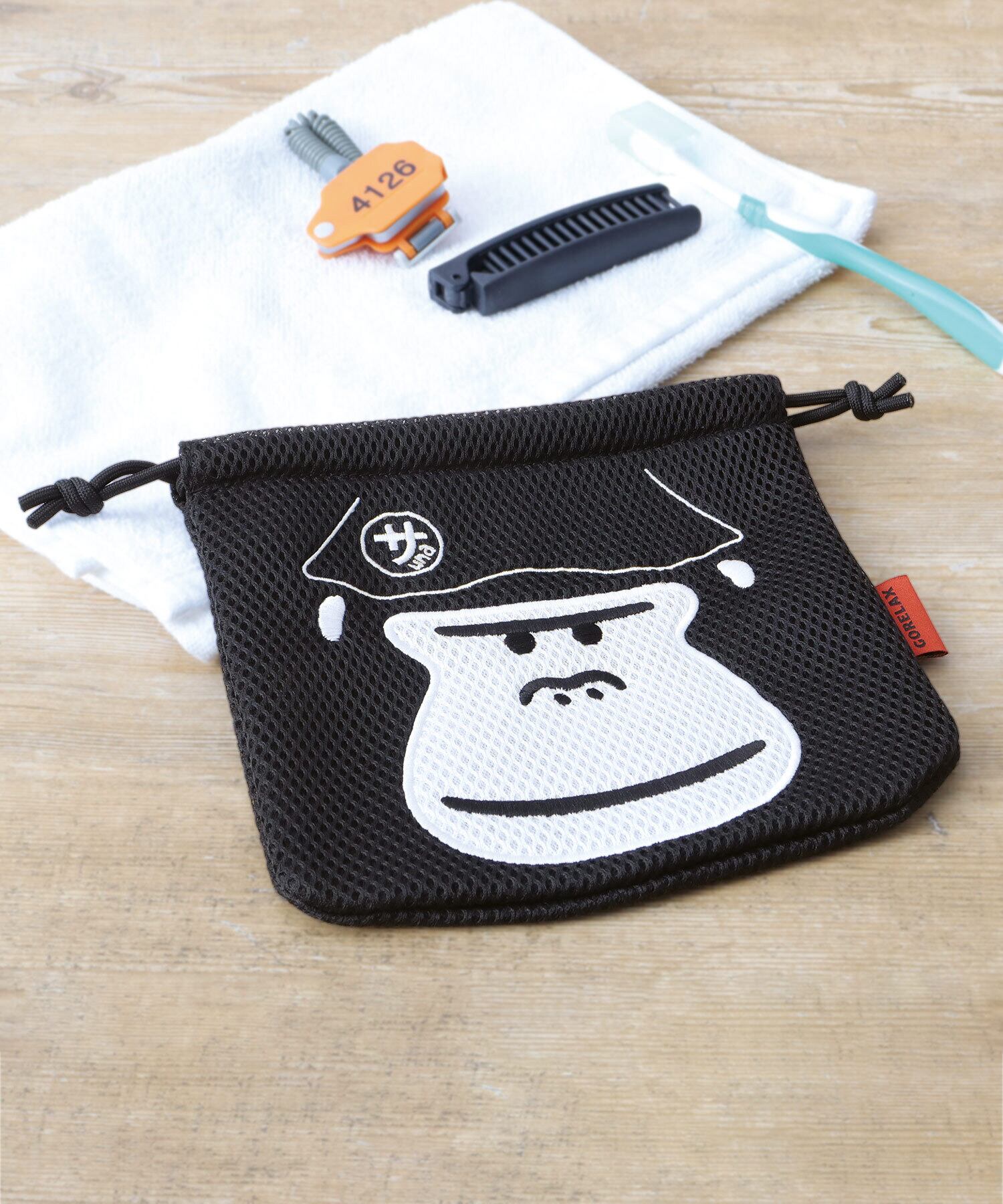 LFC-222 GORELAX ごリラックス 巾着ポーチ メッシュポーチ 洗える 巾着 サウナポーチ 温泉ポーチ 小物入れ 収納ポーチ サウナ 温泉 旅行 ジム まもるさん