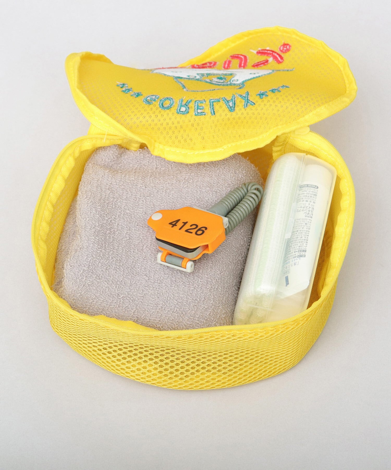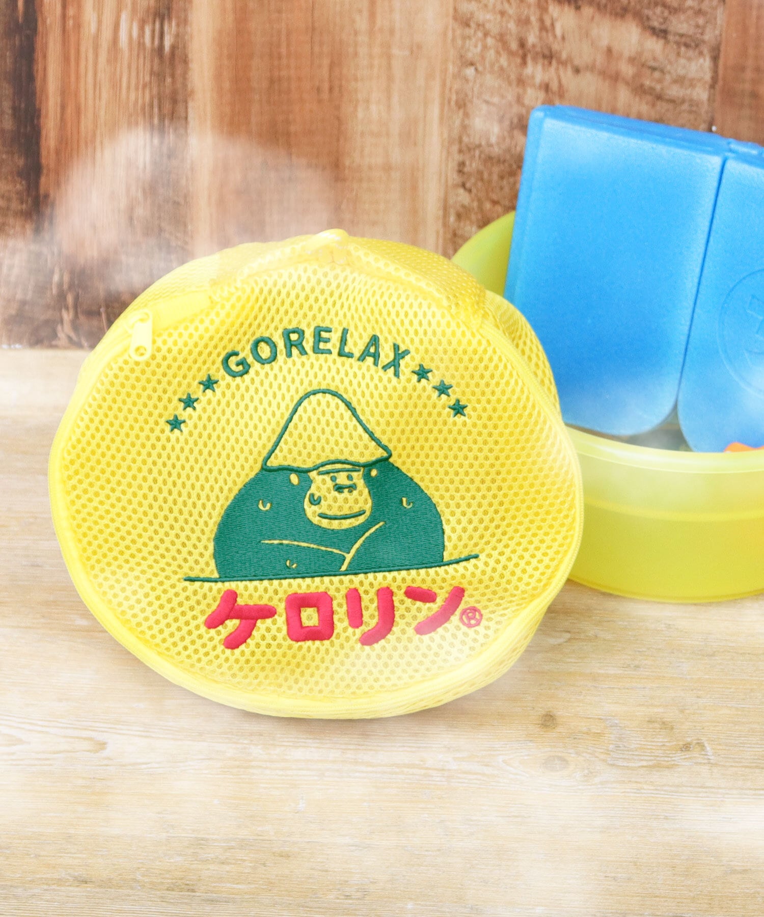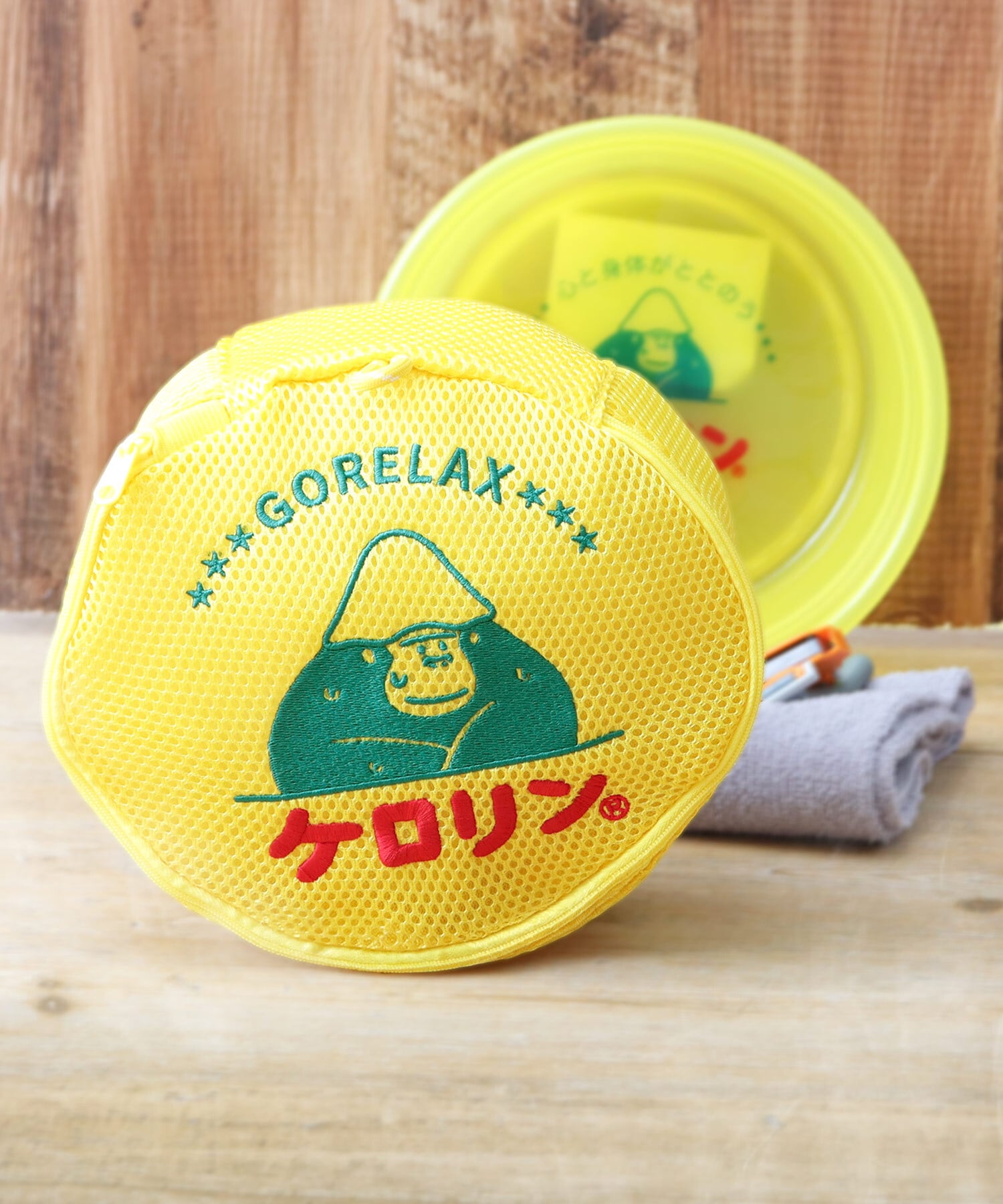 LFC-220 ケロリン × GORELAX ごリラックス 洗えるポーチ サウナポーチ メッシュポーチ 温泉ポーチ 洗濯ネット タオル収納 サ活 湯桶風ポーチ 温泉 旅行 ジム まもるさん