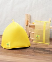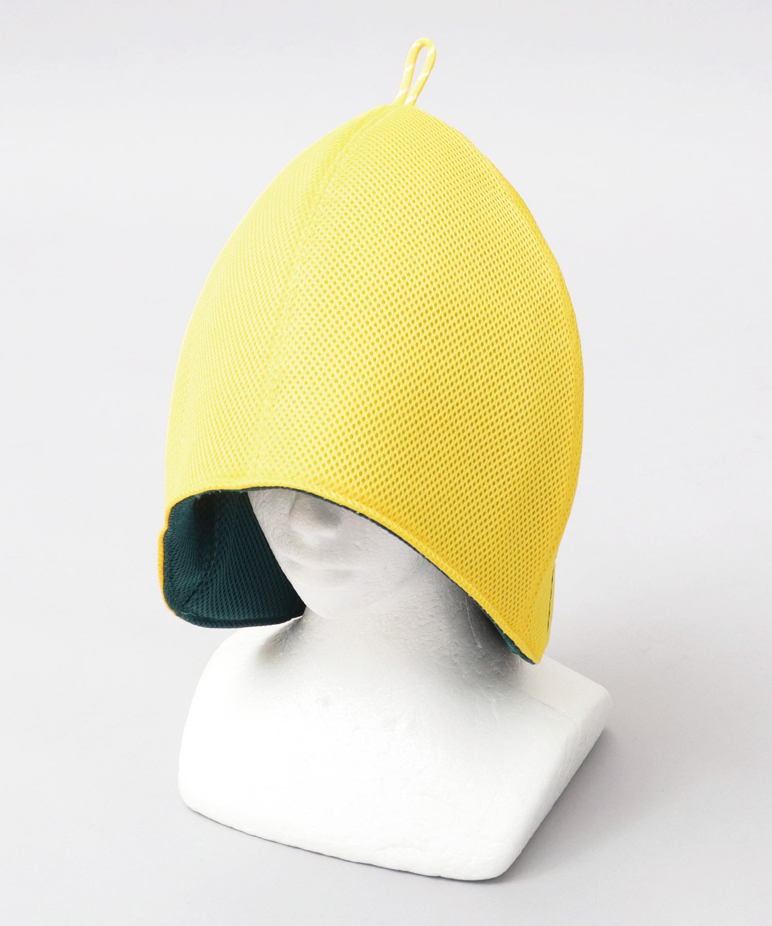 抗菌・防臭加工を施した二重メッシュ構造。熱をやわらかく和らげ、サウナ中の頭部をやさしく守ります。通気性にも優れ、快適な被り心地です。