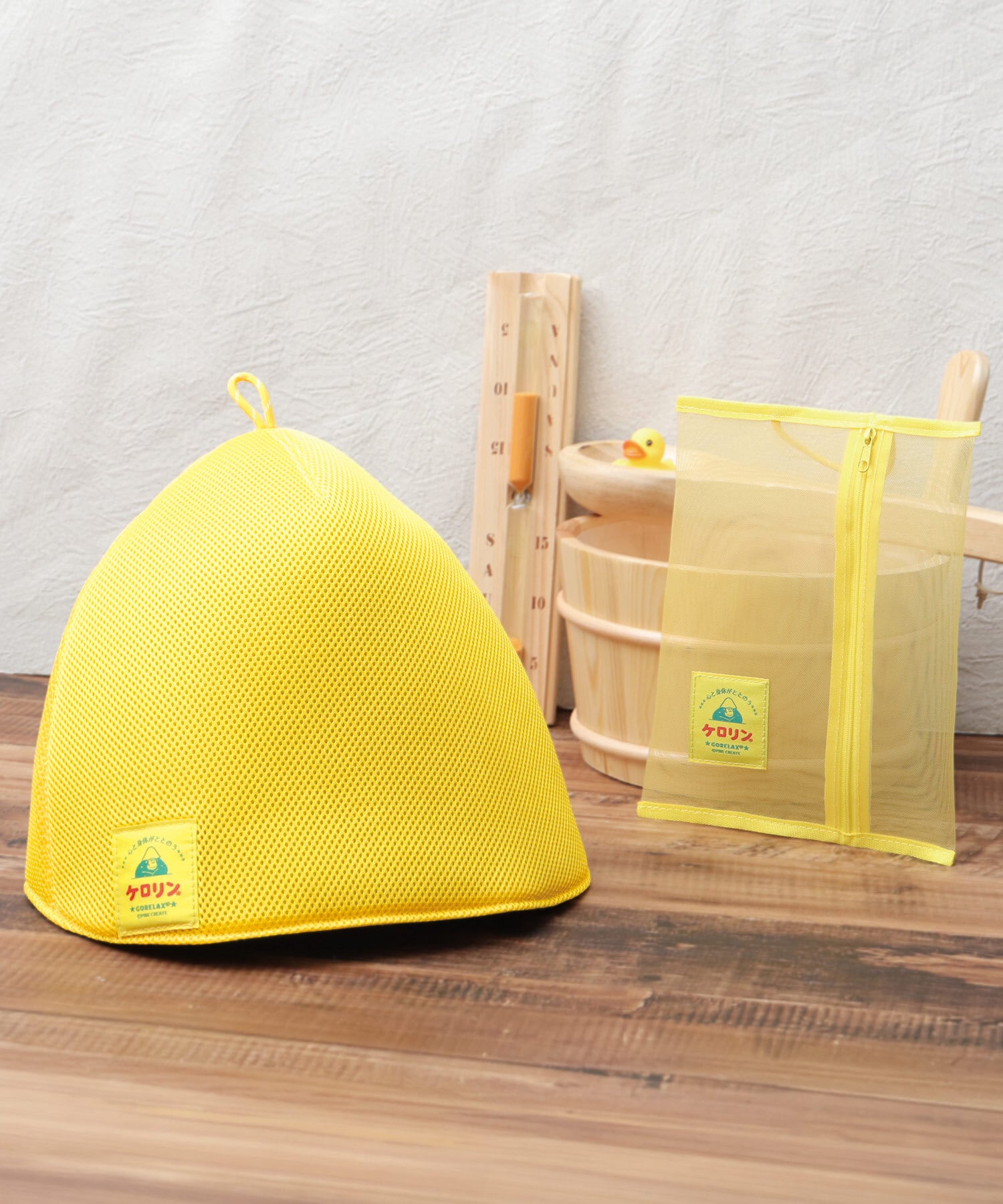 銭湯の定番“ケロリン”とのコラボアイテム、『瞑想サウナハット』。ケロリンのアイコニックなイエローカラーに、ごリラックスらしい遊び心をプラス。