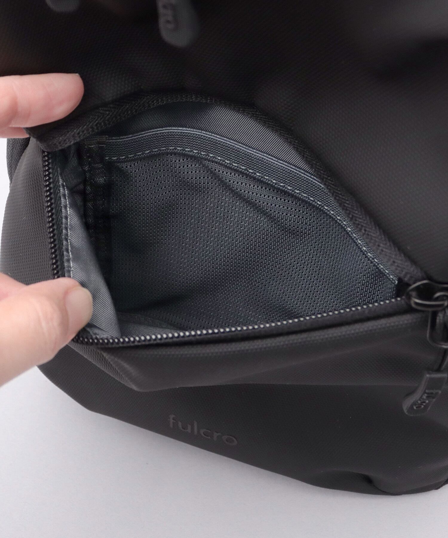 機能性と収納力にこだわった、トラベル・ビジネス向けメンズバッグブランド「fulcro/フルクロ」の耐水素材を使用した撥水ボディバッグ。凹凸のあるマット素材が生む都会的でタフな質感と、無駄を省いたミニマルデザインが洗練された印象を演出します。スリムでスマートなフォルムに、街中での移動を快適にする機能性を凝縮。必要な荷物をすっきり収められるコンパクトなサイズ感ながら、ポケットを適所に配置し、整理整頓のしやすさにも配慮しました。耐水素材と撥水加工ファスナーテープにより、急な天候の変化にも対応。タウンユースはもちろん、旅行やアウトドアなど幅広いシーンで活躍するアイテムです。
