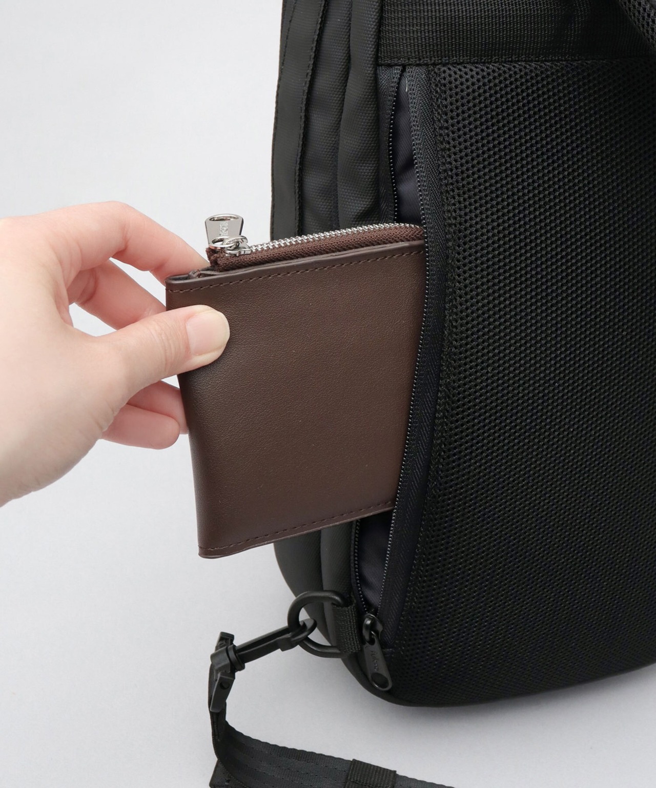背面にはファスナーポケットを配置。セキュリティポケットとしても活躍。