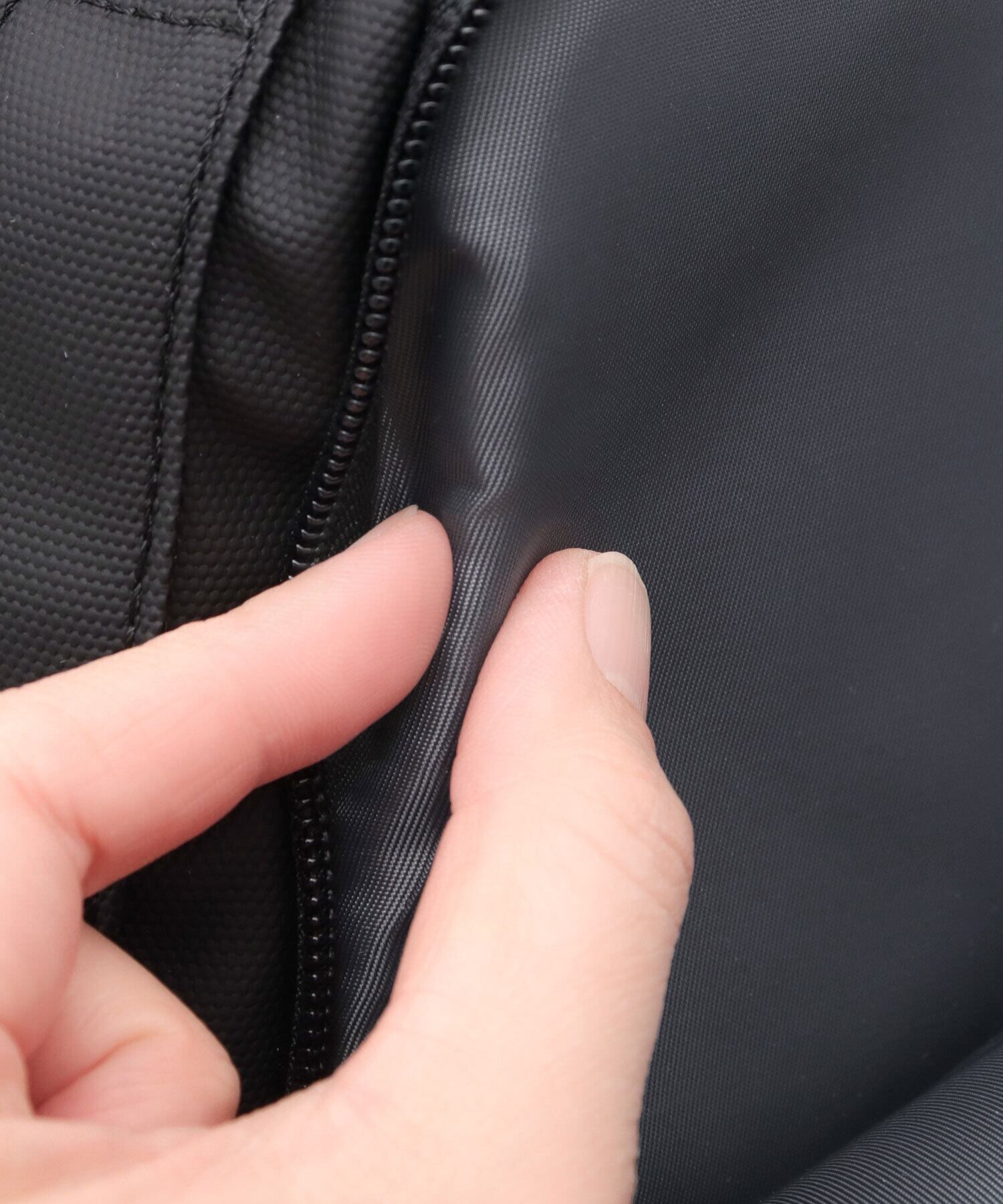 外側の各ファスナーには撥水加工テープを採用。大きめの引手でスムーズな開閉が可能。