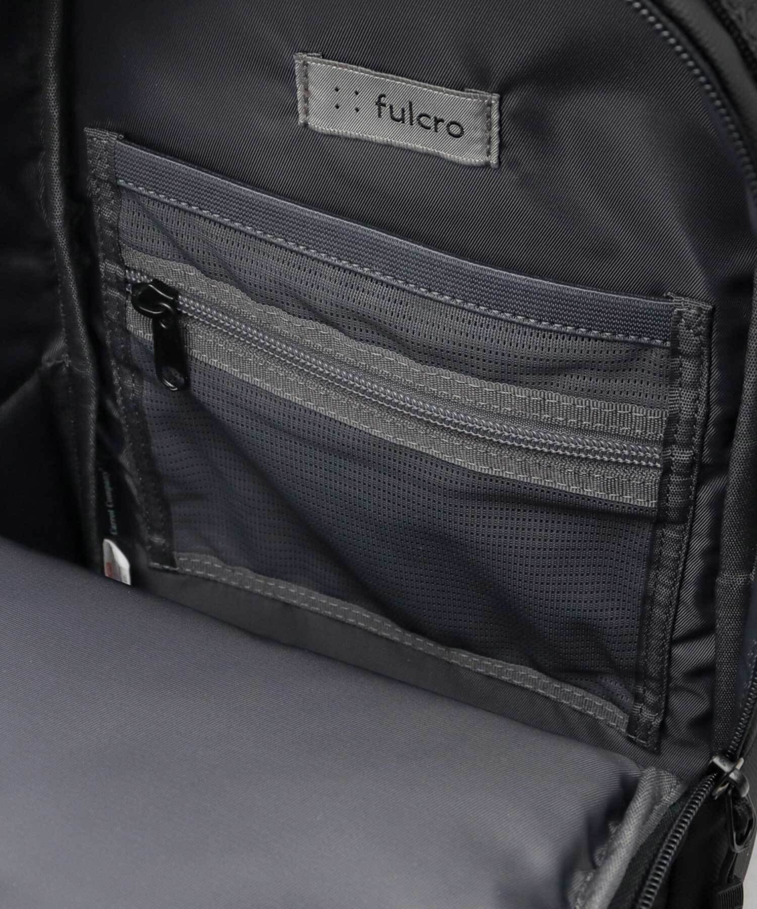 マチ幅をしっかり確保したメイン収納スペース。内側にはメッシュポケットとファスナー付きメッシュポケットを完備。